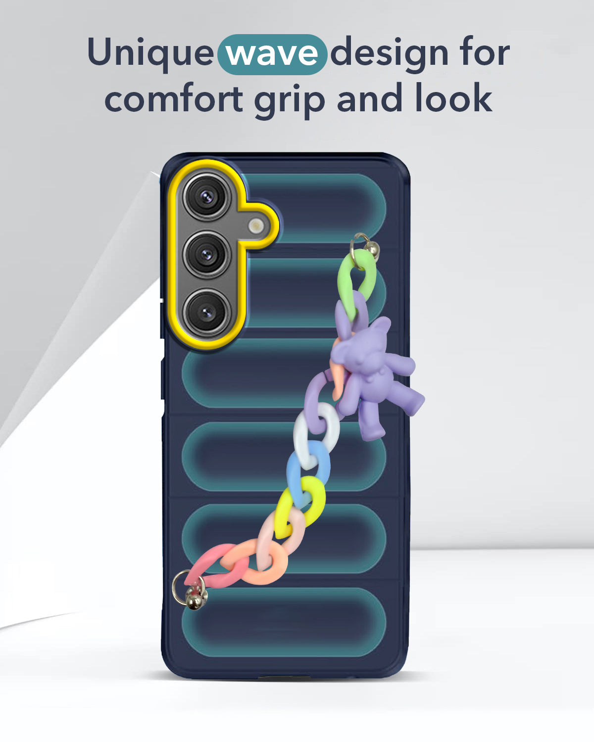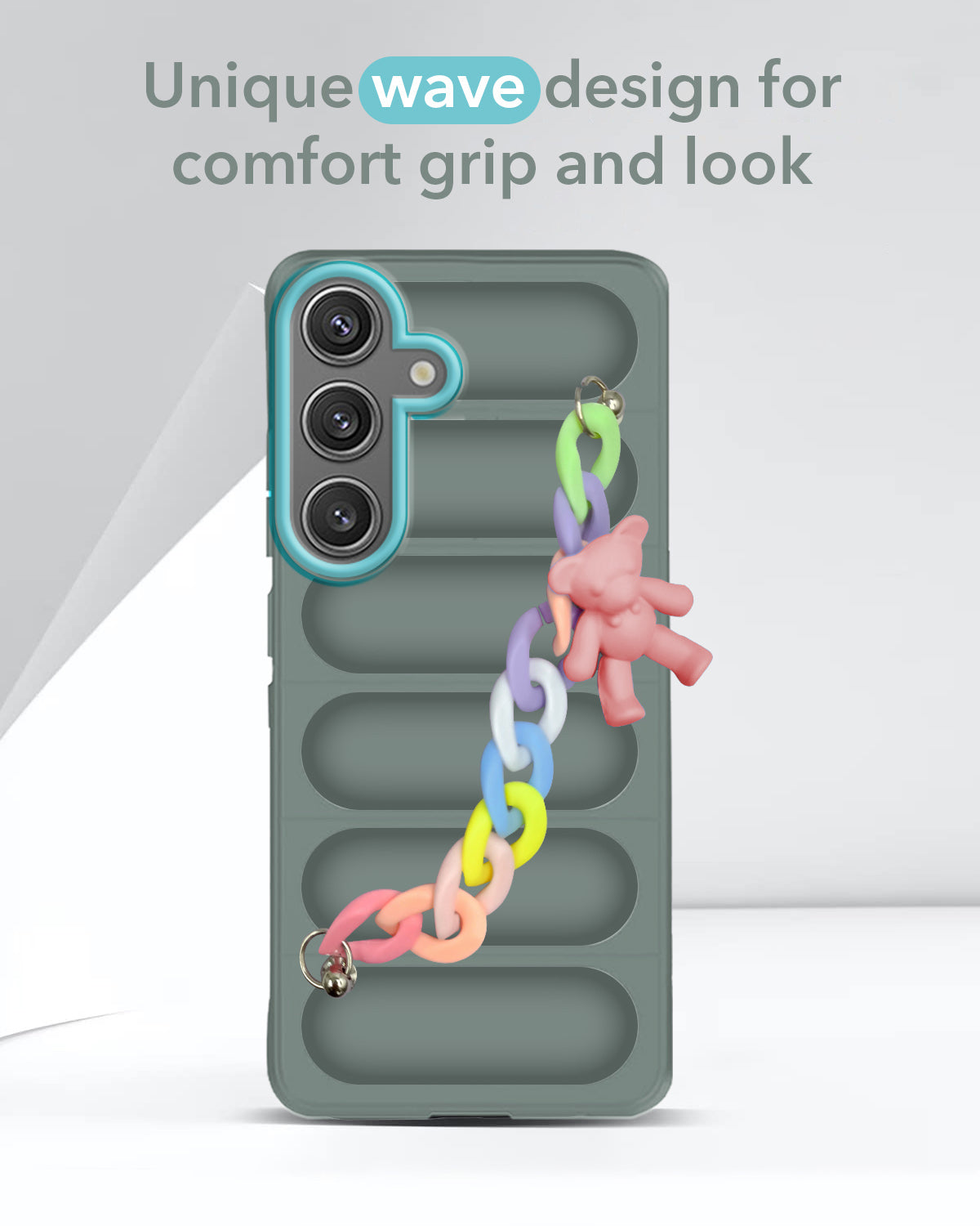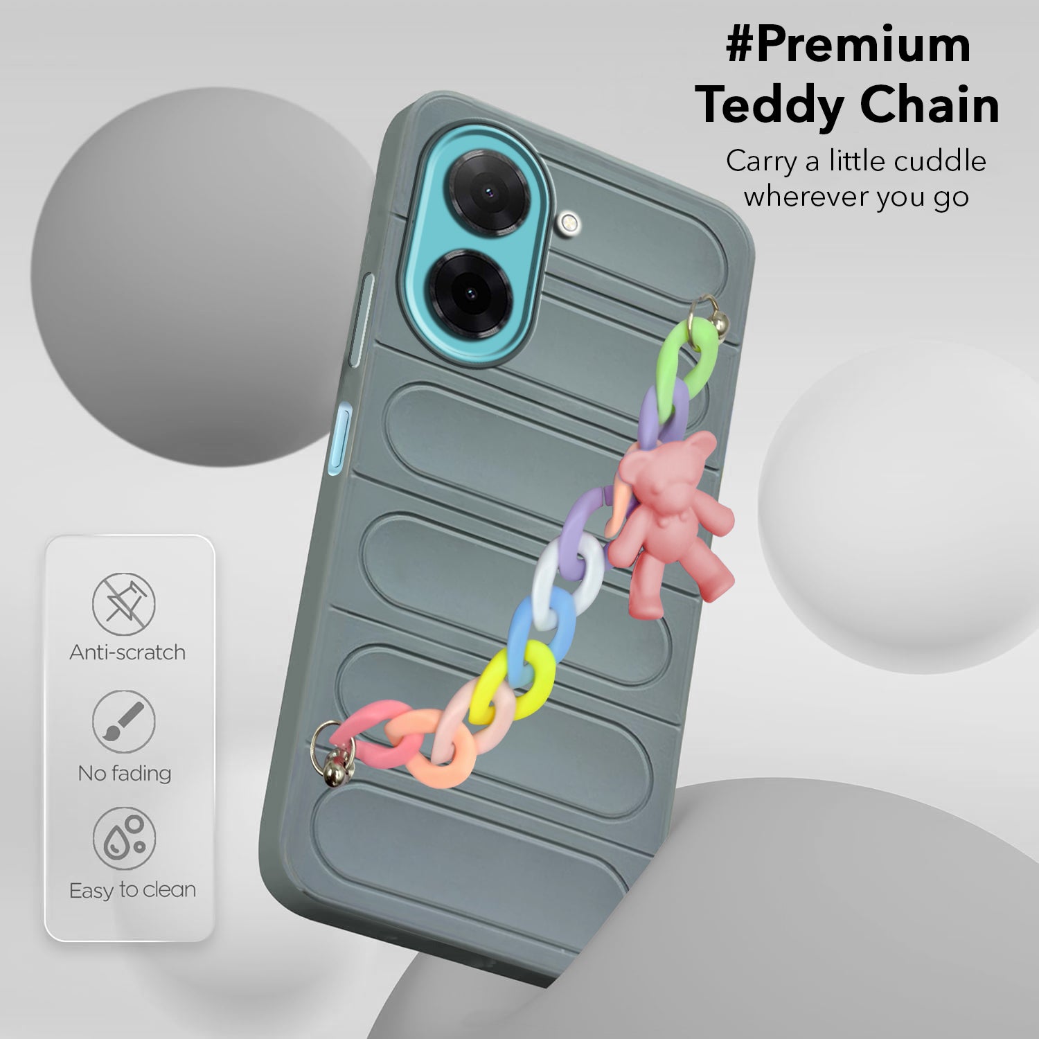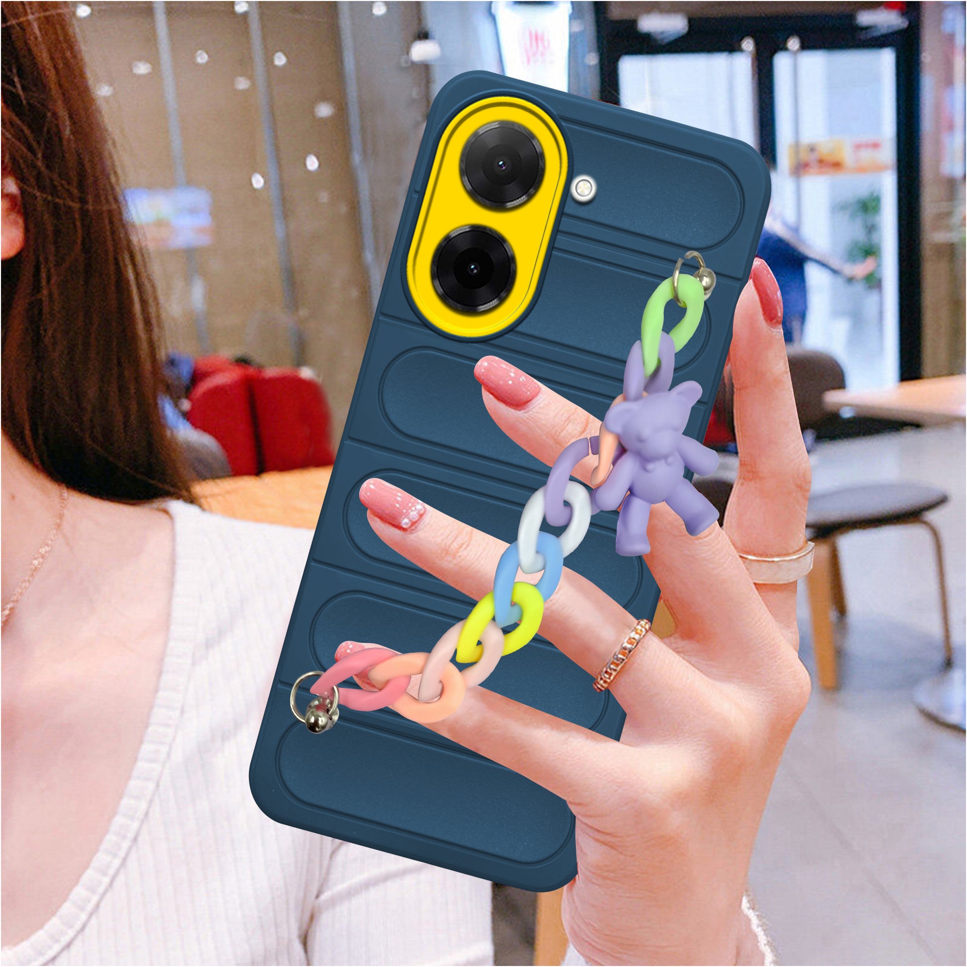 For Redmi A5 4G Back Cover Case (Wrist Hanging Chain | Teddy Bracelet Charms | Matte Liquid Silicone | Camera Protection Ring)