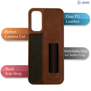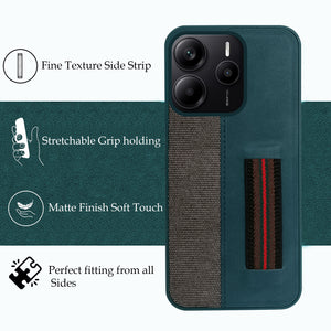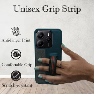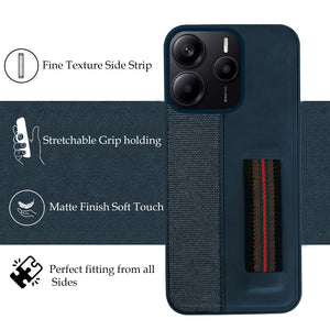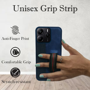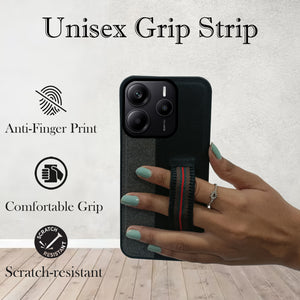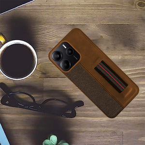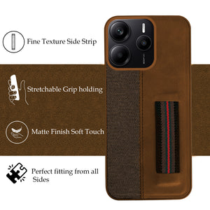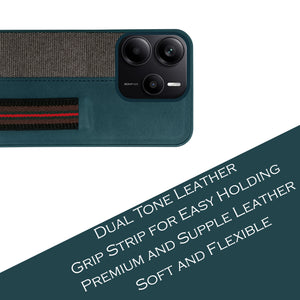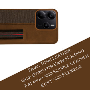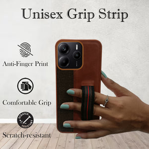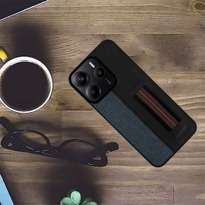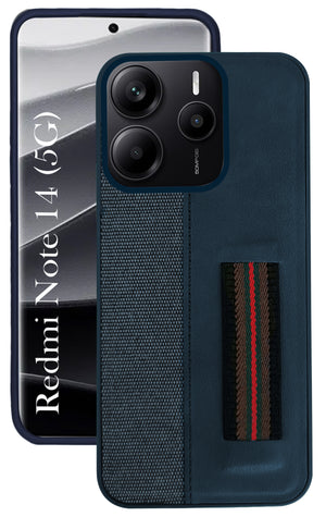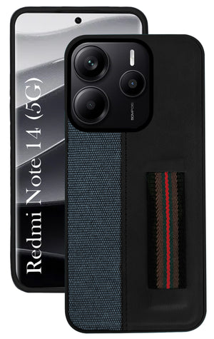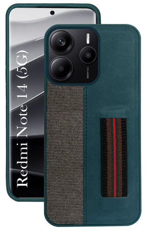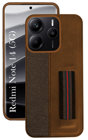 For Redmi Note 14 5G | Redmi Note 14 SE Back Cover Case ( Professional PU Leather | Strip Chain Holder Socket)