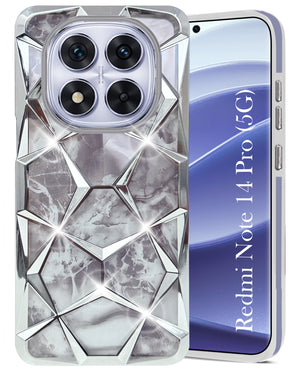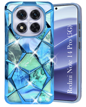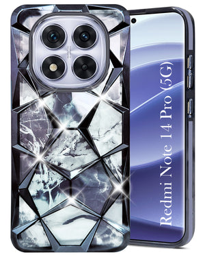 For Redmi Note 14 Pro Back Cover Case (Dual Design Glitter Sparkle and Detachable Diamond Print Case | Soft and Flexible)