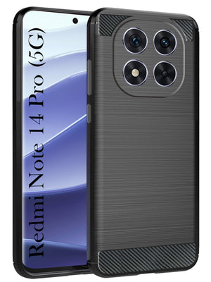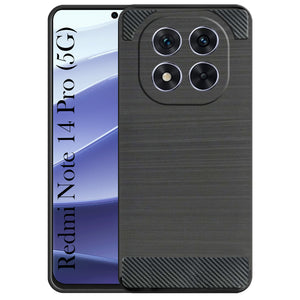 For Redmi Note 14 Pro Back Cover Case ( Hybrid Armor Case | Carbon Fiber Shockproof | Soft and Flexible | Black )