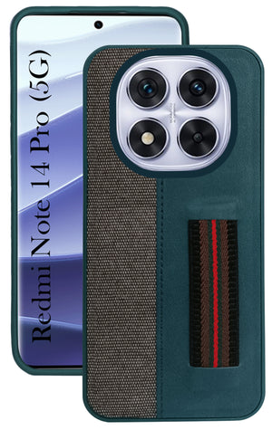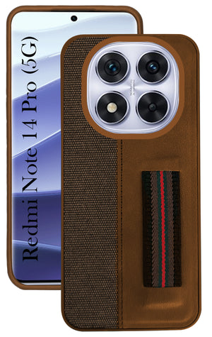 For Redmi Note 14 Pro Back Cover Case ( Professional PU Leather | Strip Chain Holder Socket)