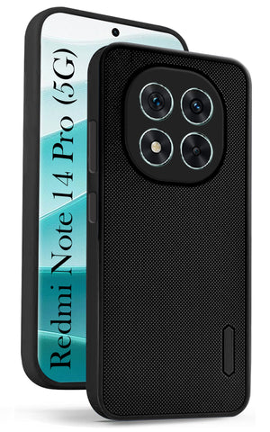 For Redmi Note 14 Pro Back Cover Case (Textured Grip Design | Micro-Fiber Cloth Inside | Slim and Light Weight | Soft Touch and Feel | Black)