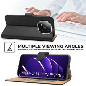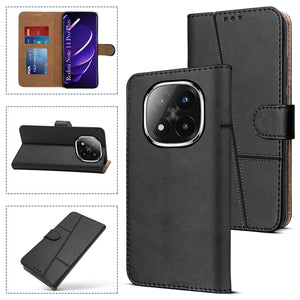 For Redmi Note 14 Pro Plus Flip Cover Case ( Stitched Leather with Magnetic Closure)