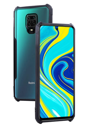 For Redmi Note 9 Pro | 9 Pro Max | Note 10 Lite Back Cover Case (Crystal Glass Back | Camera Protection | Shockproof Bumpers | Professional Black)