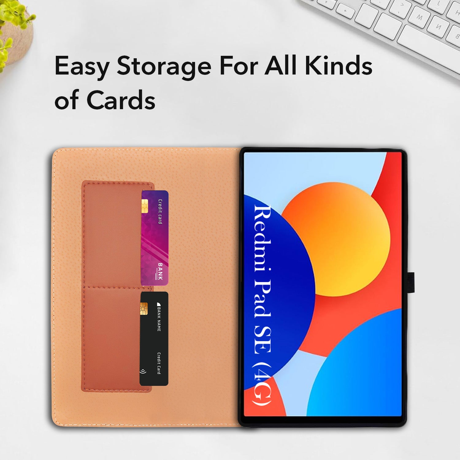 For Redmi Pad SE 4G 8.7 Inch 220233L2G Flip Cover Folio Cover (PU Matte Leather | Multi-Angle Smart Stand | Card Storage Slots | Silicone Back Pouch)
