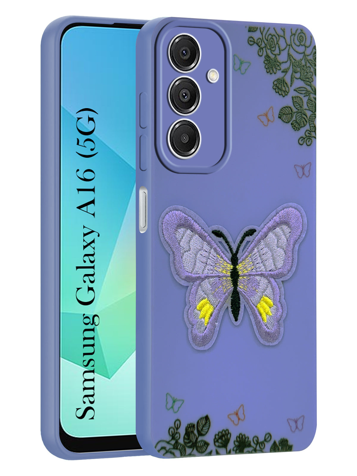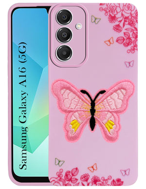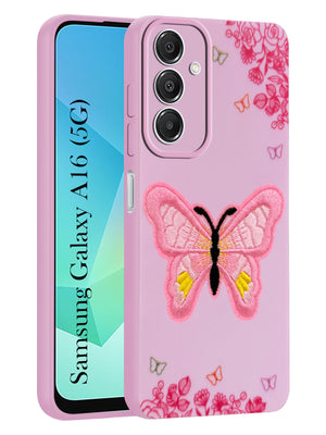 For Samsung Galaxy A16 5G Back Cover Case (Soft Butterfly Embroidery | Women Teen Girls | Camera Protection| Matte Silicone)