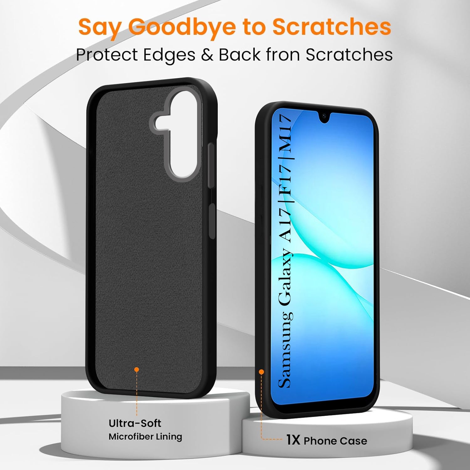 For Samsung Galaxy A17 5G | Samsung Galaxy F17 | Samsung Galaxy M17 Back Cover Case (Textured Grip Design | Micro-Fiber Cloth Inside | Slim and Light Weight | Soft Touch and Feel | Black)