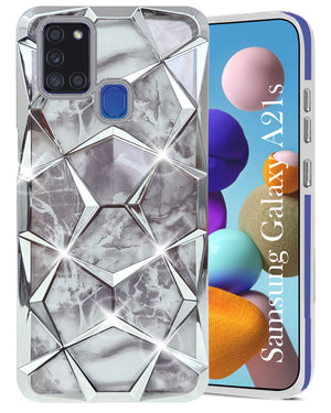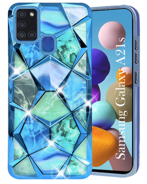 For Samsung Galaxy A21s Back Cover Case (Dual Design Glitter Sparkle and Detachable Diamond Print Case | Soft and Flexible)