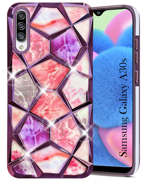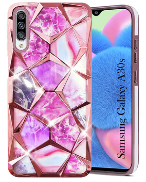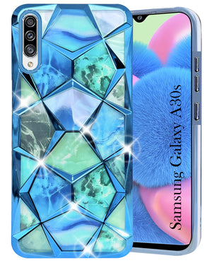 For Samsung Galaxy A30s Back Cover Case (Dual Design Glitter Sparkle and Detachable Diamond Print Case | Soft and Flexible)