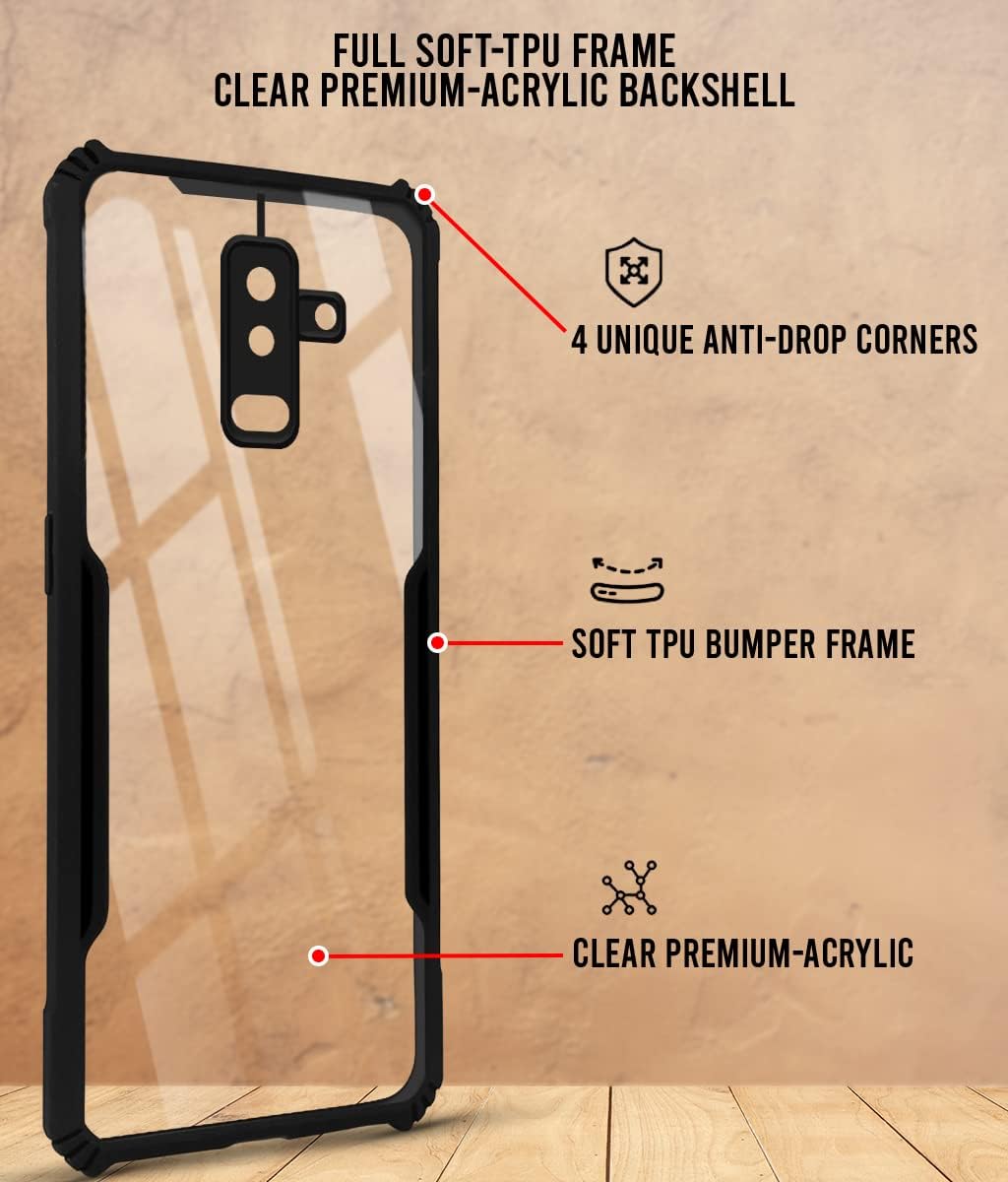 For Samsung Galaxy A6 Plus Back Case Cover (Polycarbonate with Shockproof Clear Panel | Crystal Glass Back | Camera Protection)