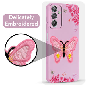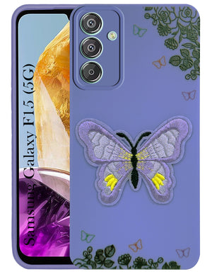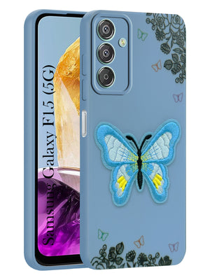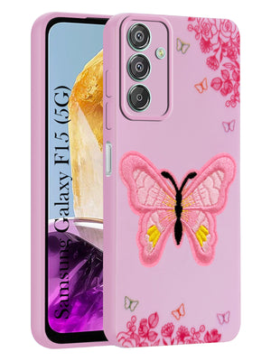 For Samsung Galaxy F15 5G Back Cover Case (Soft Butterfly Embroidery | Women Teen Girls | Camera Protection| Matte Silicone)