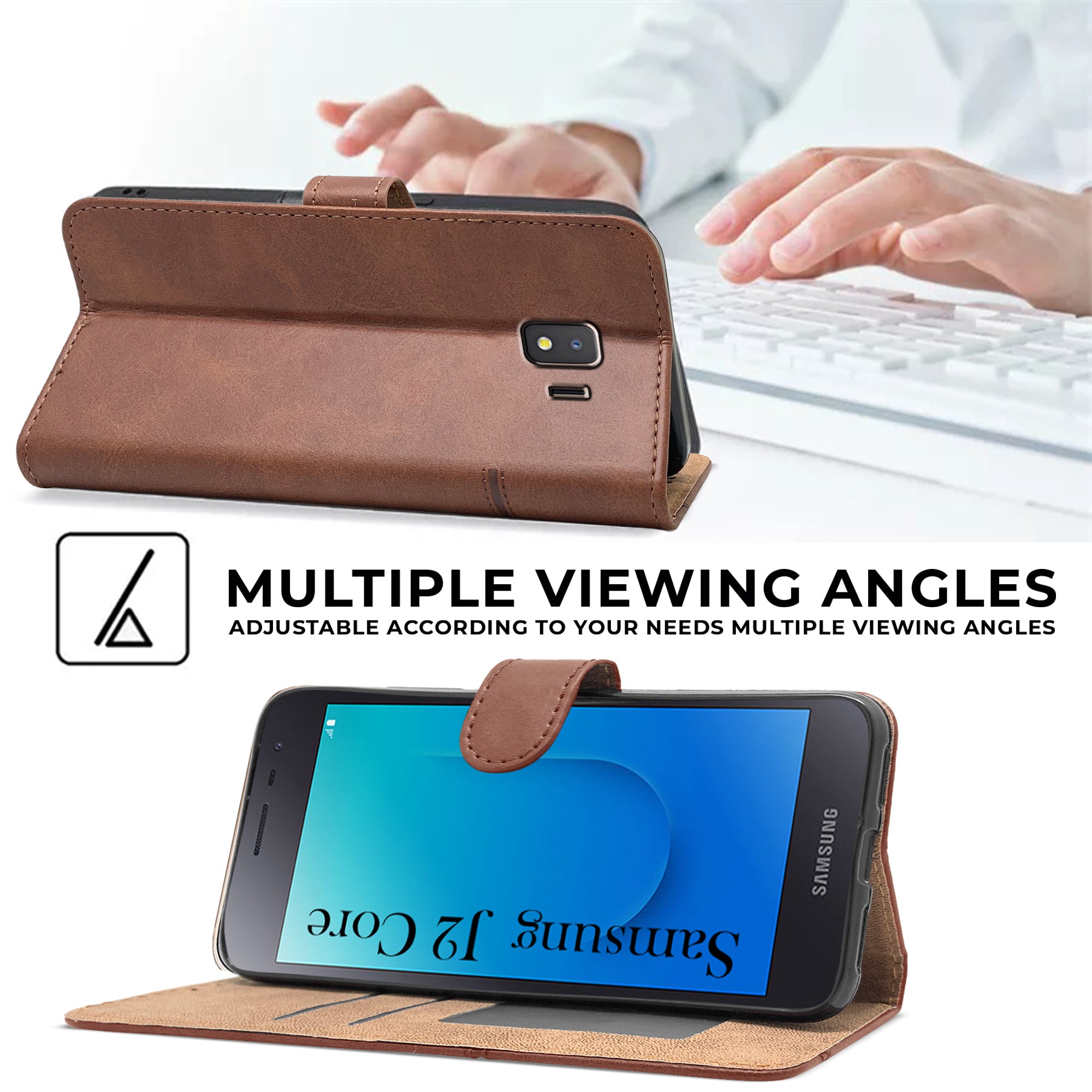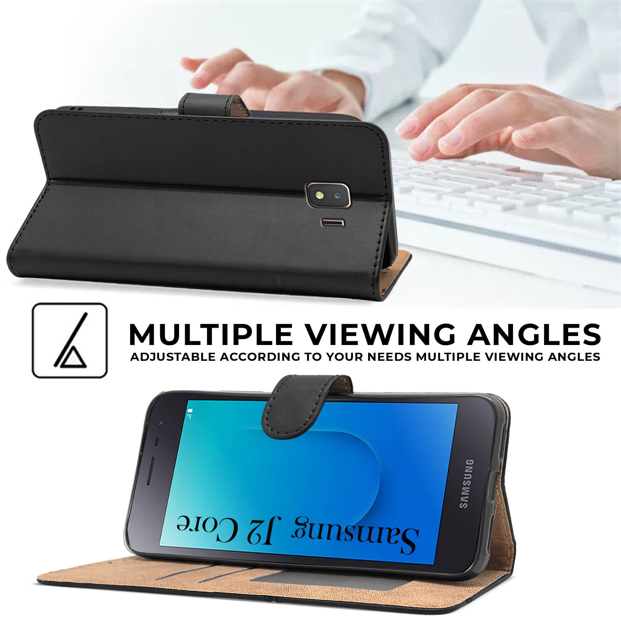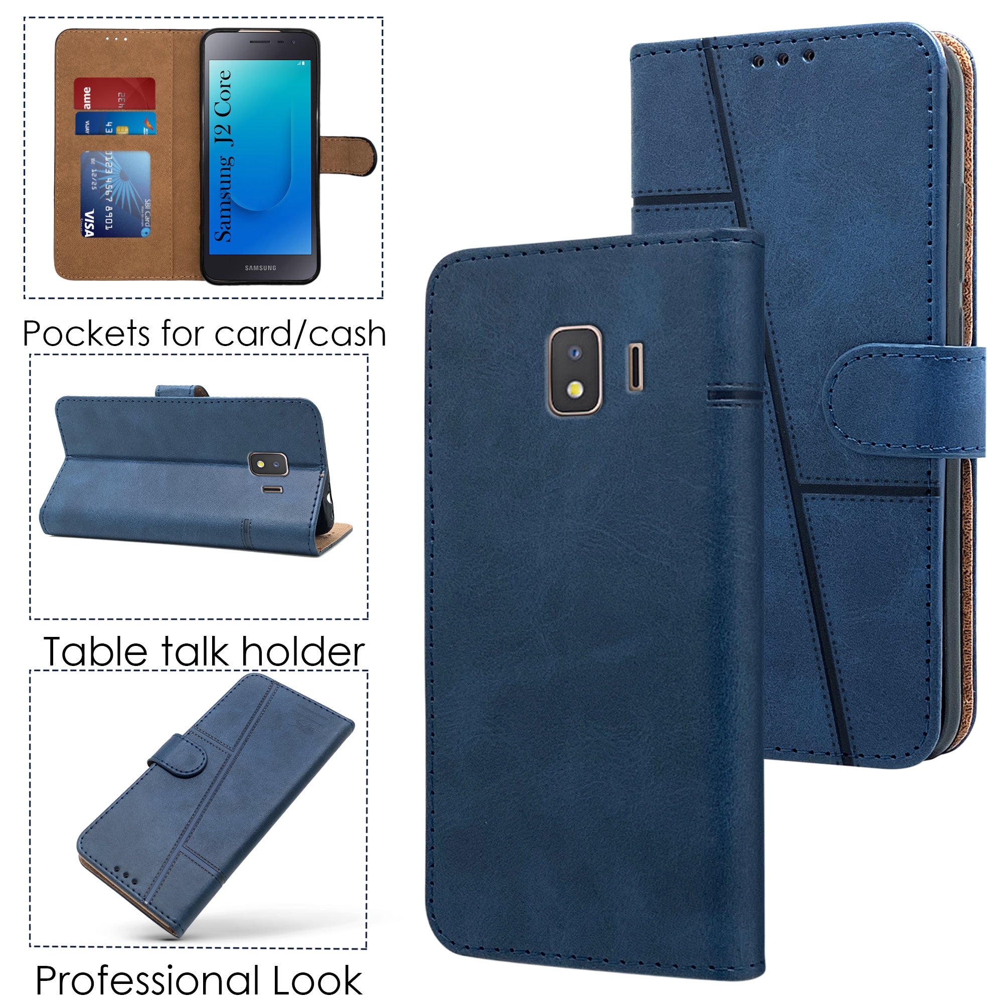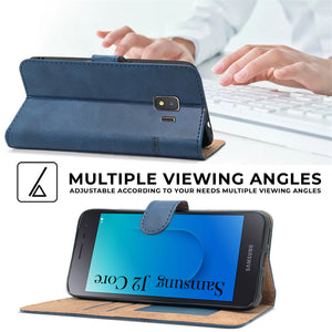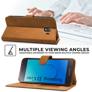 For Samsung Galaxy J2 Core Flip Cover Case (Stitched Leather with Magnetic Closure)