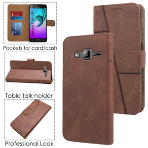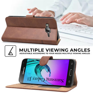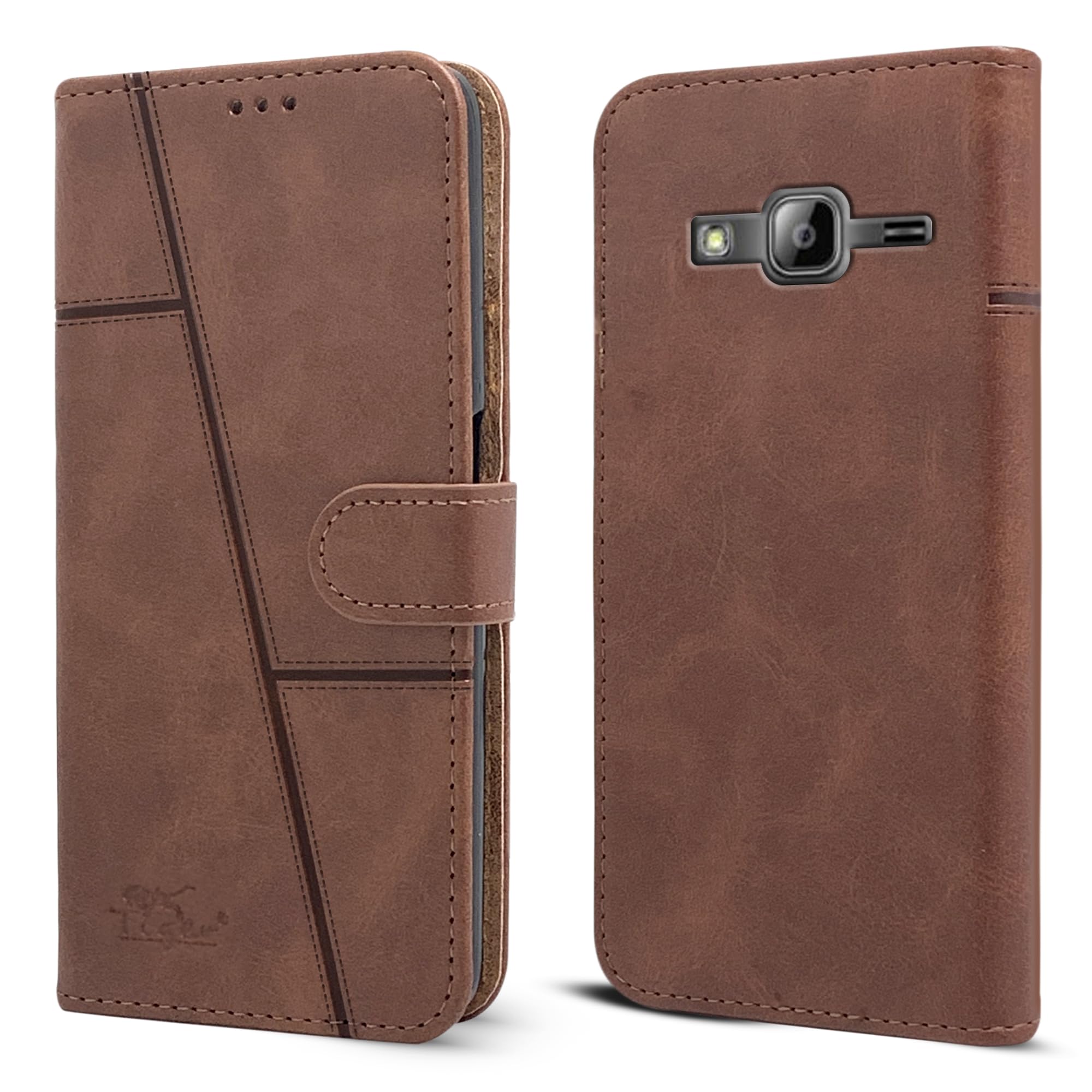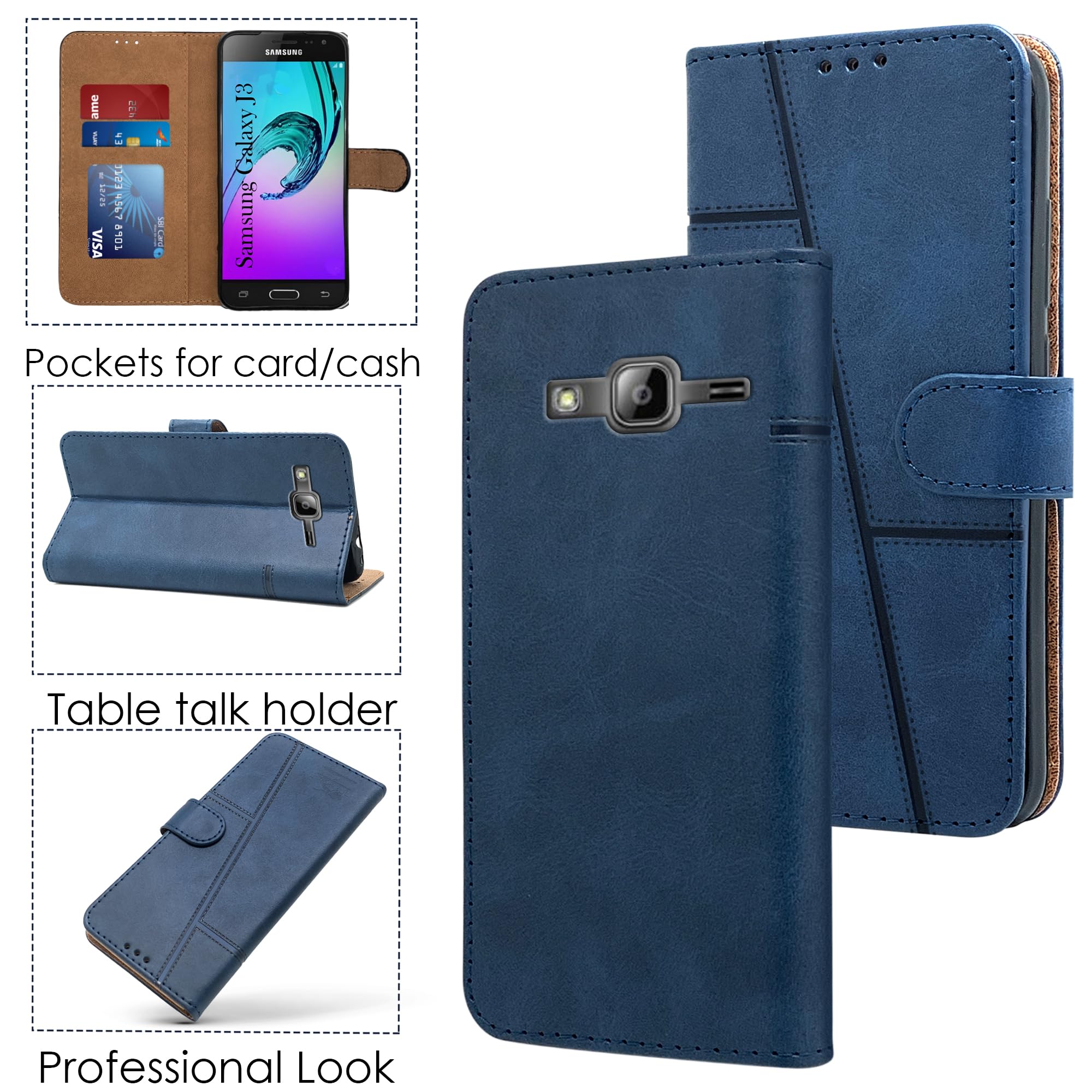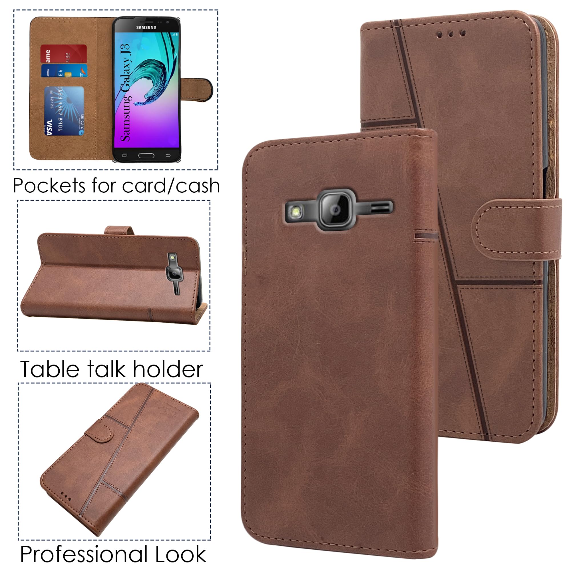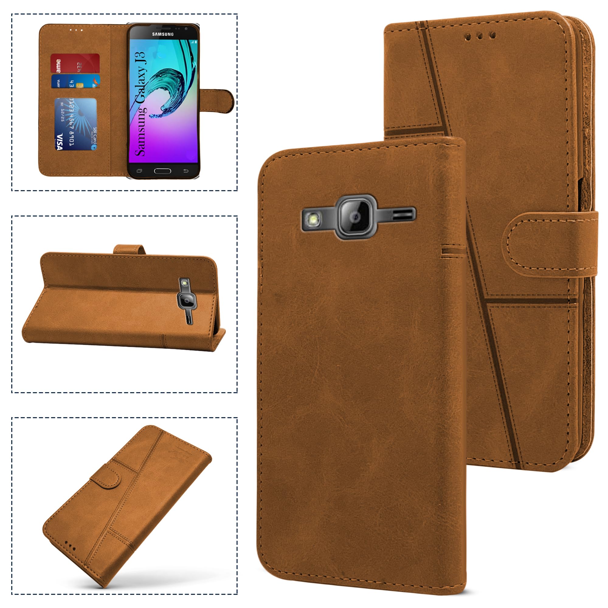 For Samsung Galaxy J3 Flip Cover Case ( Stitched Leather with Magnetic Closure)