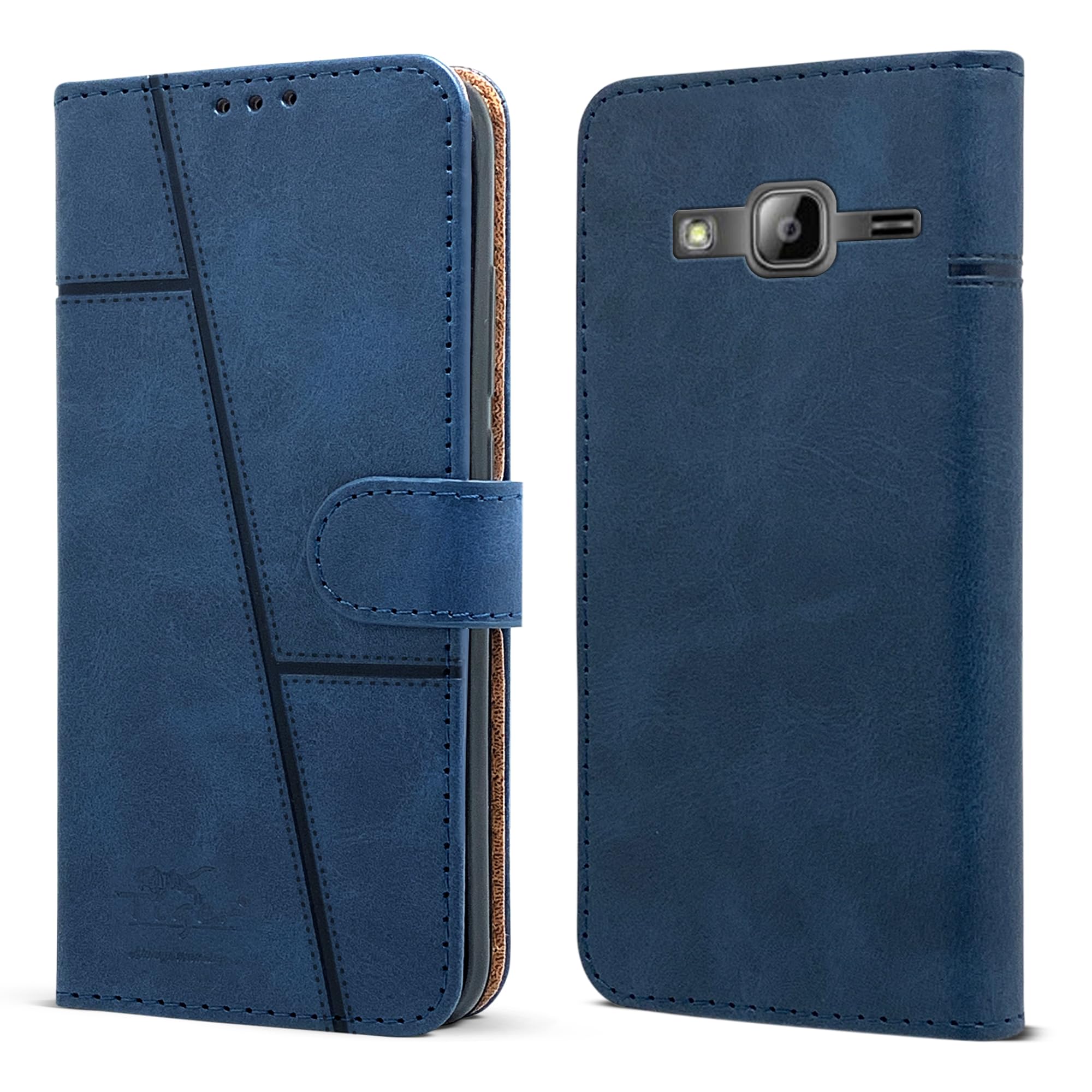 For Samsung Galaxy J5 Flip Cover Case ( Stitched Leather with Magnetic Closure)