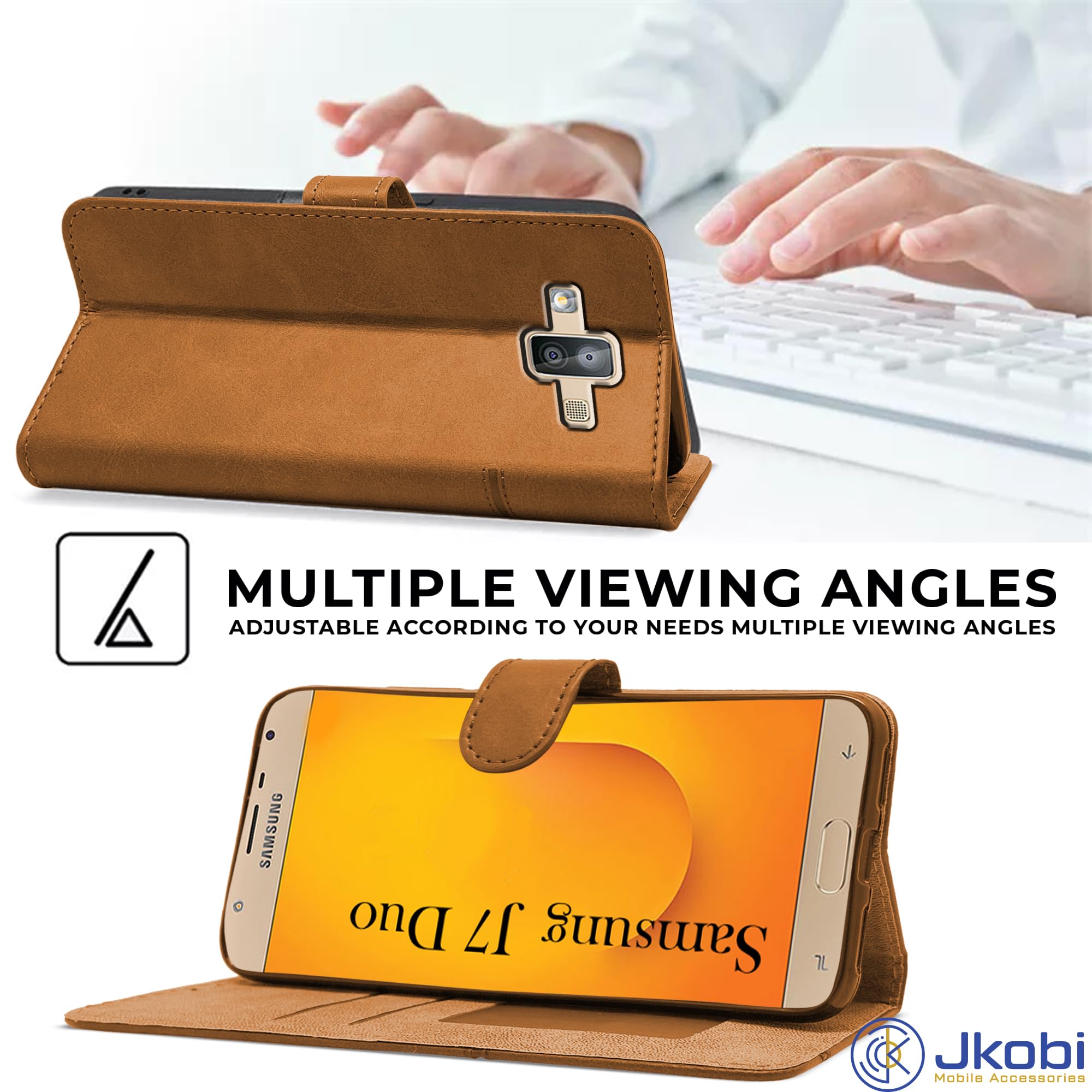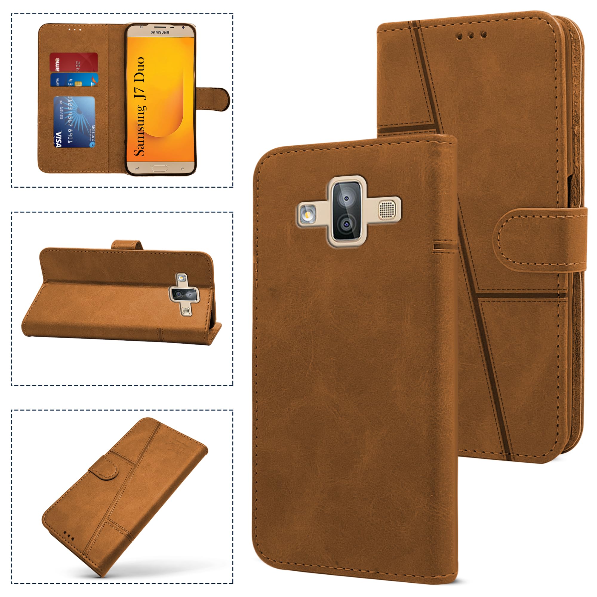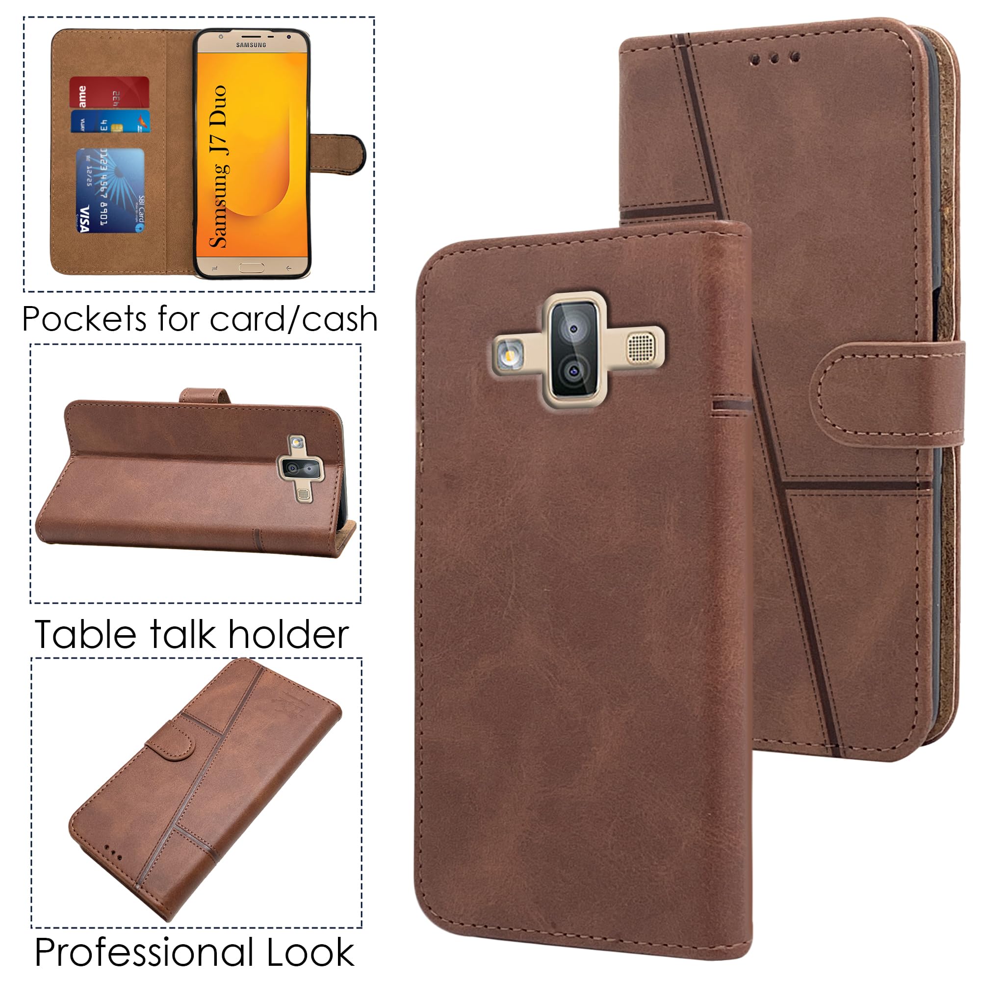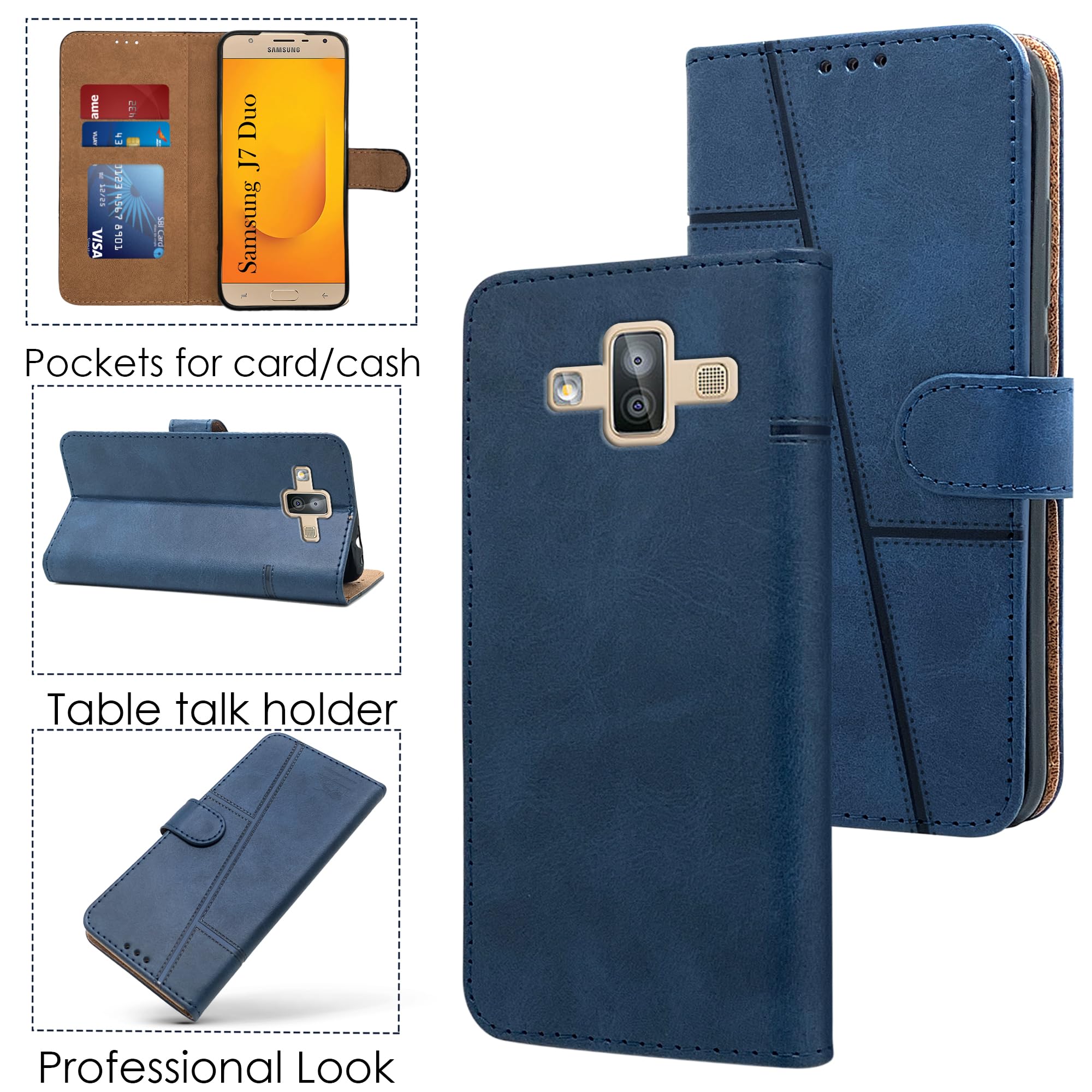 For Samsung Galaxy J7 Duo Flip Cover Case ( Stitched Leather with Magnetic Closure)