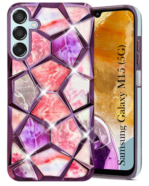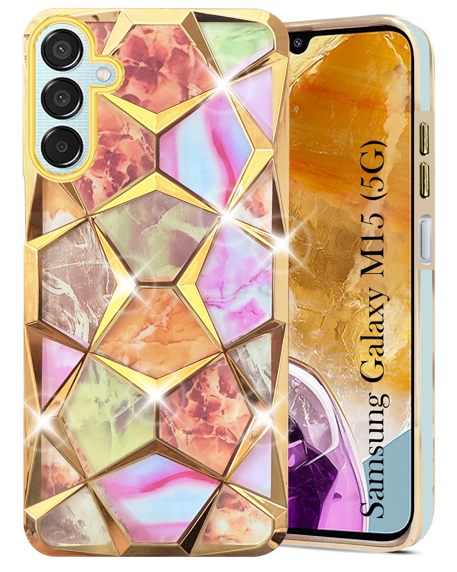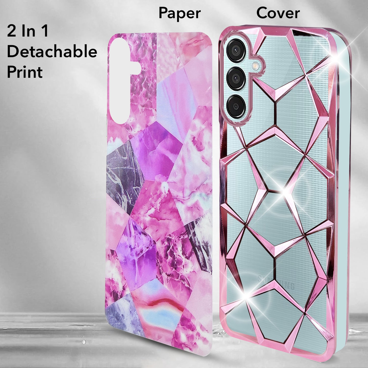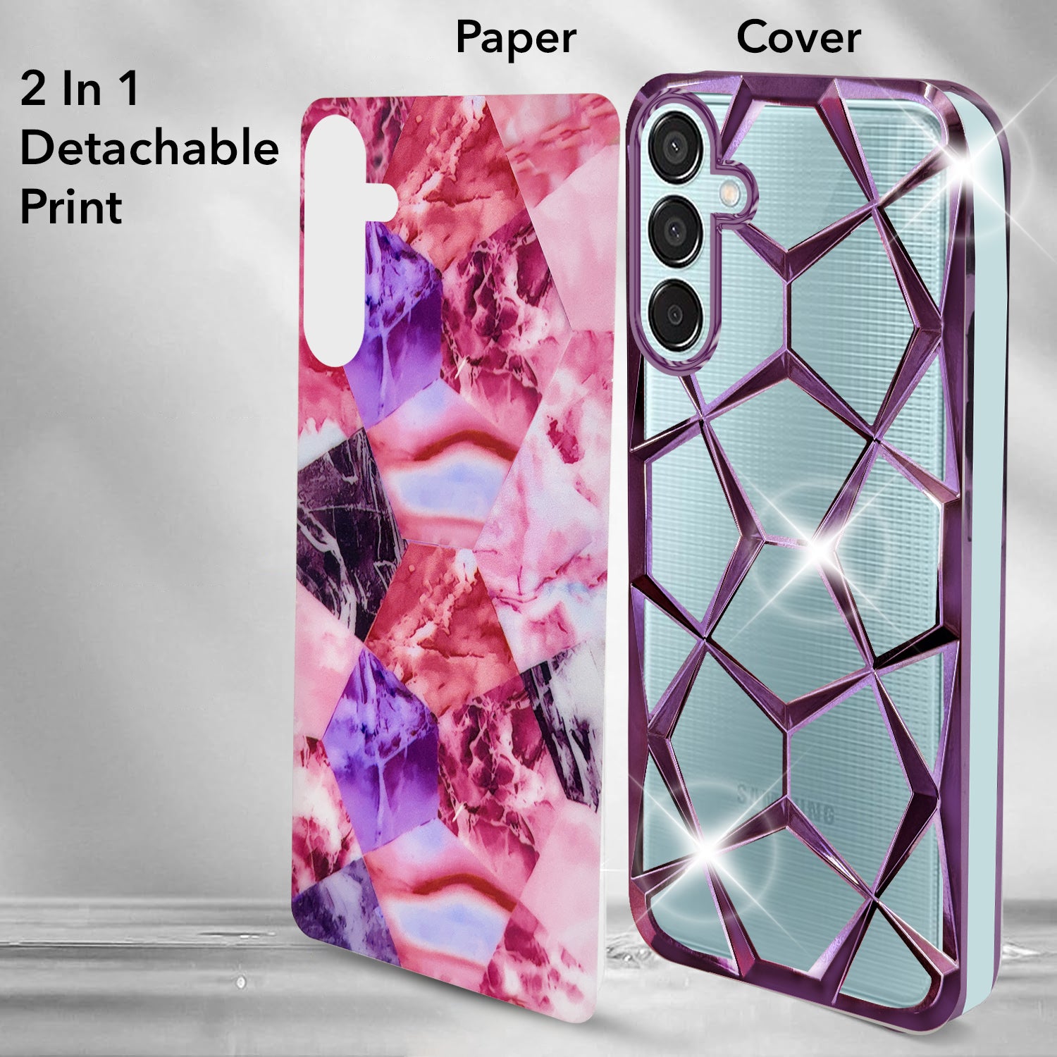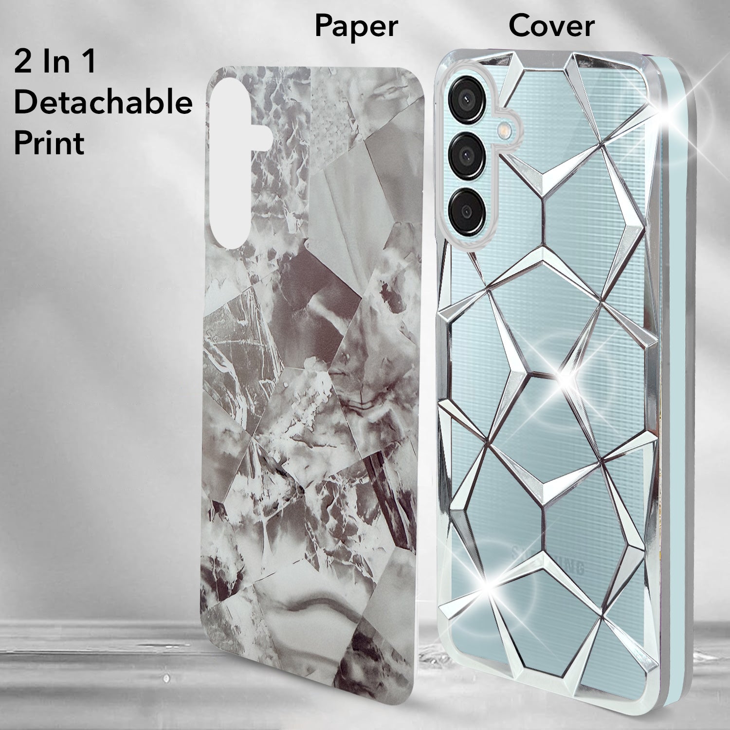 For Samsung Galaxy M15 5G Back Cover Case (Dual Design Glitter Sparkle and Detachable Diamond Print Case | Soft and Flexible)