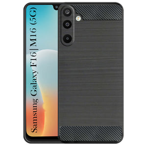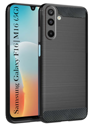 For Samsung Galaxy M16 5G | F16 5G Back Cover Case (Hybrid Armor Case | Carbon Fiber Shockproof | Soft and Flexible | Black )
