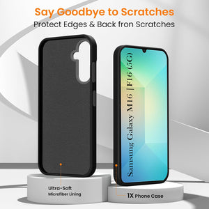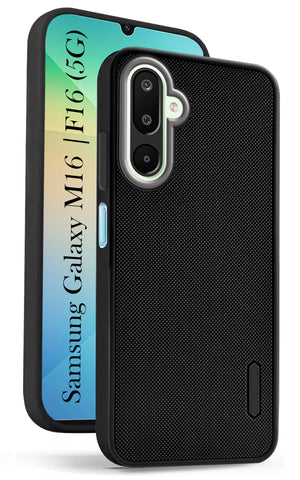 For Samsung Galaxy M16 5G | Samsung Galaxy F16 5G Back Cover Case (Textured Grip Design | Micro-Fiber Cloth Inside | Slim and Light Weight | Soft Touch and Feel | Black)