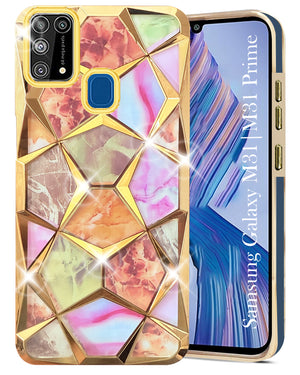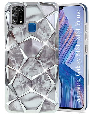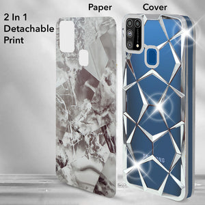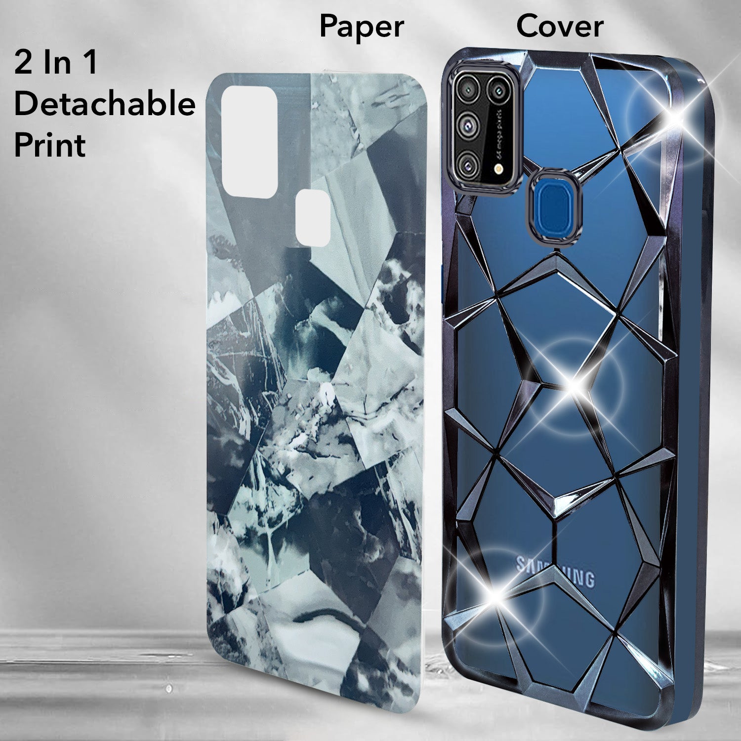 For Samsung Galaxy M31 | M31 Prime Back Cover Case (Dual Design Glitter Sparkle and Detachable Diamond Print Case | Soft and Flexible)