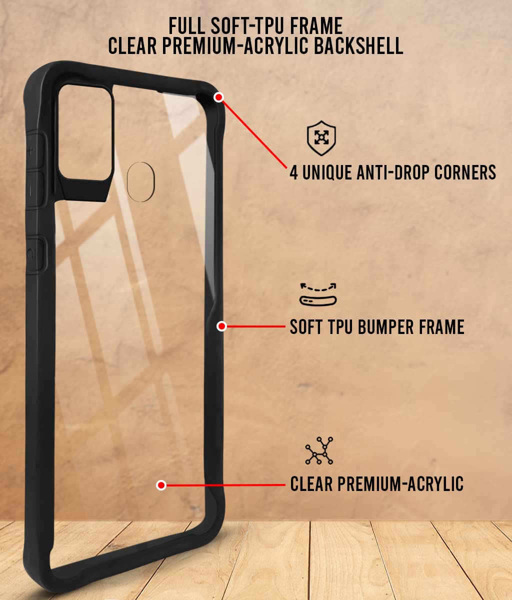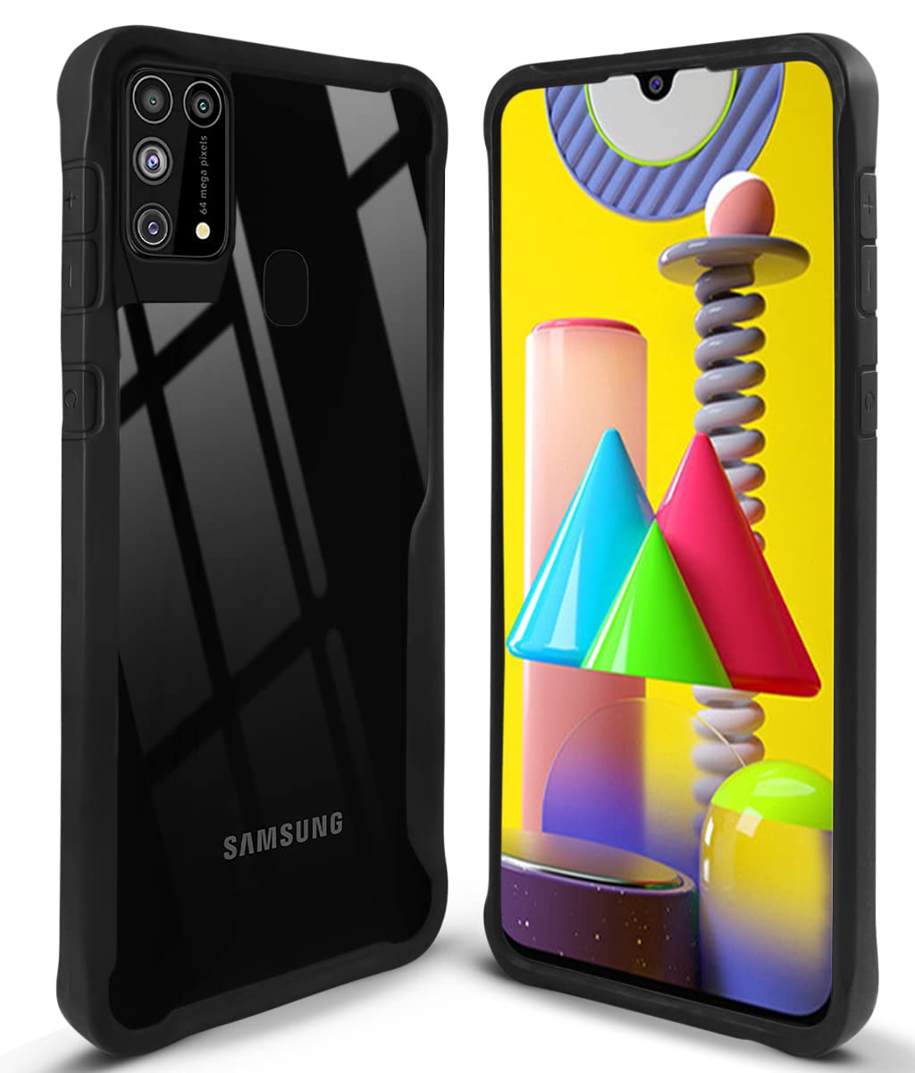 For Samsung Galaxy M31 | M31 Prime Edition Back Cover Case (Shockproof with Polycarbonate Clear Panel | Professional Black)