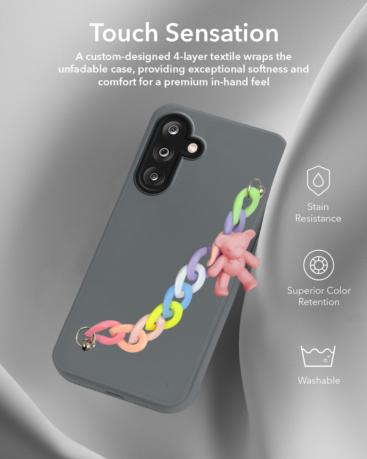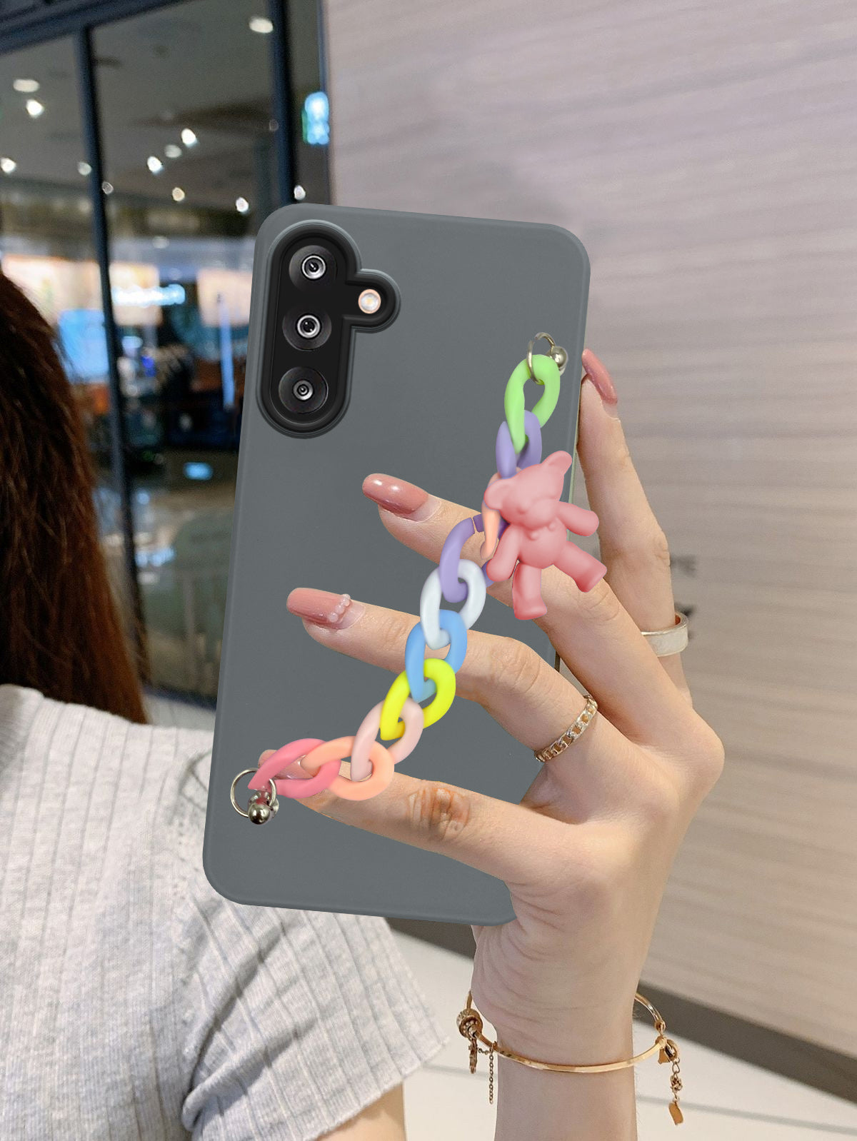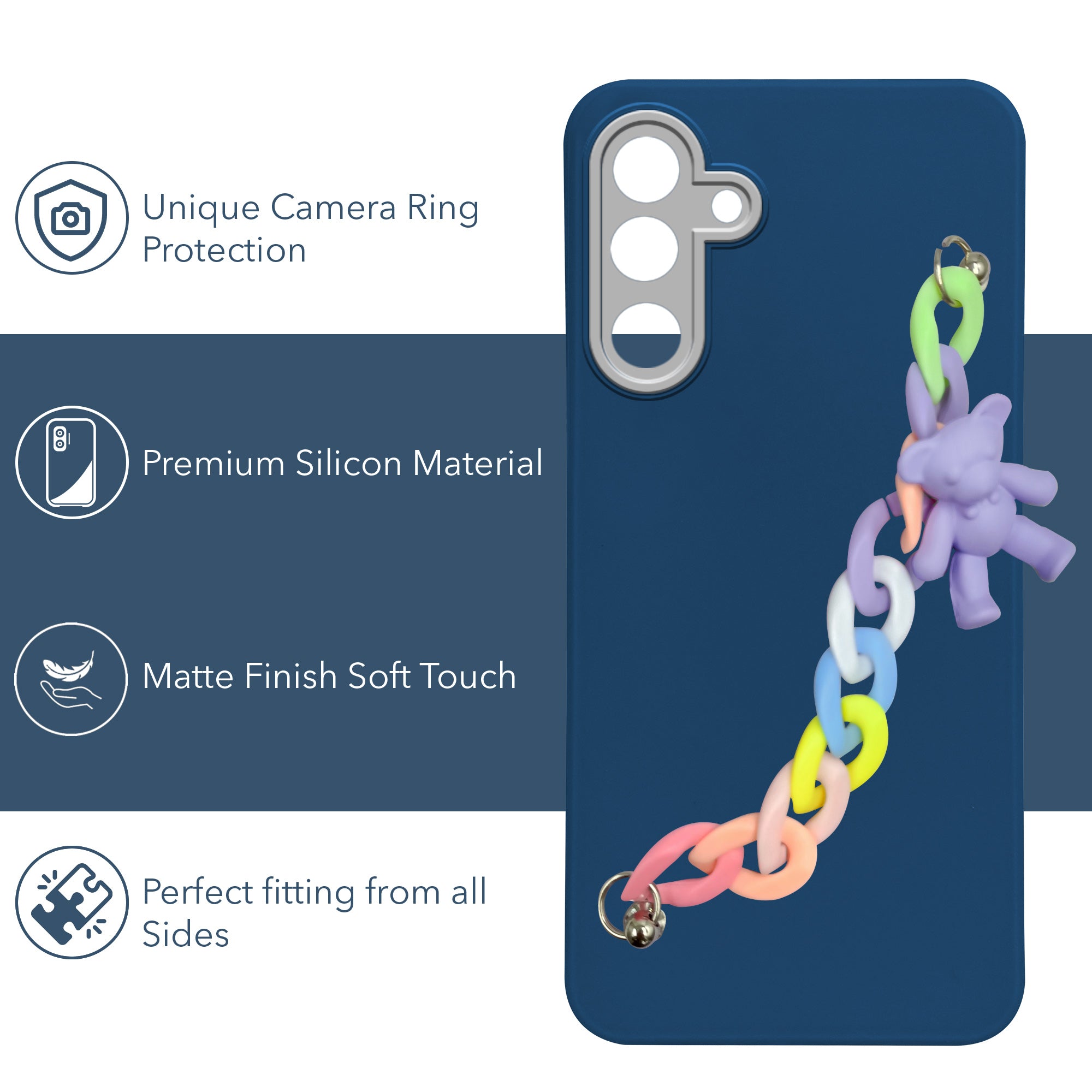 For Samsung Galaxy M36 | Samsung Galaxy F36 Back Cover Case ( Wrist Hanging Chain | Teddy Bracelet Charms | Dual Color Matte Finish | Full Camera Protection | Sleek and
