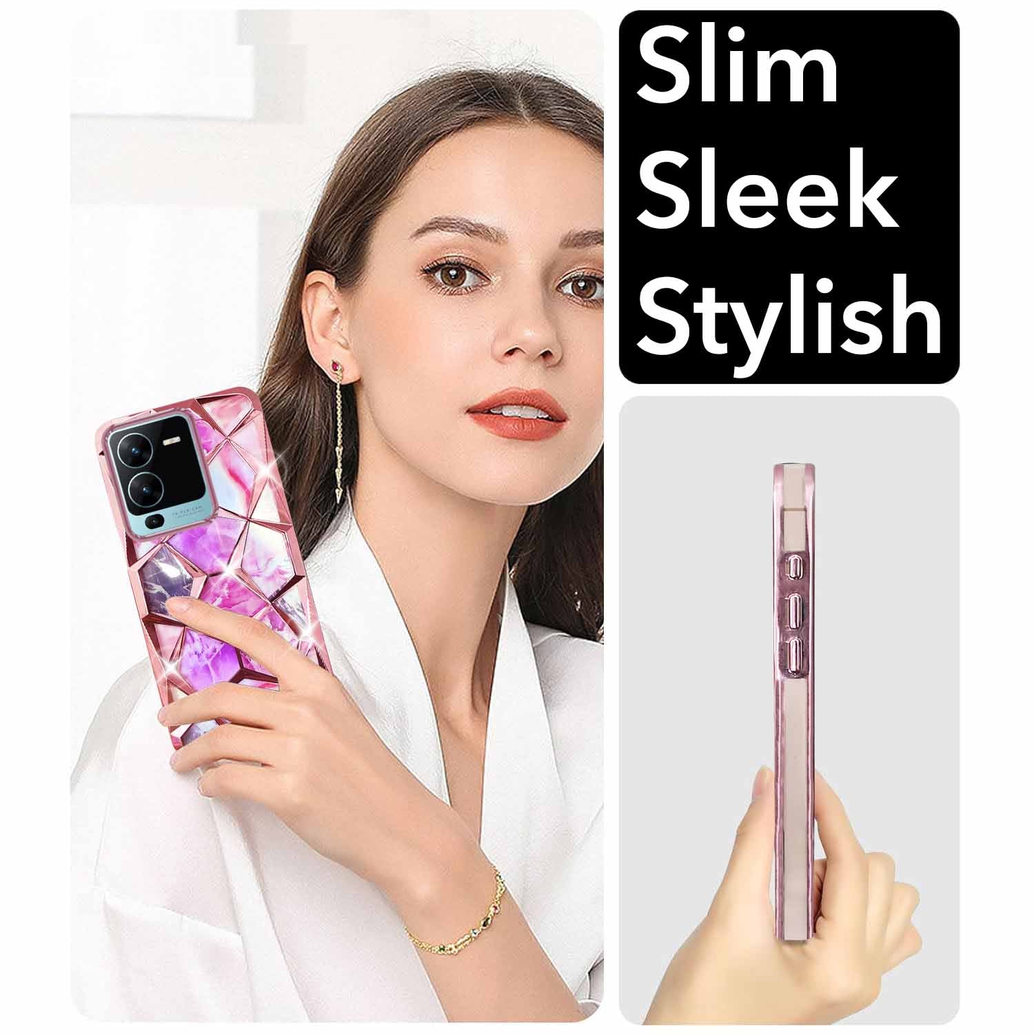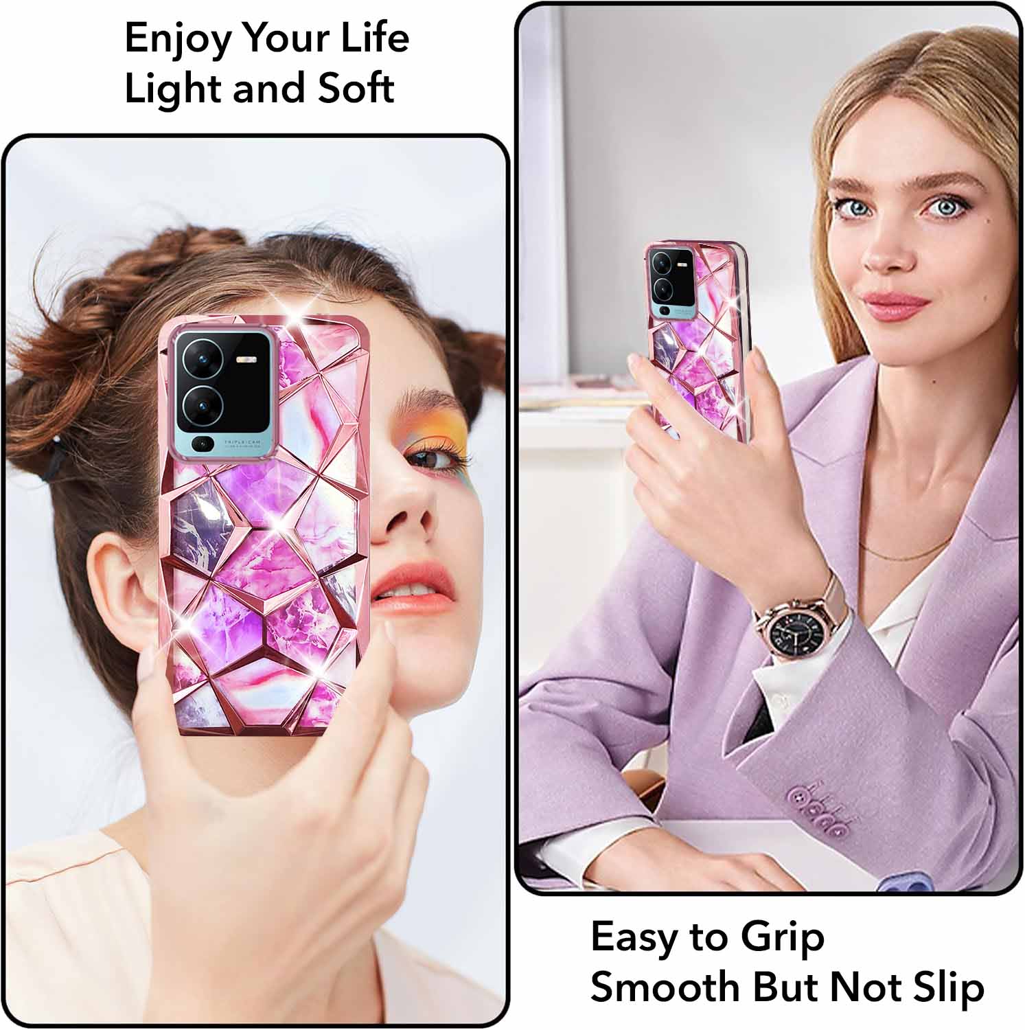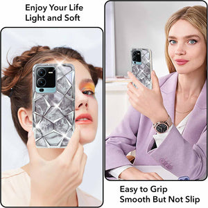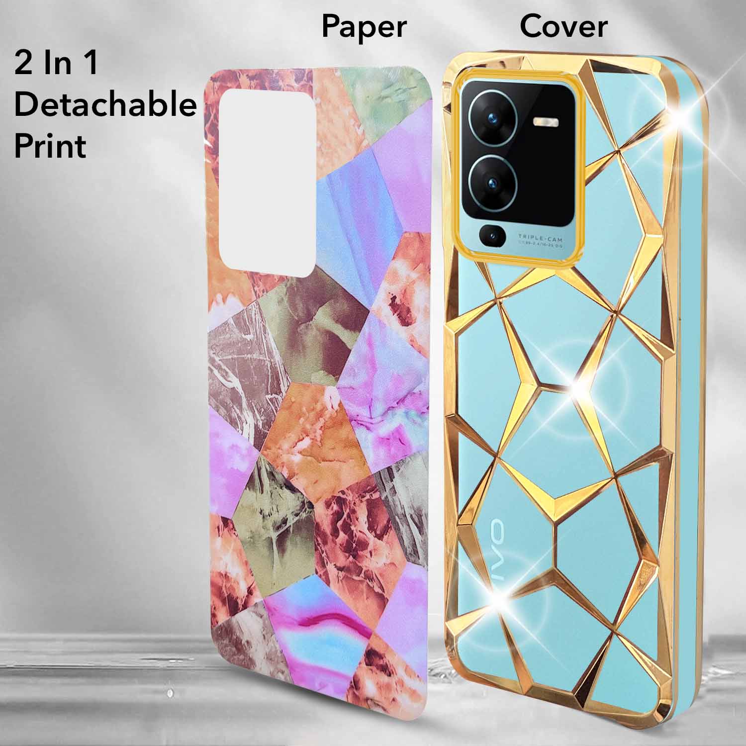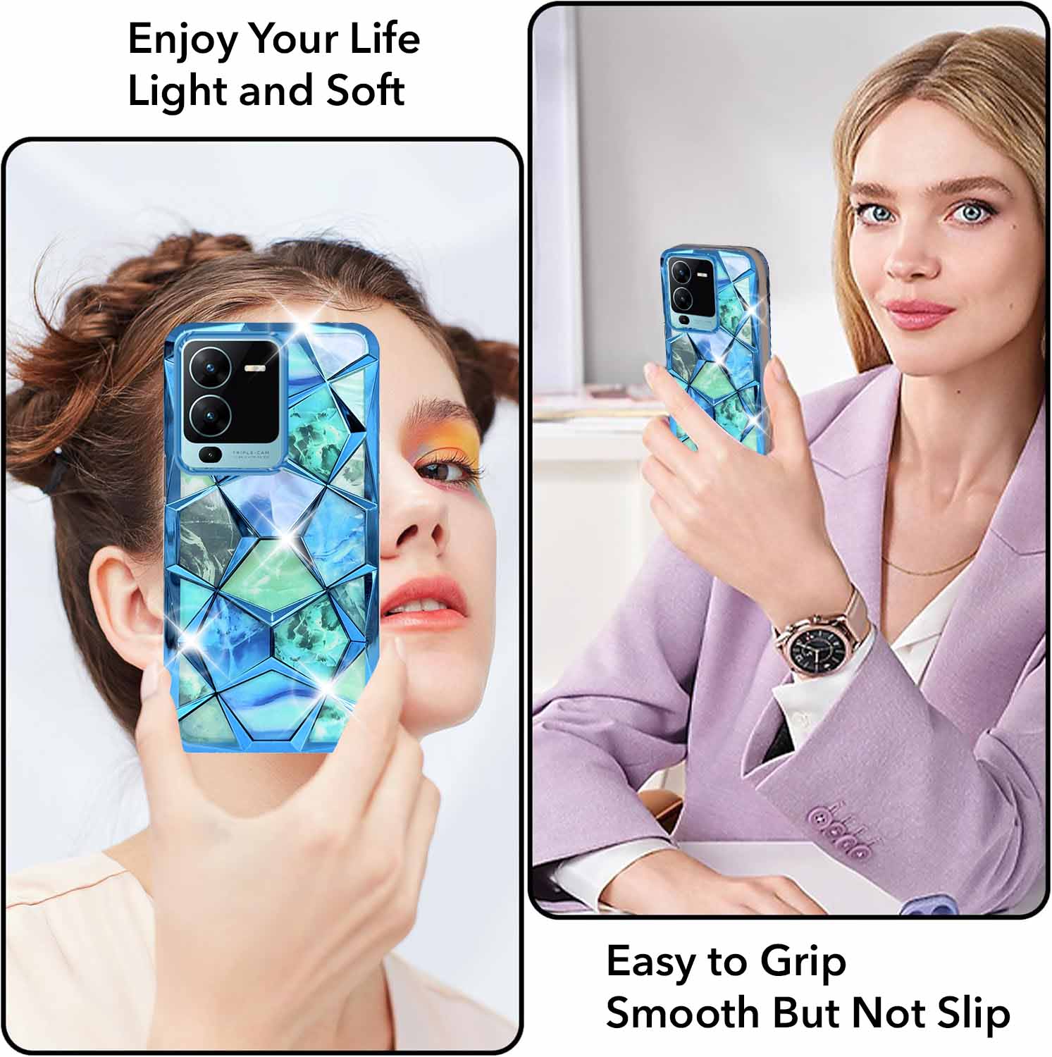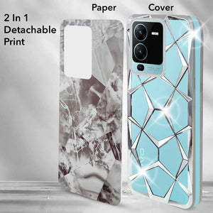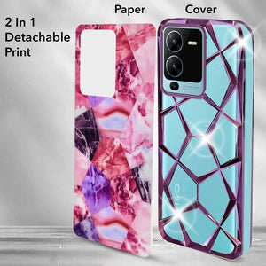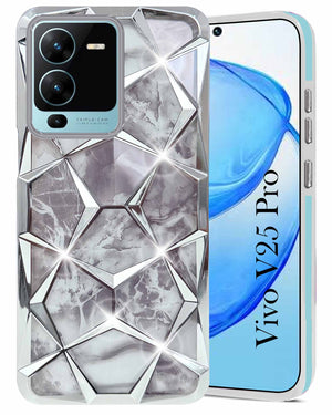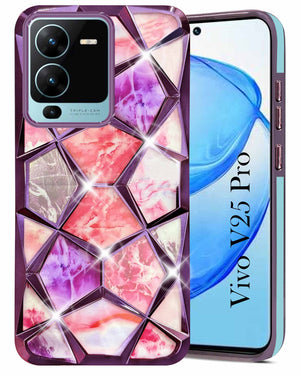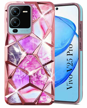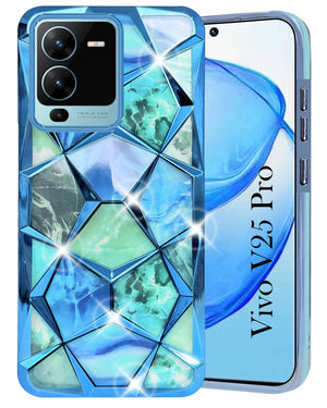 For Vivo V25 Pro Back Cover Case ( Dual Design Glitter Sparkle and Detachable Diamond Print Case | Soft and Flexible)