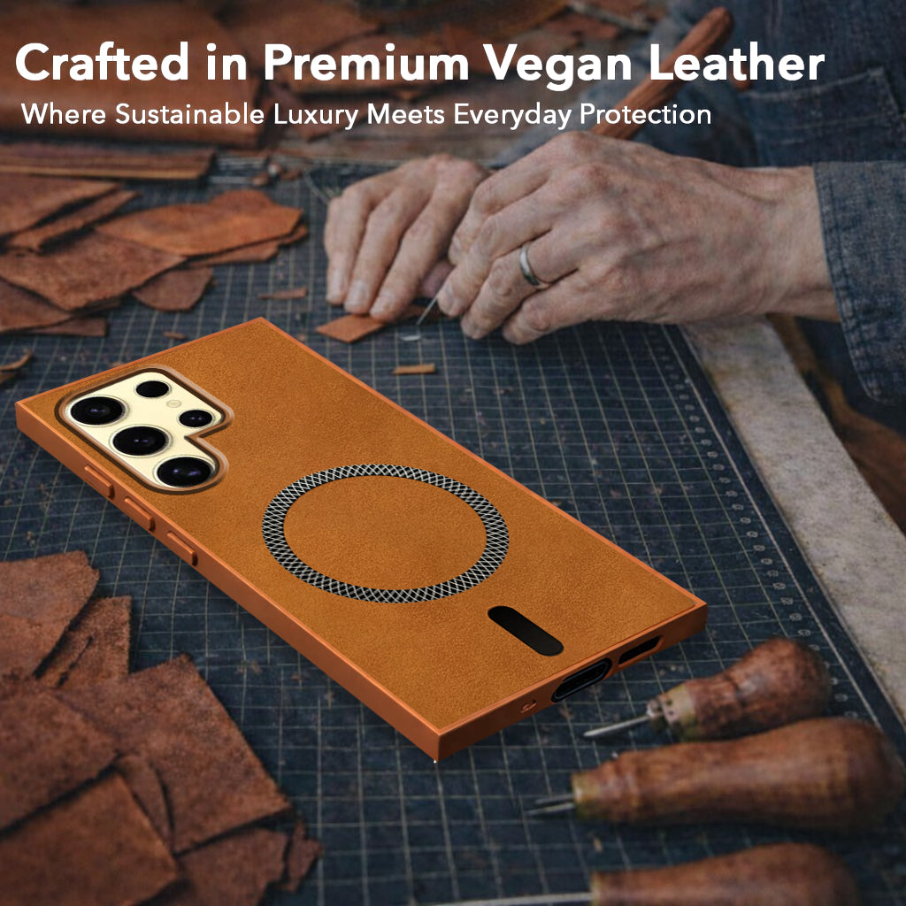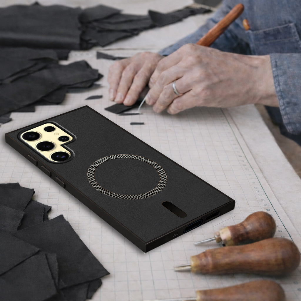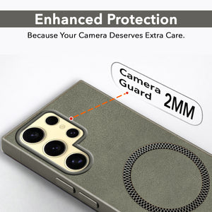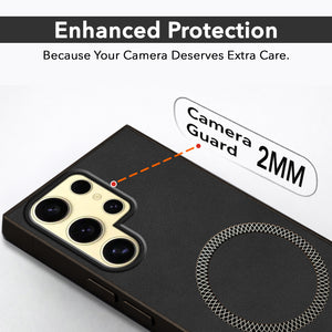 For Samsung Galaxy S24 Ultra Back Cover Case (Sleek Leather Finish | MagSafe Compatible Wireless Charging | Camera Bump Protection)