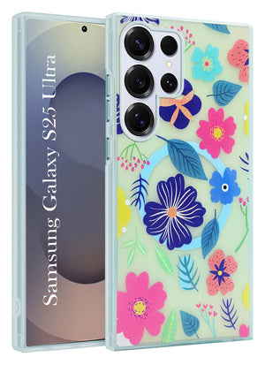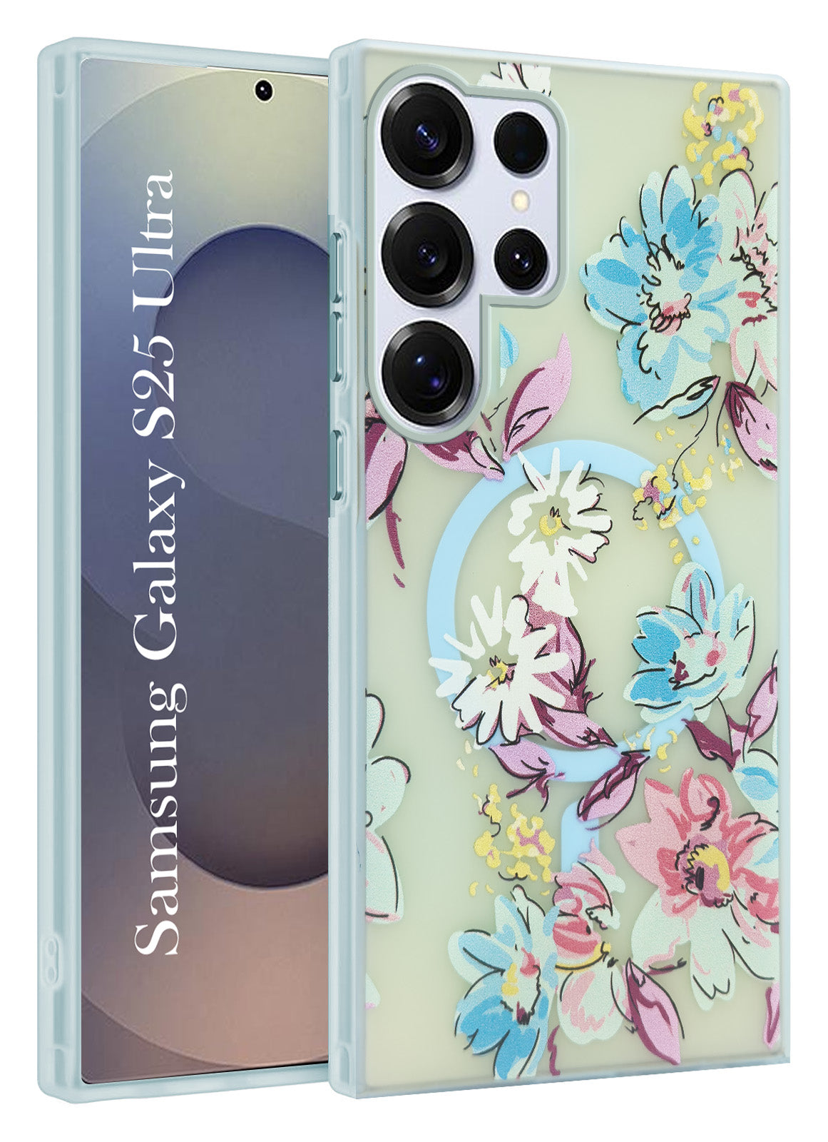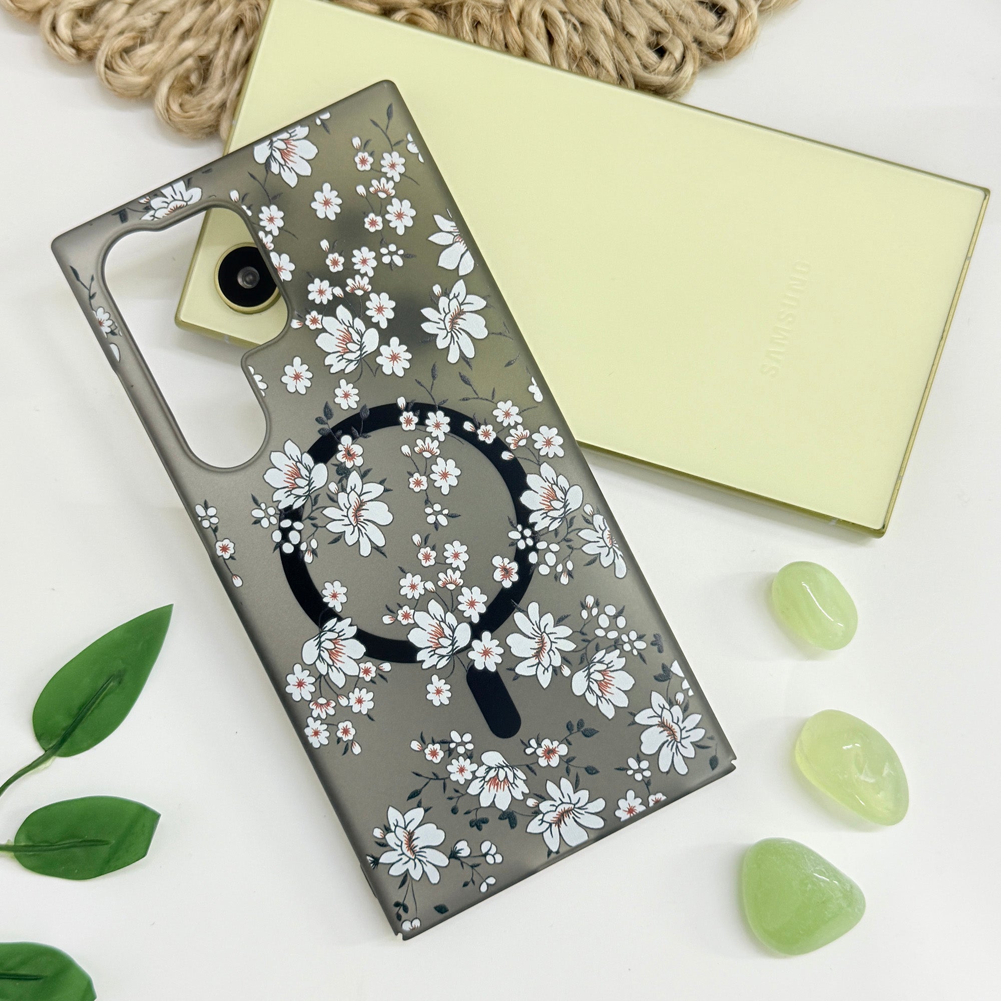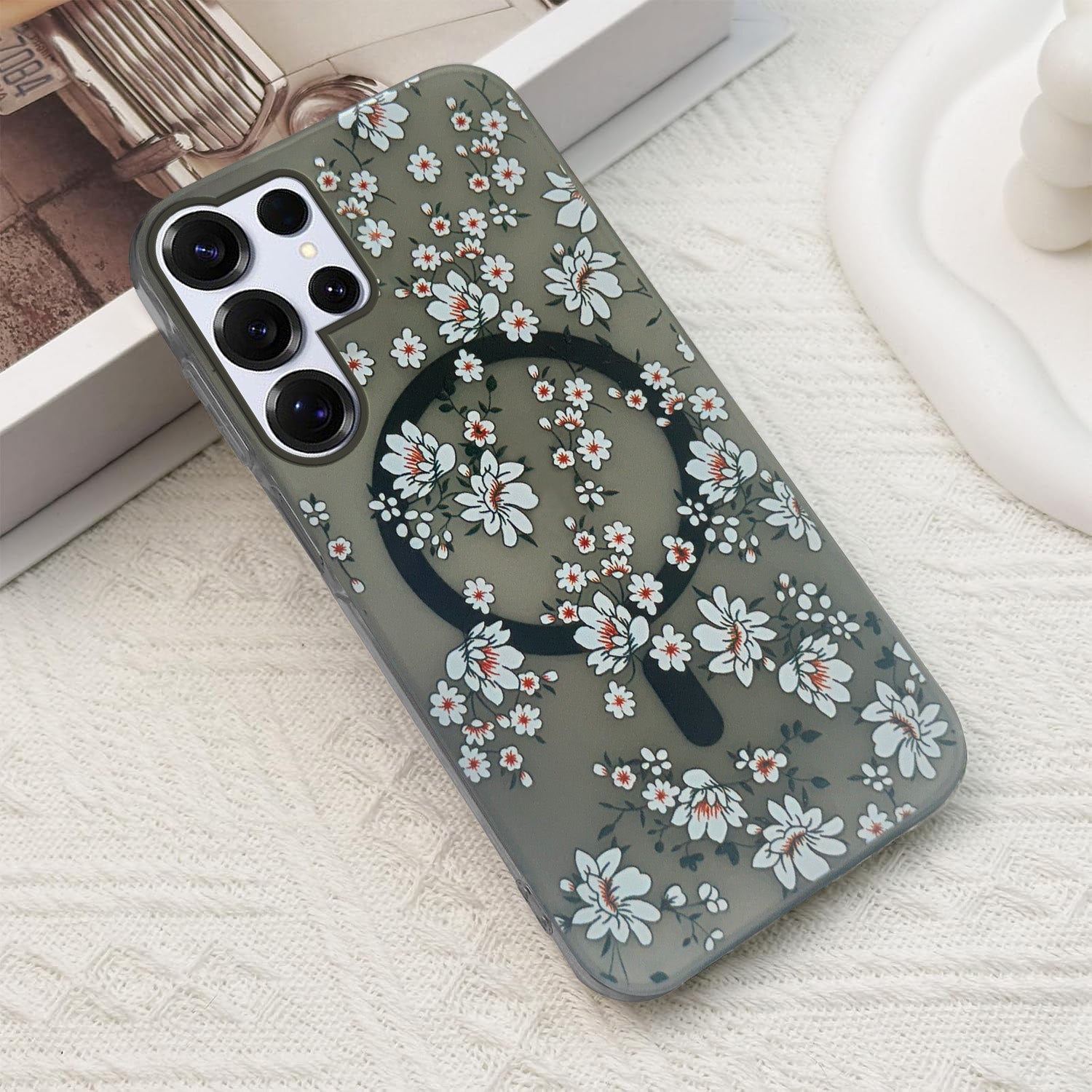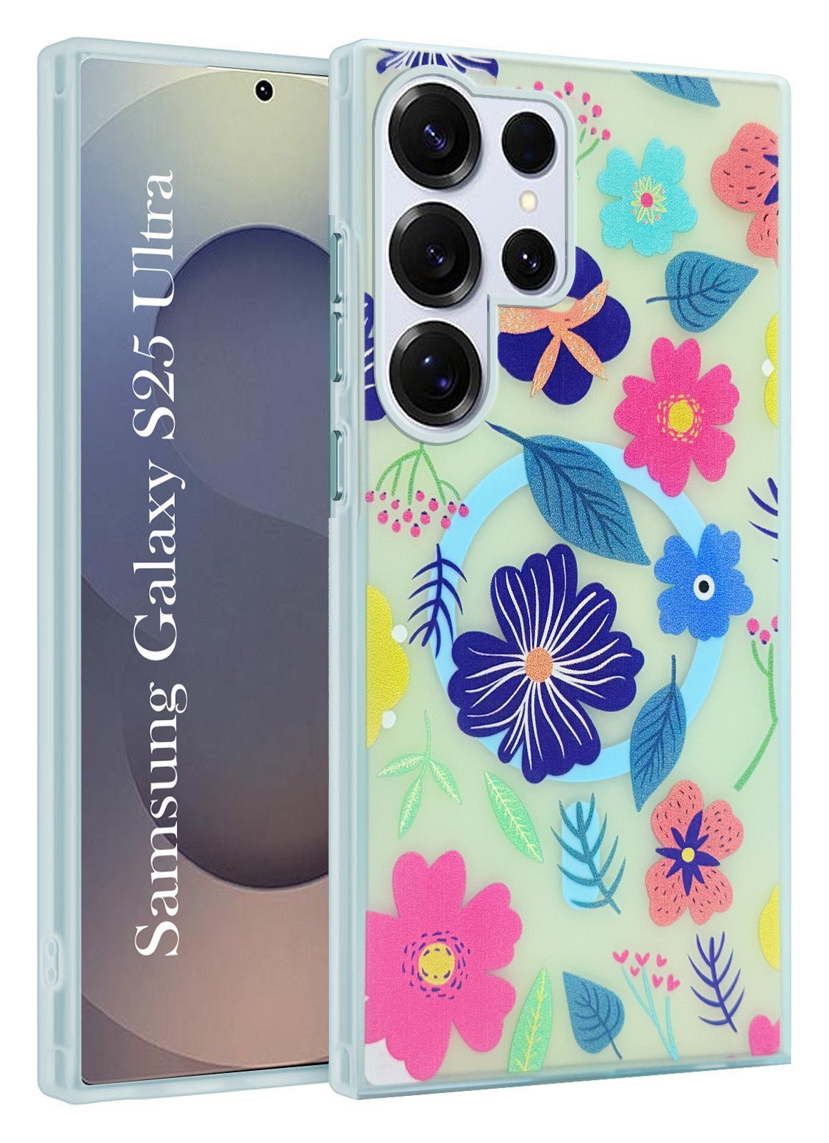 For Samsung Galaxy S25 Ultra Back Cover Case (Cute Floral Design | Flower Print for Girls | MagSafe Compatible Wireless Charging)