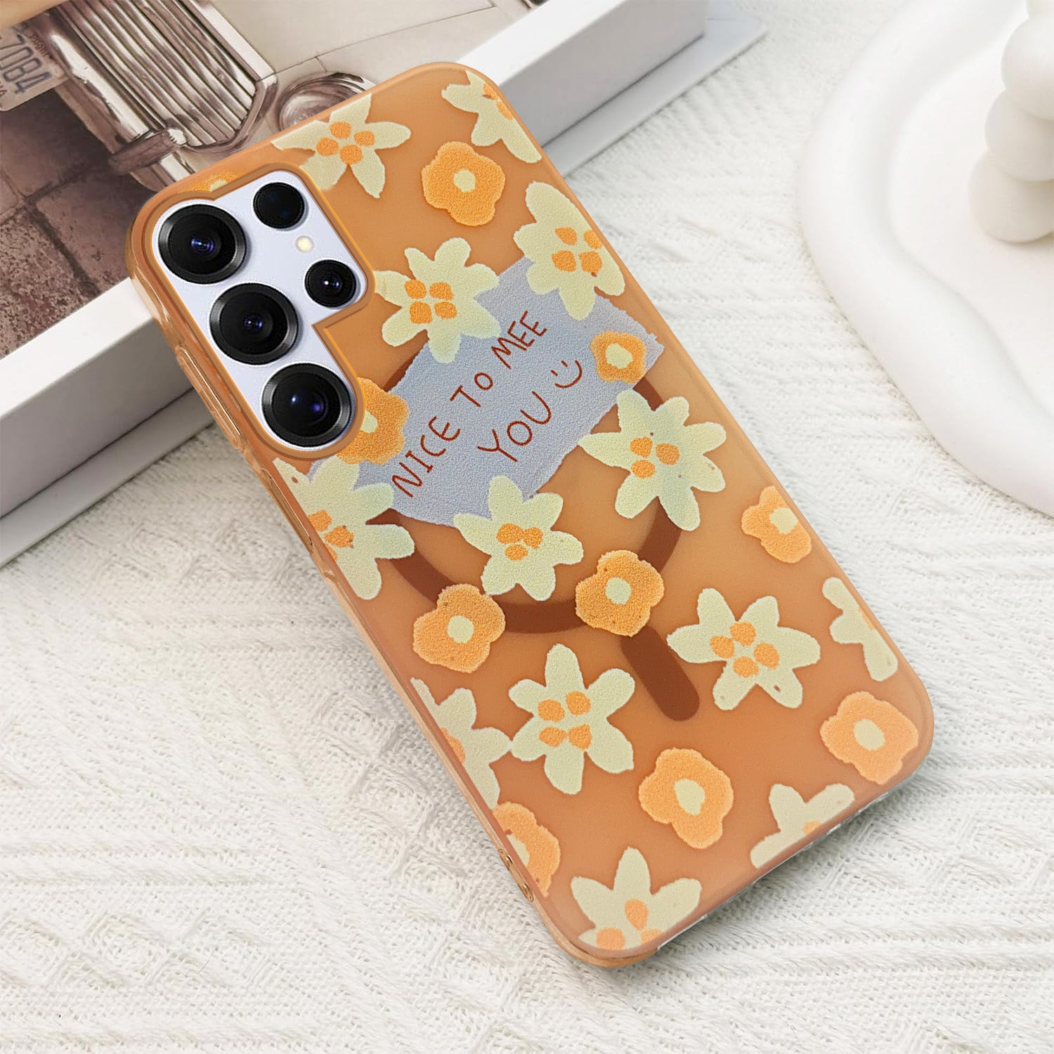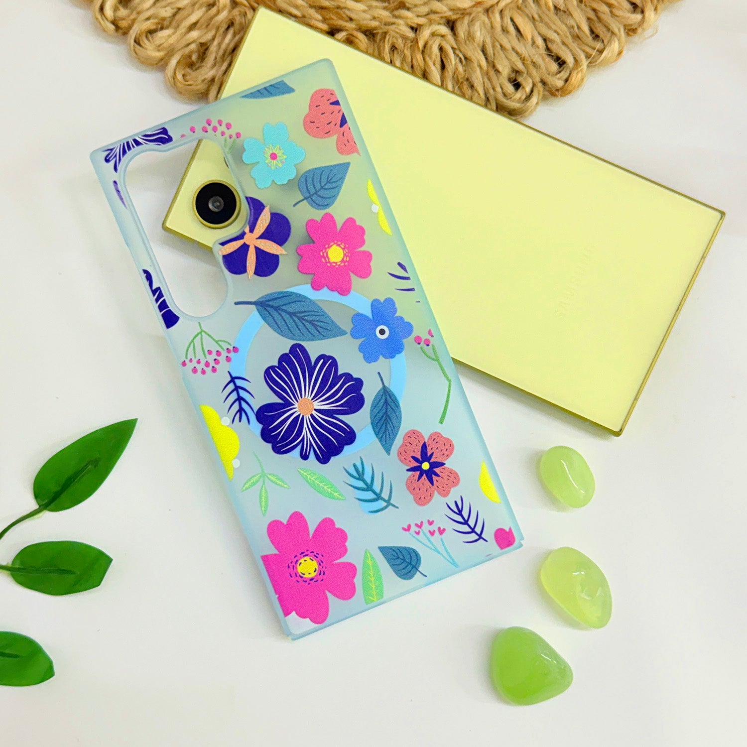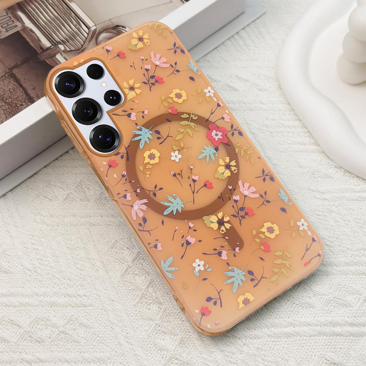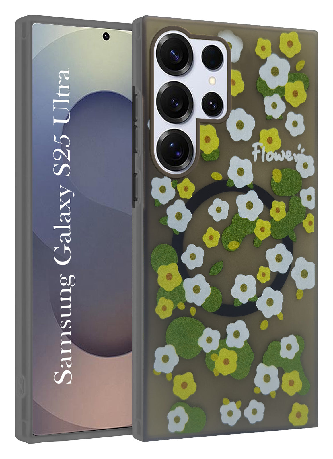 For Samsung Galaxy S25 Ultra Back Cover Case (Cute Floral Design | Flower Print for Girls | MagSafe Compatible Wireless Charging)