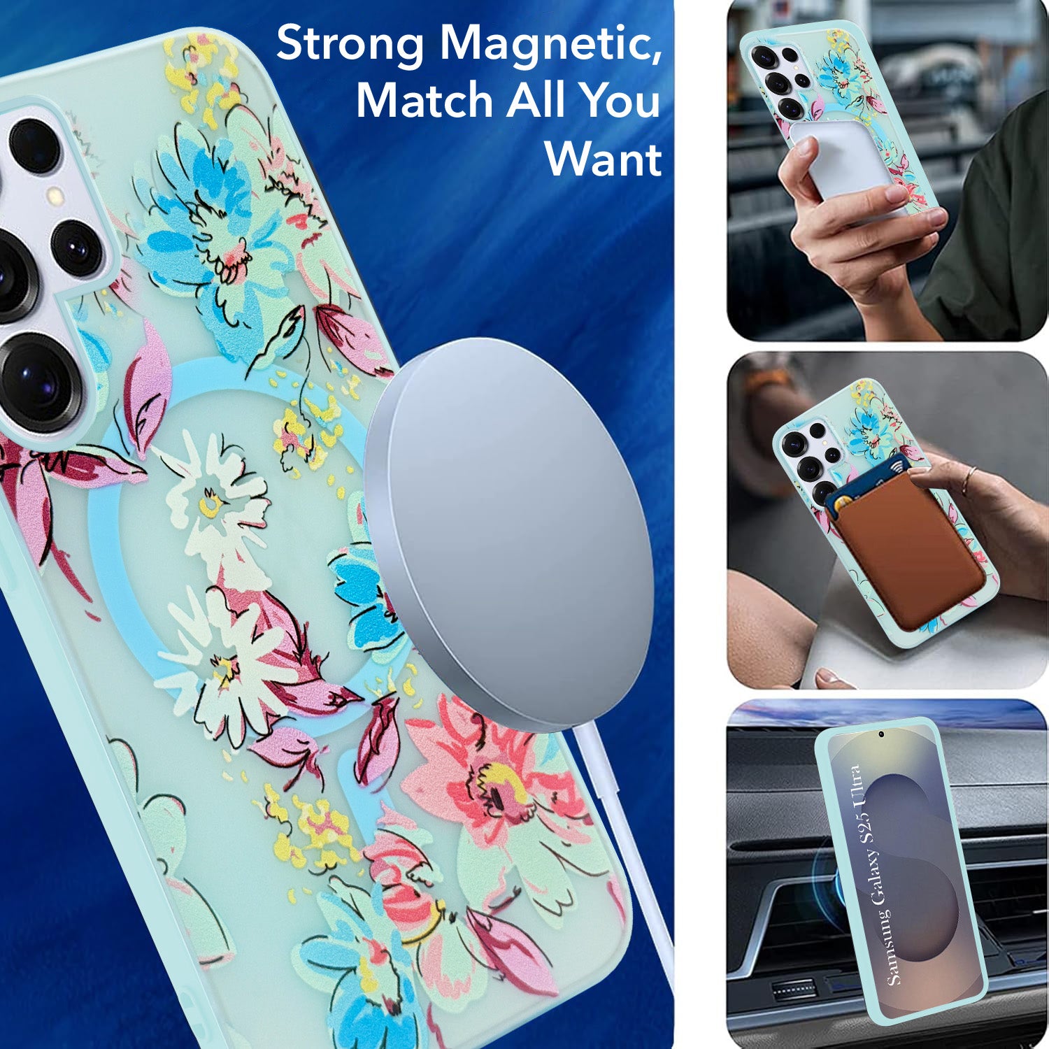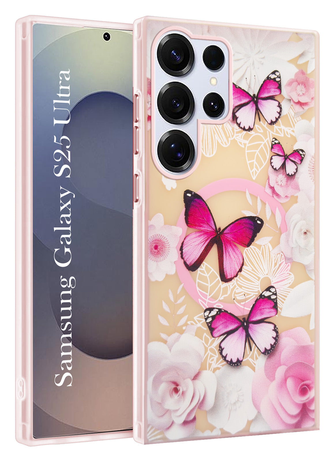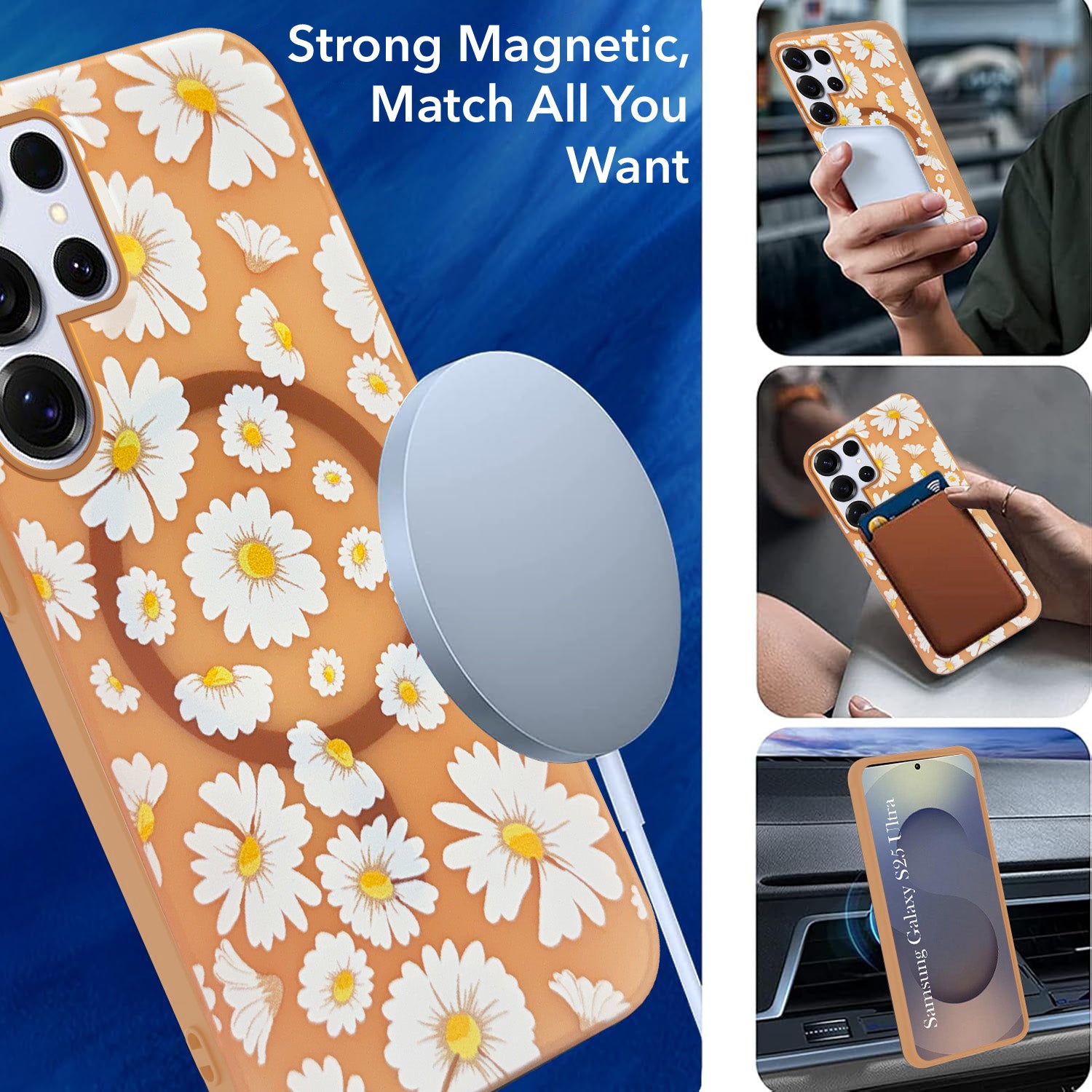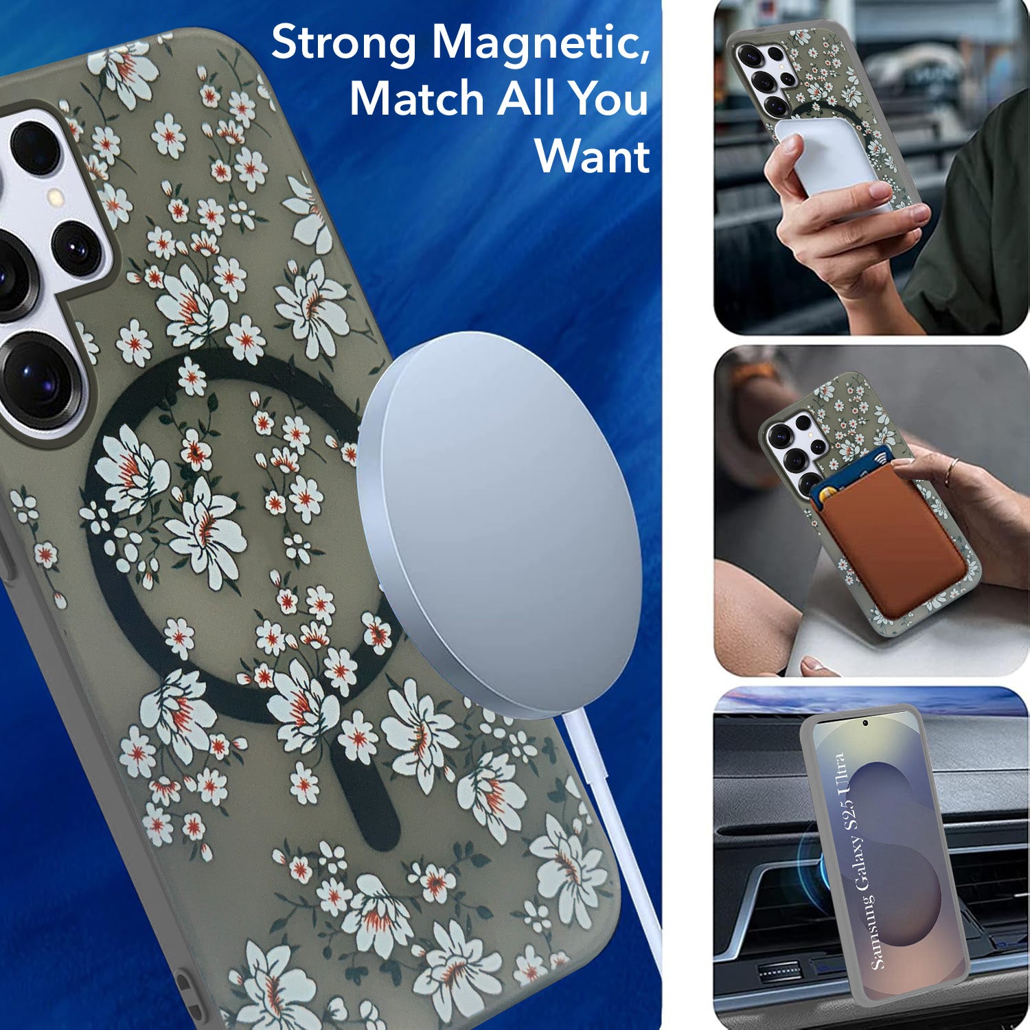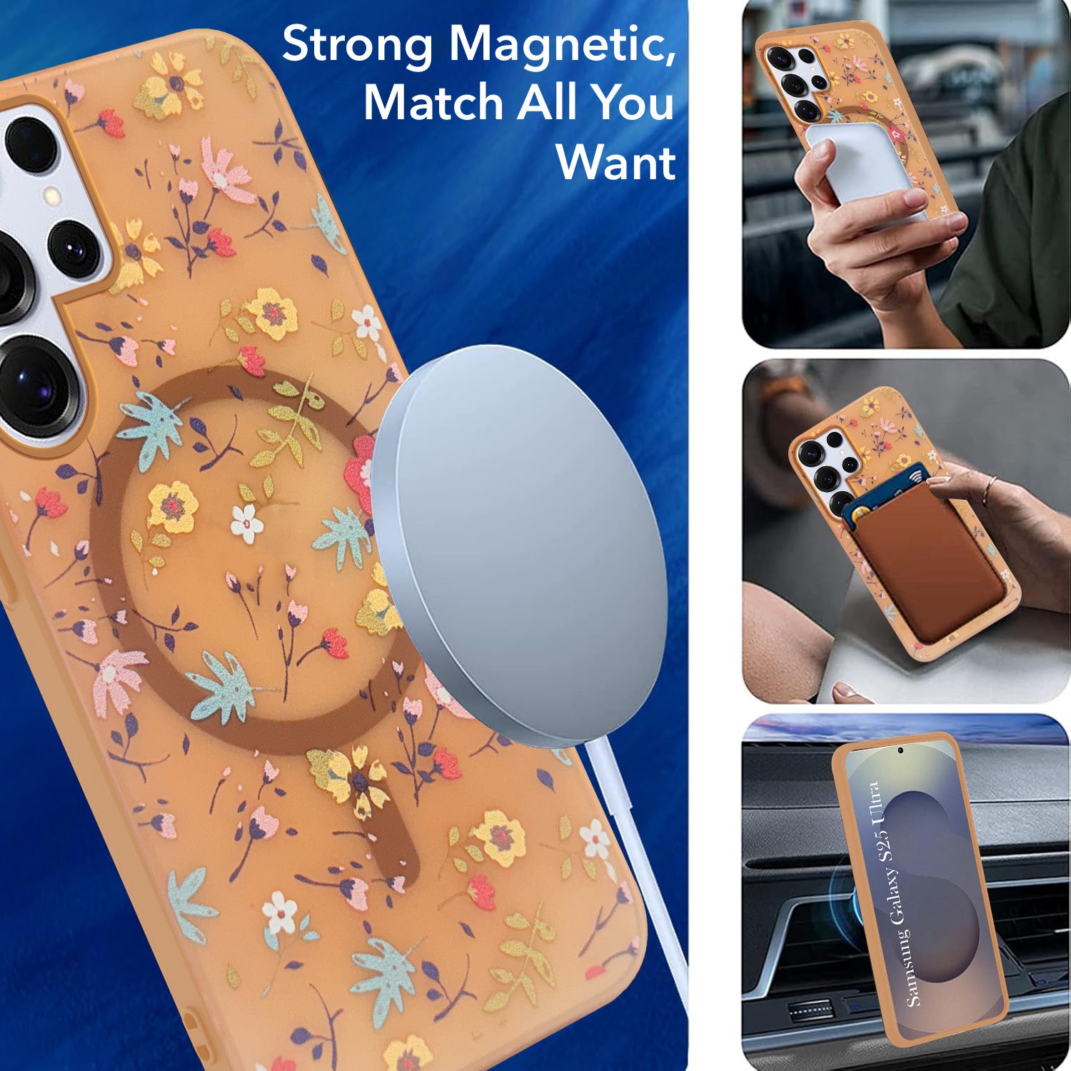For Samsung Galaxy S25 Ultra Back Cover Case (Cute Floral Design | Flower Print for Girls | MagSafe Compatible Wireless Charging)