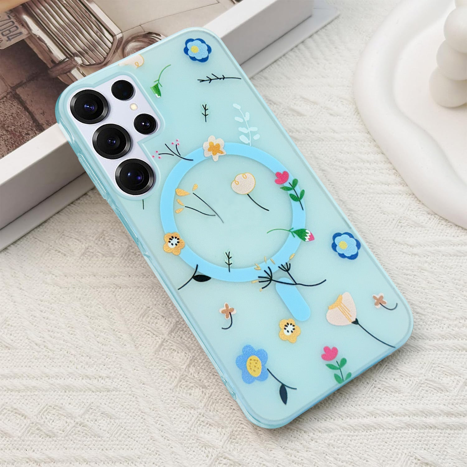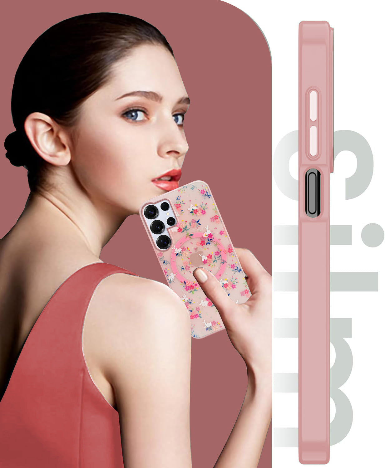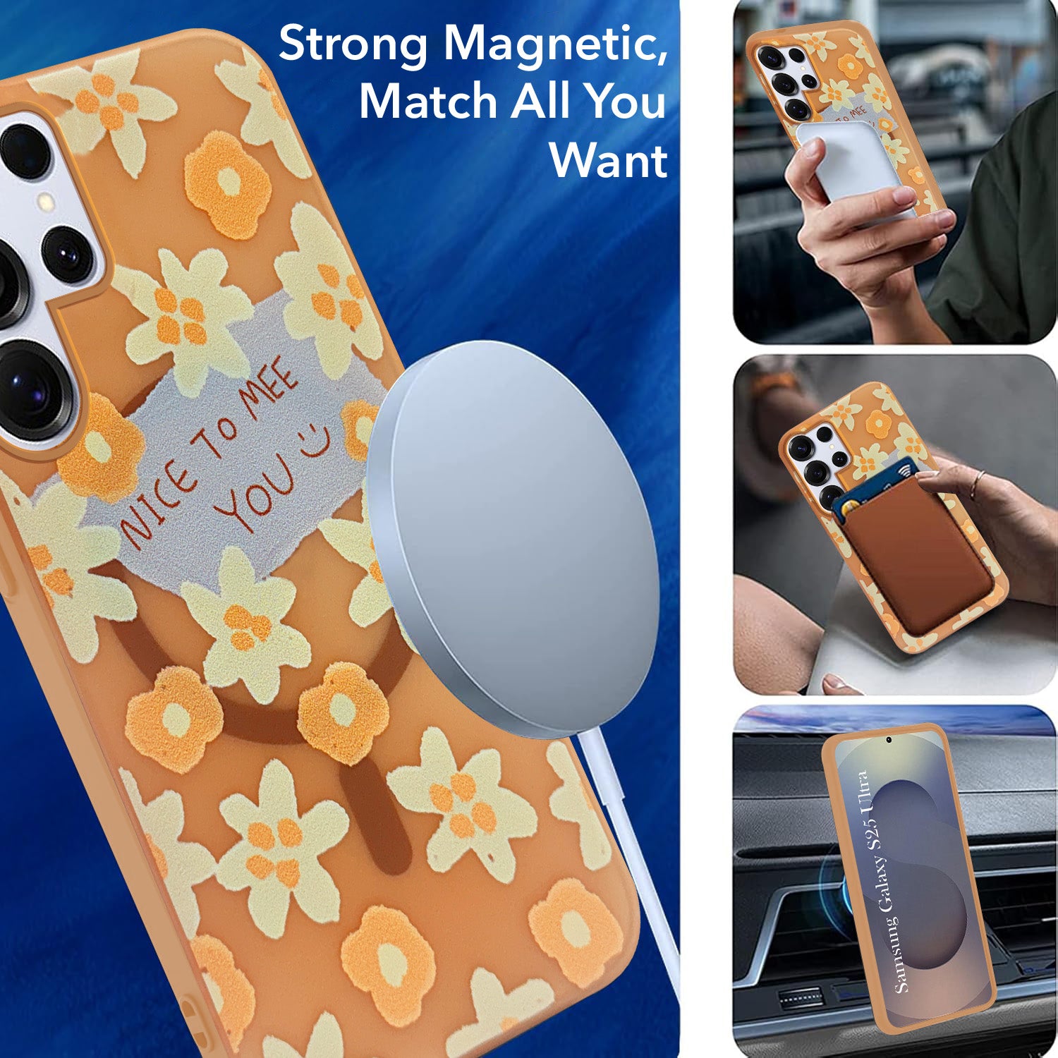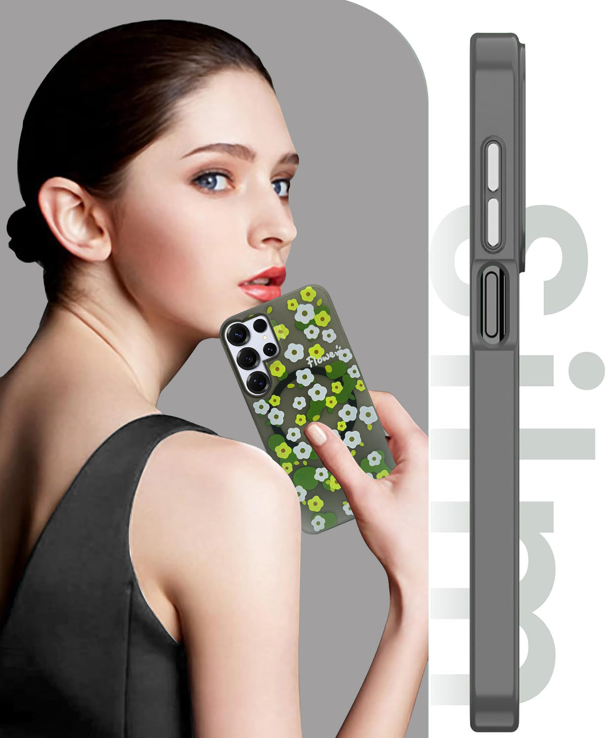 For Samsung Galaxy S25 Ultra Back Cover Case (Cute Floral Design | Flower Print for Girls | MagSafe Compatible Wireless Charging)