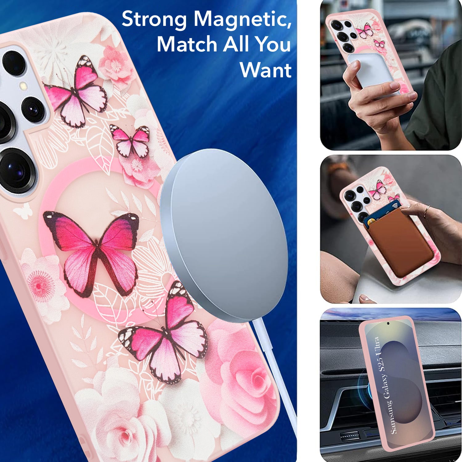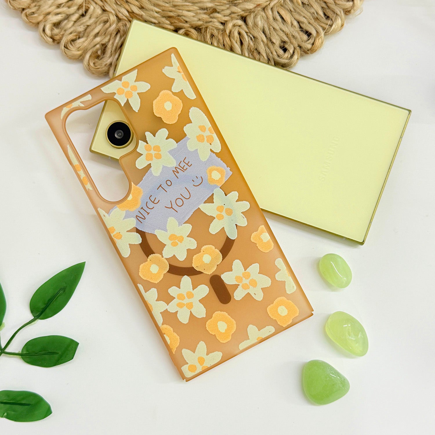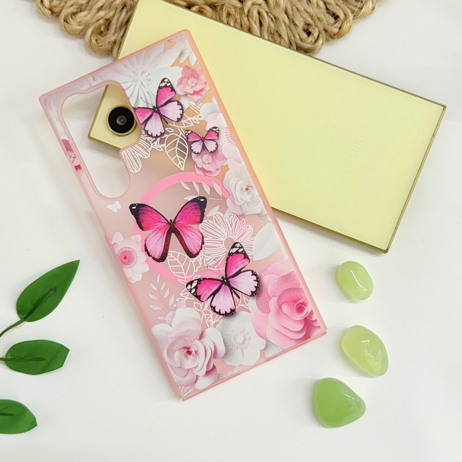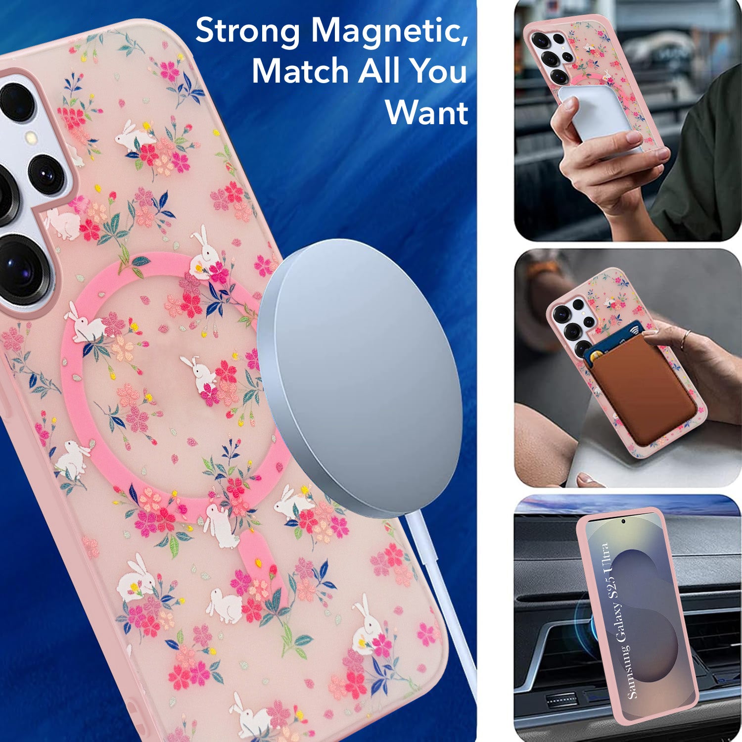 For Samsung Galaxy S25 Ultra Back Cover Case (Cute Floral Design | Flower Print for Girls | MagSafe Compatible Wireless Charging)