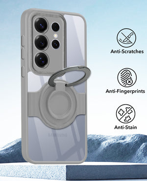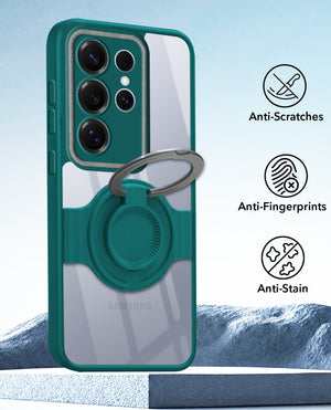 For Samsung Galaxy S25 Ultra Back Cover Case with stand (Built-in Ring Holder Kickstand | Lifetime Anti Yellow | Camera Protection)
