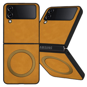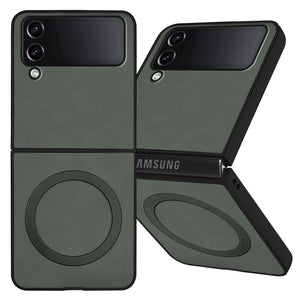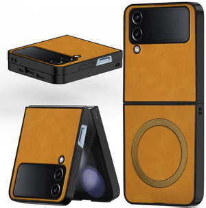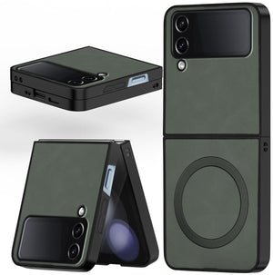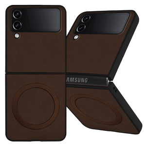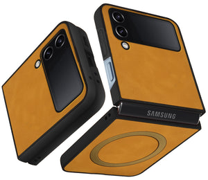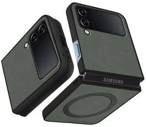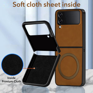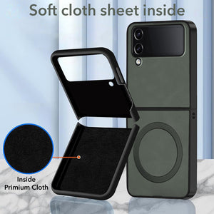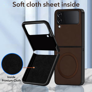 For Samsung Galaxy Z Flip 4 5G Back Cover Case (MagSafe Wireless Charging Compatible | Sleek Leather Finish | Inside Microfiber Cloth)