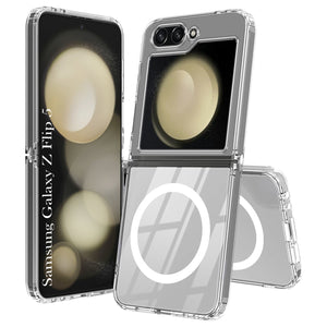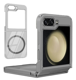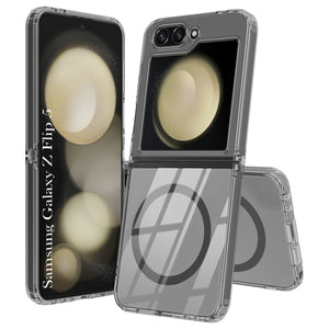 For Samsung Galaxy Z Flip 5 Back Cover Case Lifetime Anti-Yellow Clear (Magnetic Charging Support | Sleek Hard Crystal | Shockproof and Camera Protection)