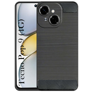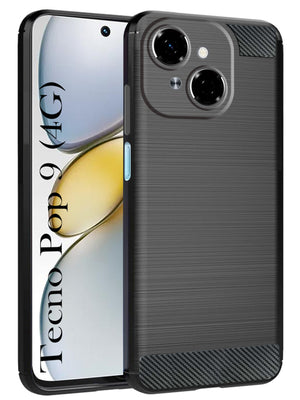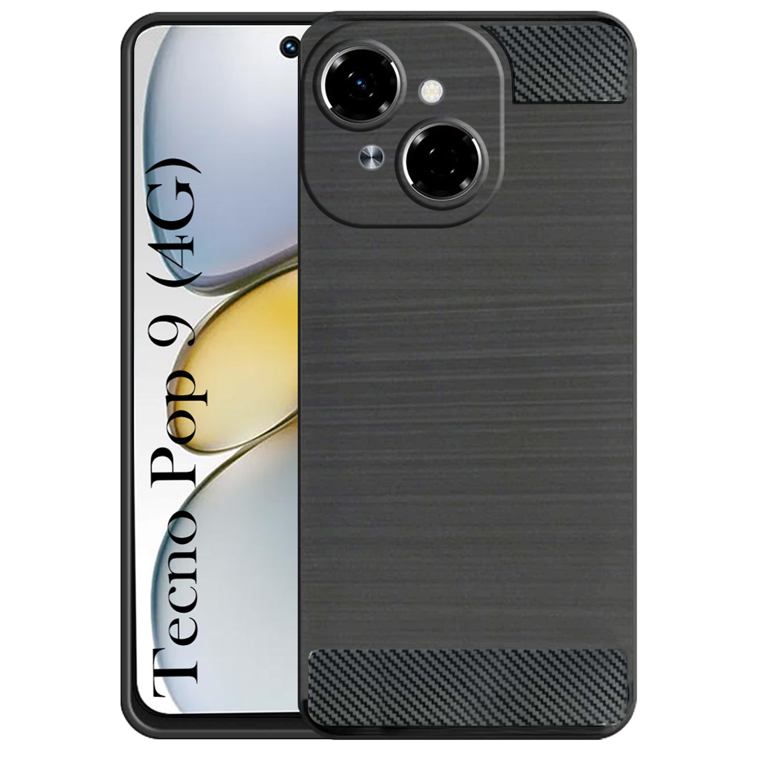 For Tecno Pop 9 4G Back Cover Case ( Hybrid Armor Case | Carbon Fiber Shockproof | Soft and Flexible | Black )