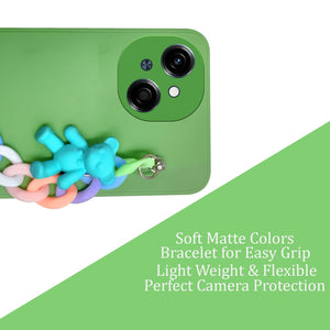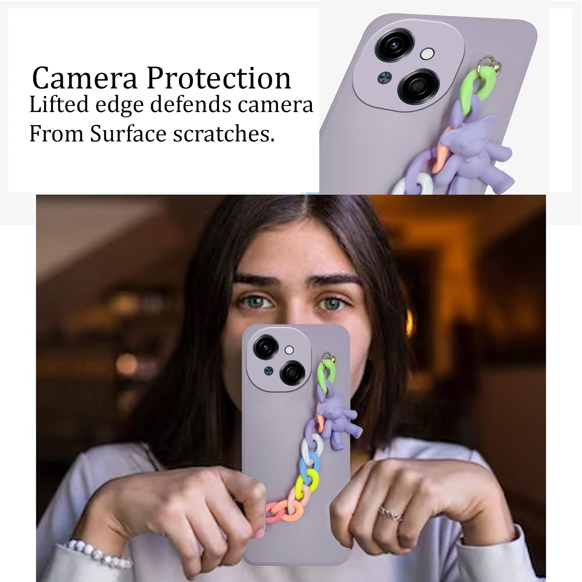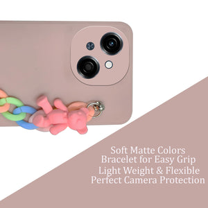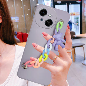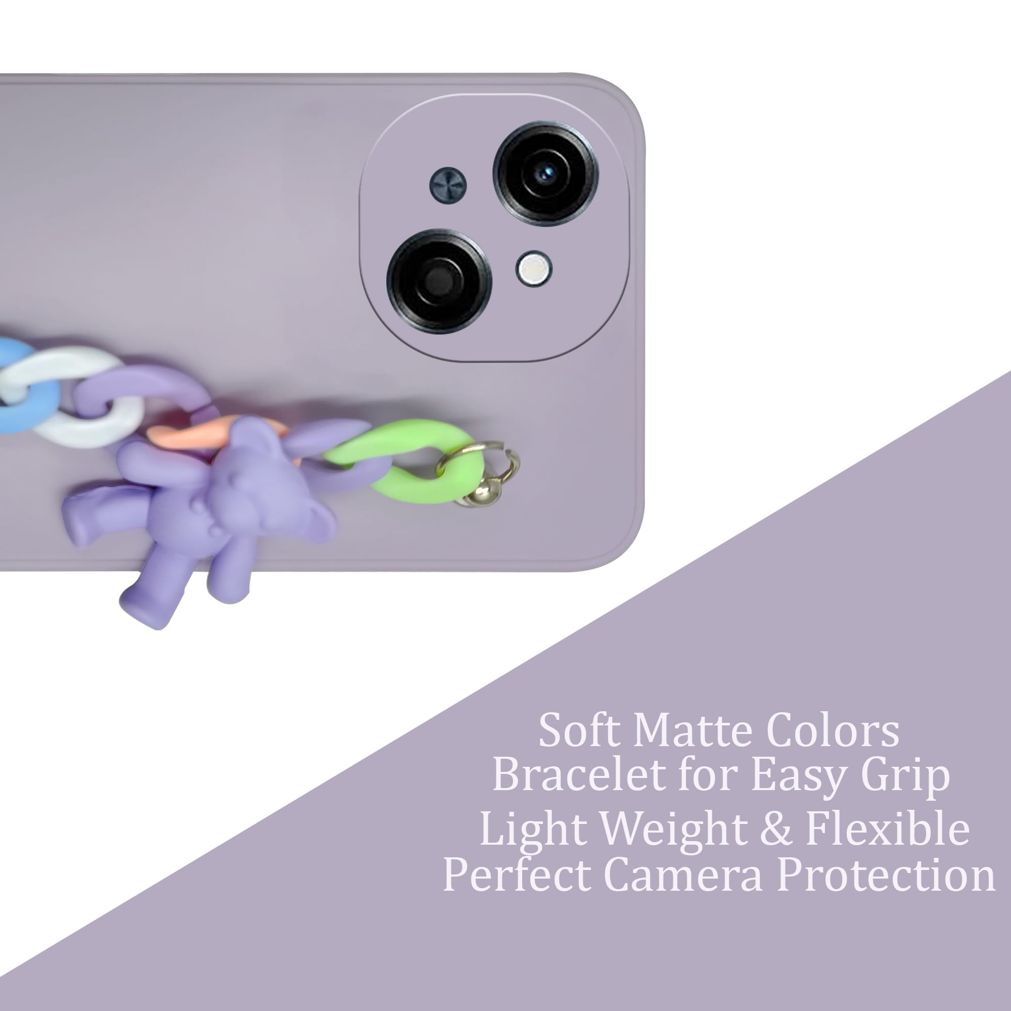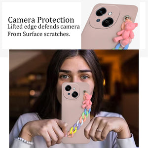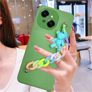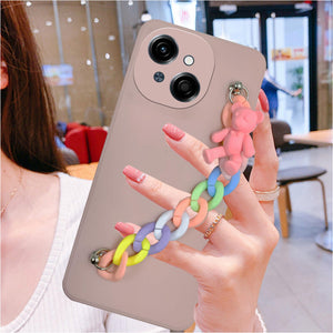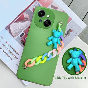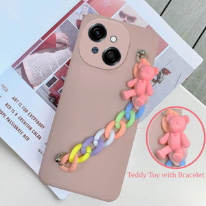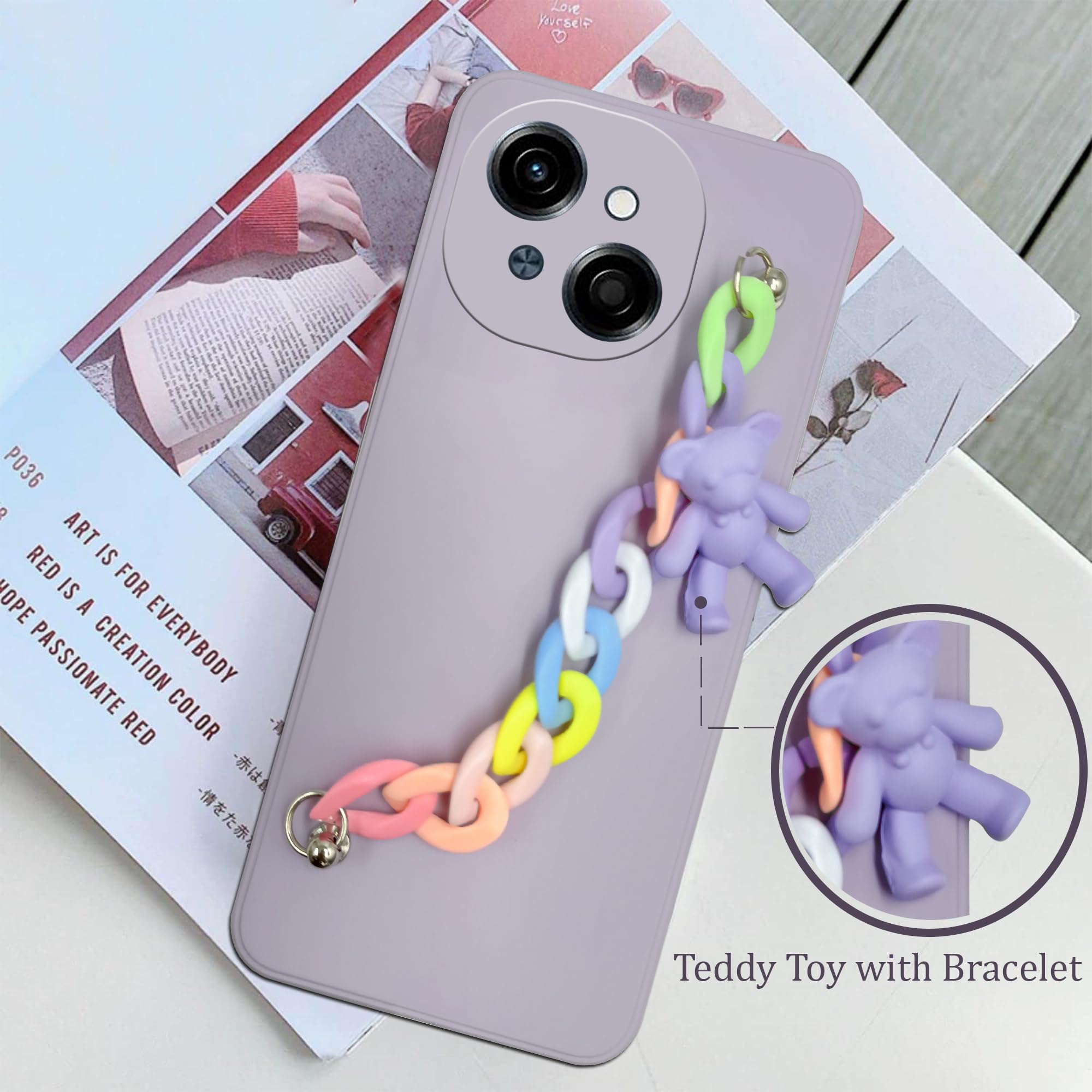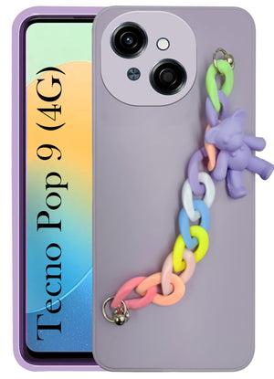 For Tecno Pop 9 4G Back Cover Girls Case with Bracelet (Wrist Hanging Chain | Teddy Toy Cartoon)