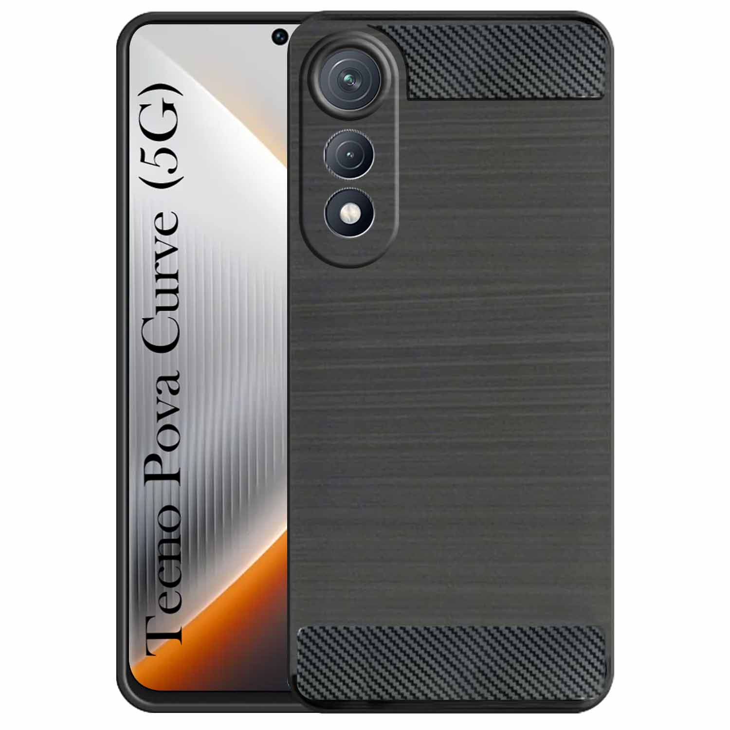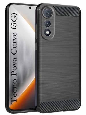 For Tecno Pova Curve Back Cover Case ( Hybrid Armor Case | Carbon Fiber Shockproof | Soft and Flexible | Black )