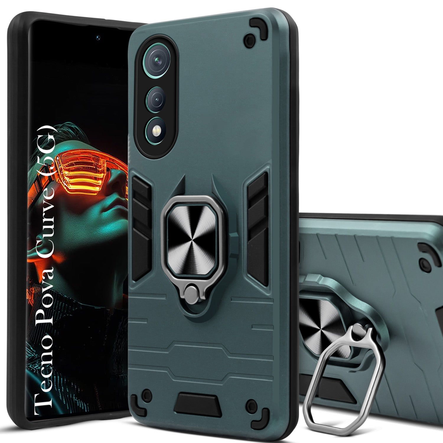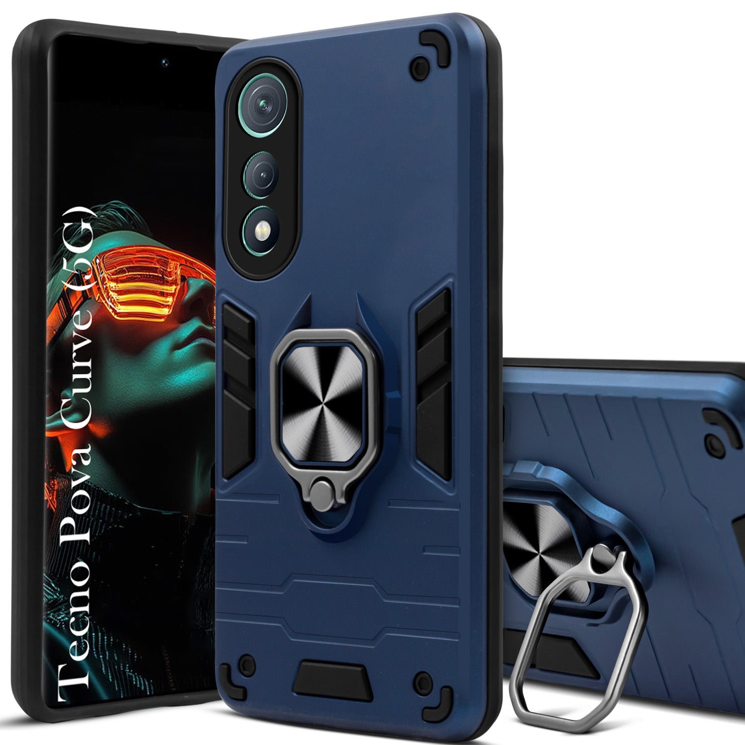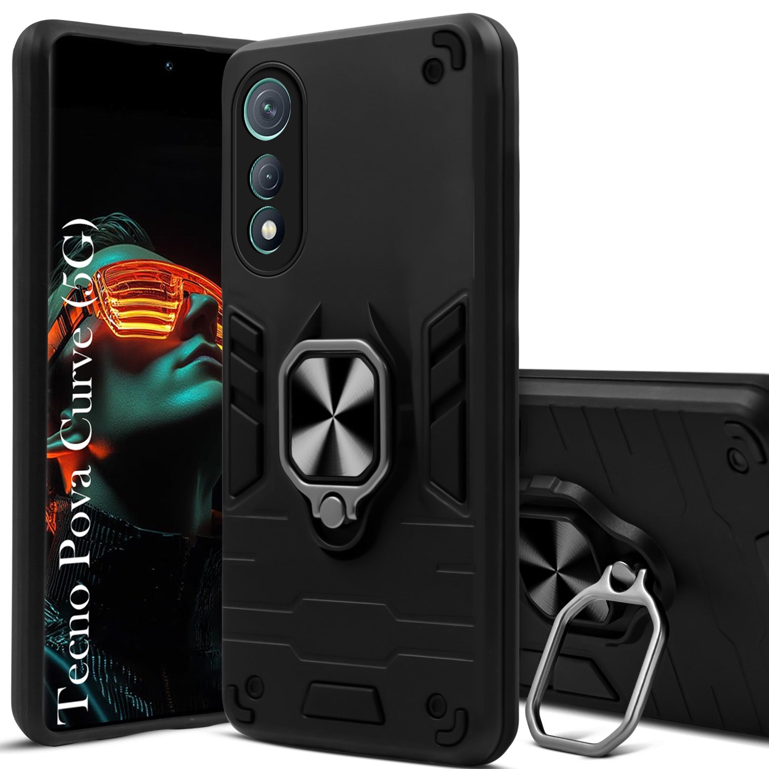 For Tecno Pova Curve Back Cover Case (Shockproof Dual Layer Polycarbonate |Ring Holder Kickstand)