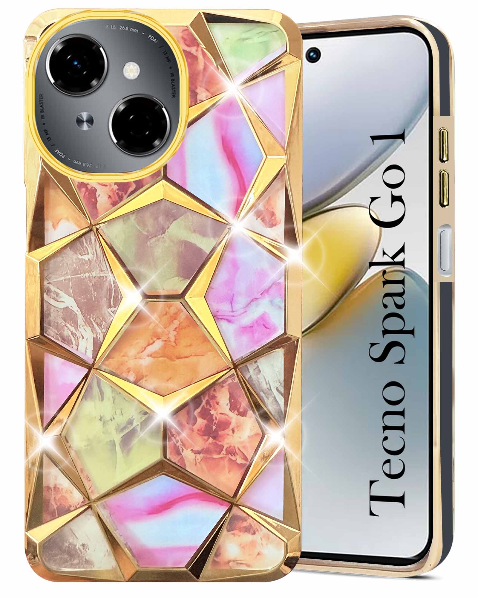 For Tecno Spark Go 1 Back Cover Case ( Dual Design Glitter Sparkle and Detachable Diamond Print Case | Soft and Flexible)