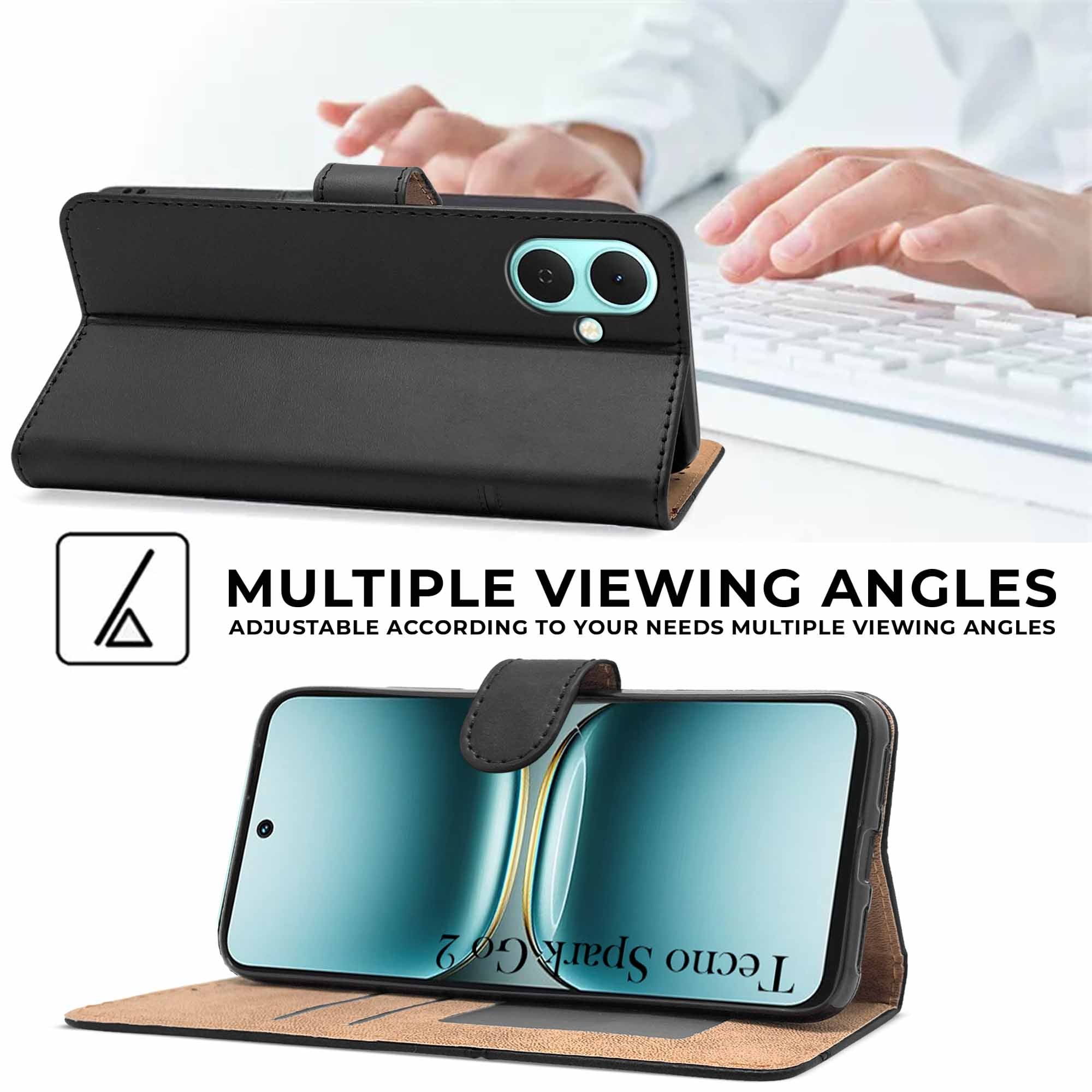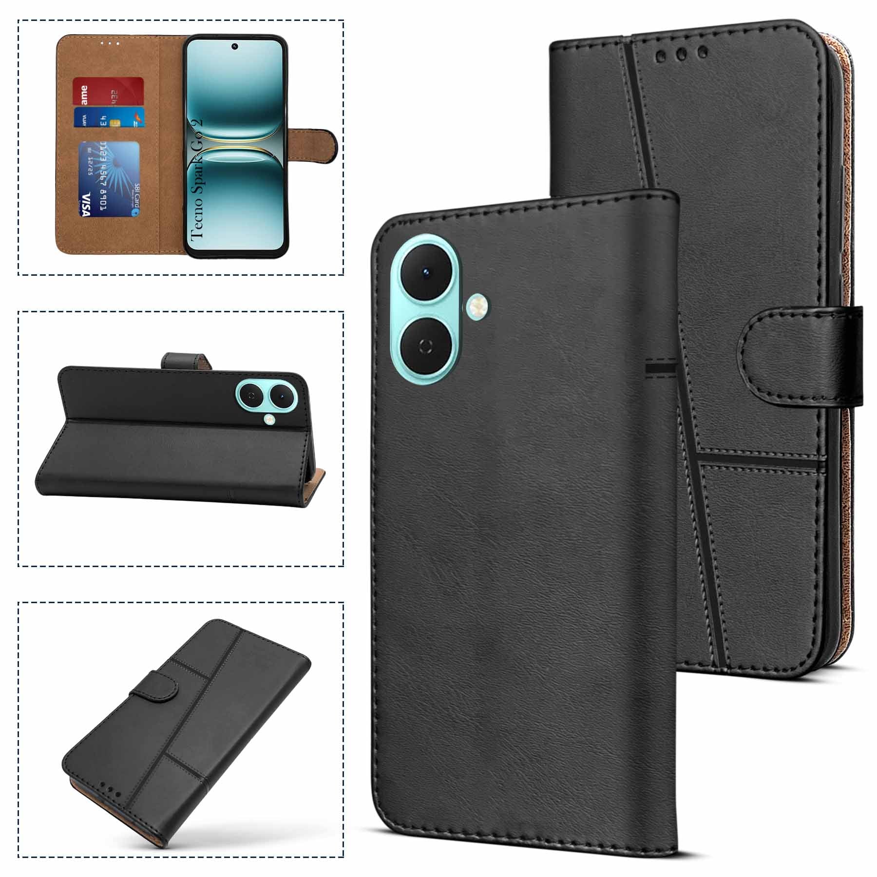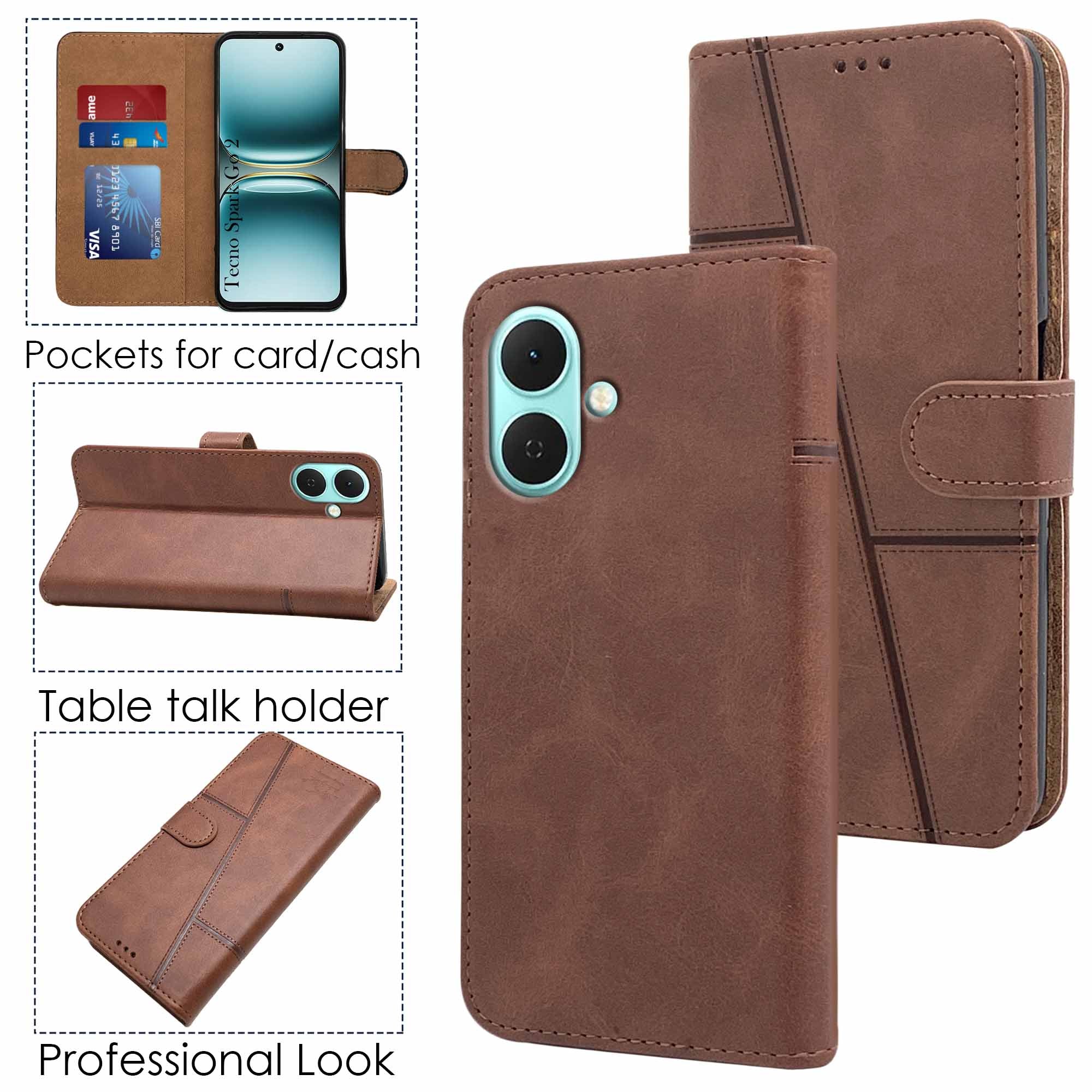 For Tecno Spark Go 2 Flip Cover Case ( Stitched Leather with Magnetic Closure)