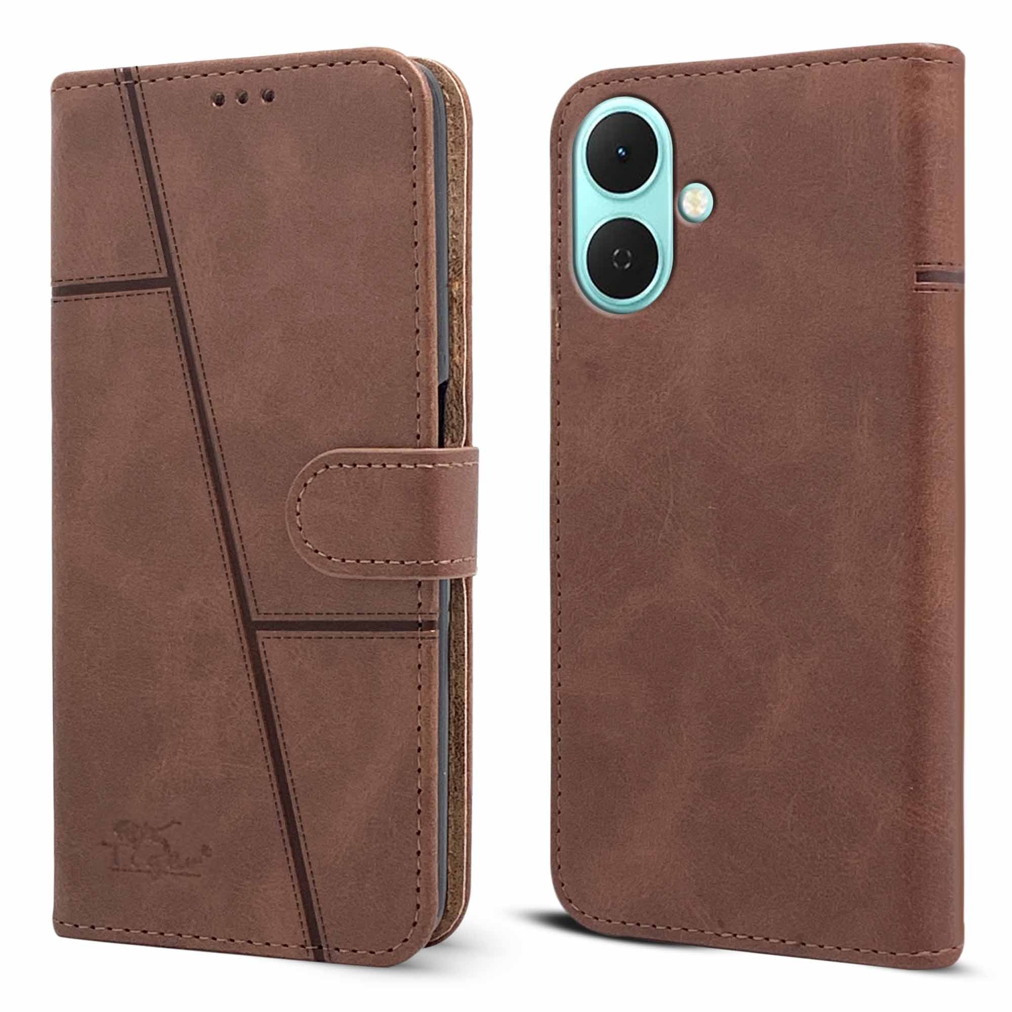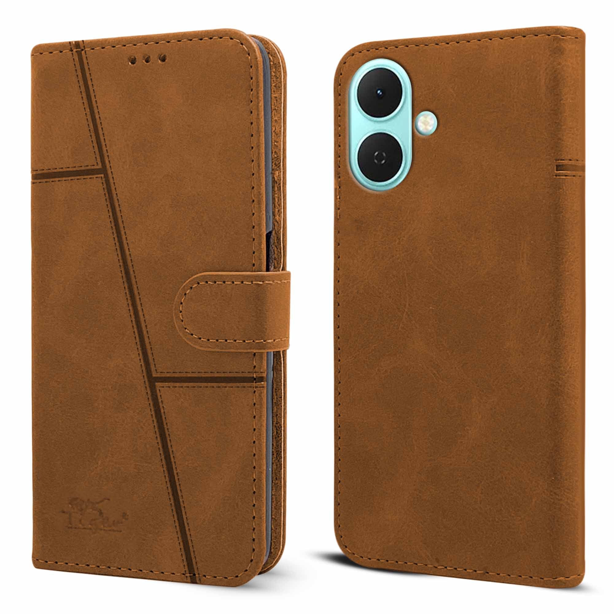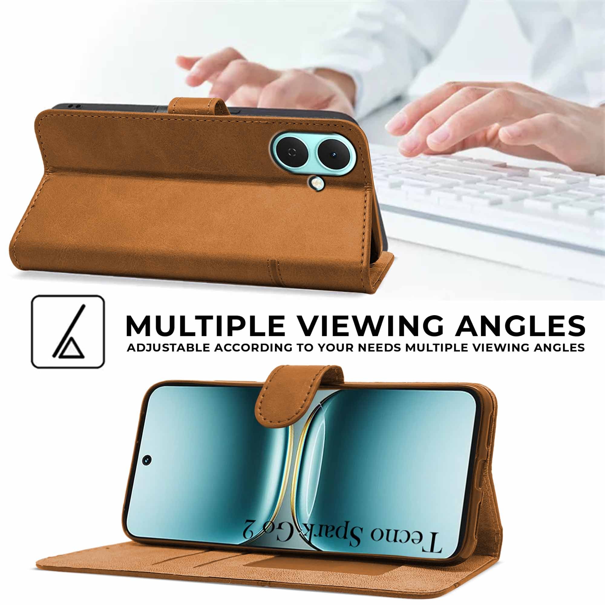 For Tecno Spark Go 2 Flip Cover Case ( Stitched Leather with Magnetic Closure)