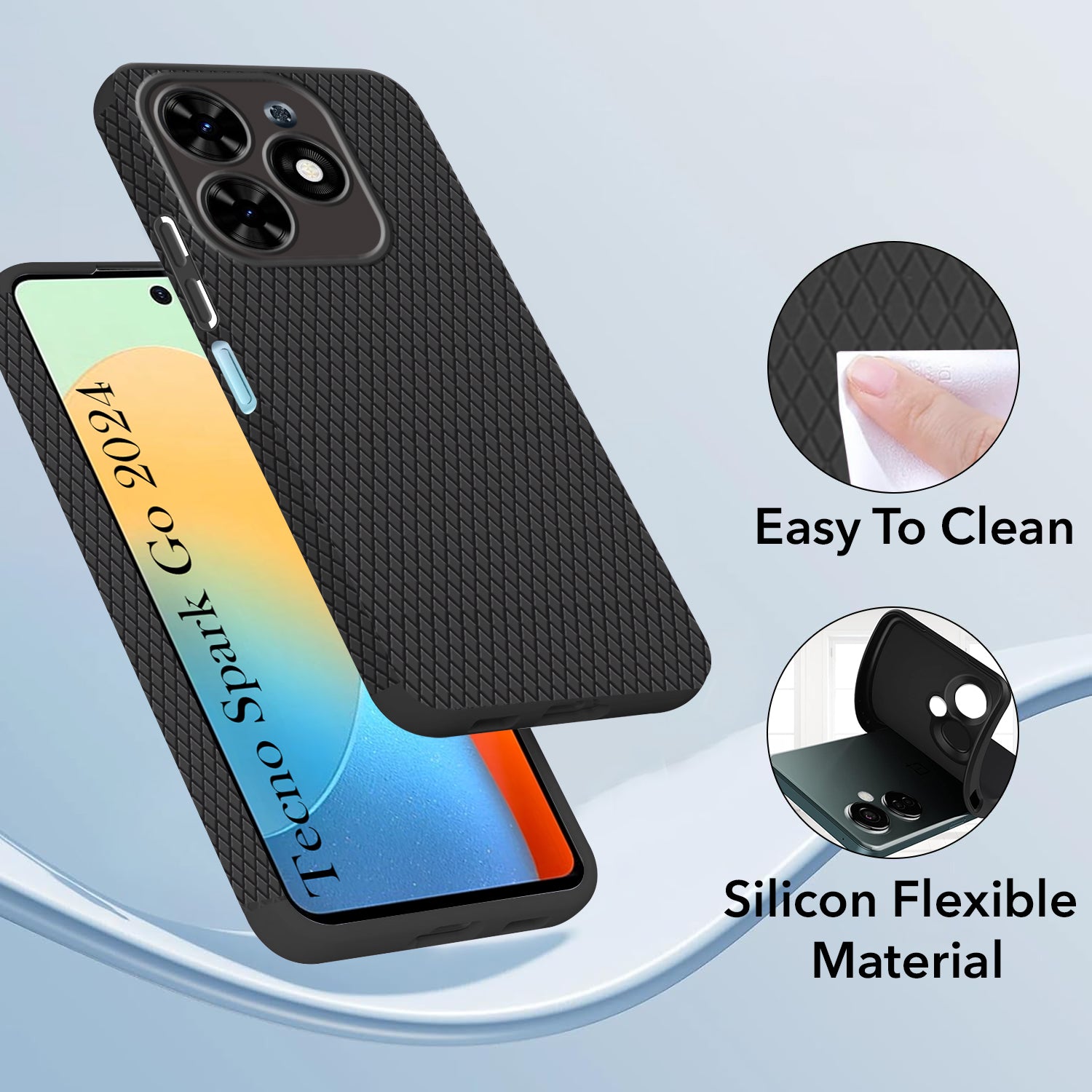 For Tecno Spark Go 2024 Back Cover Case (Liquid Silicone | Side Grip | Camera Protection)