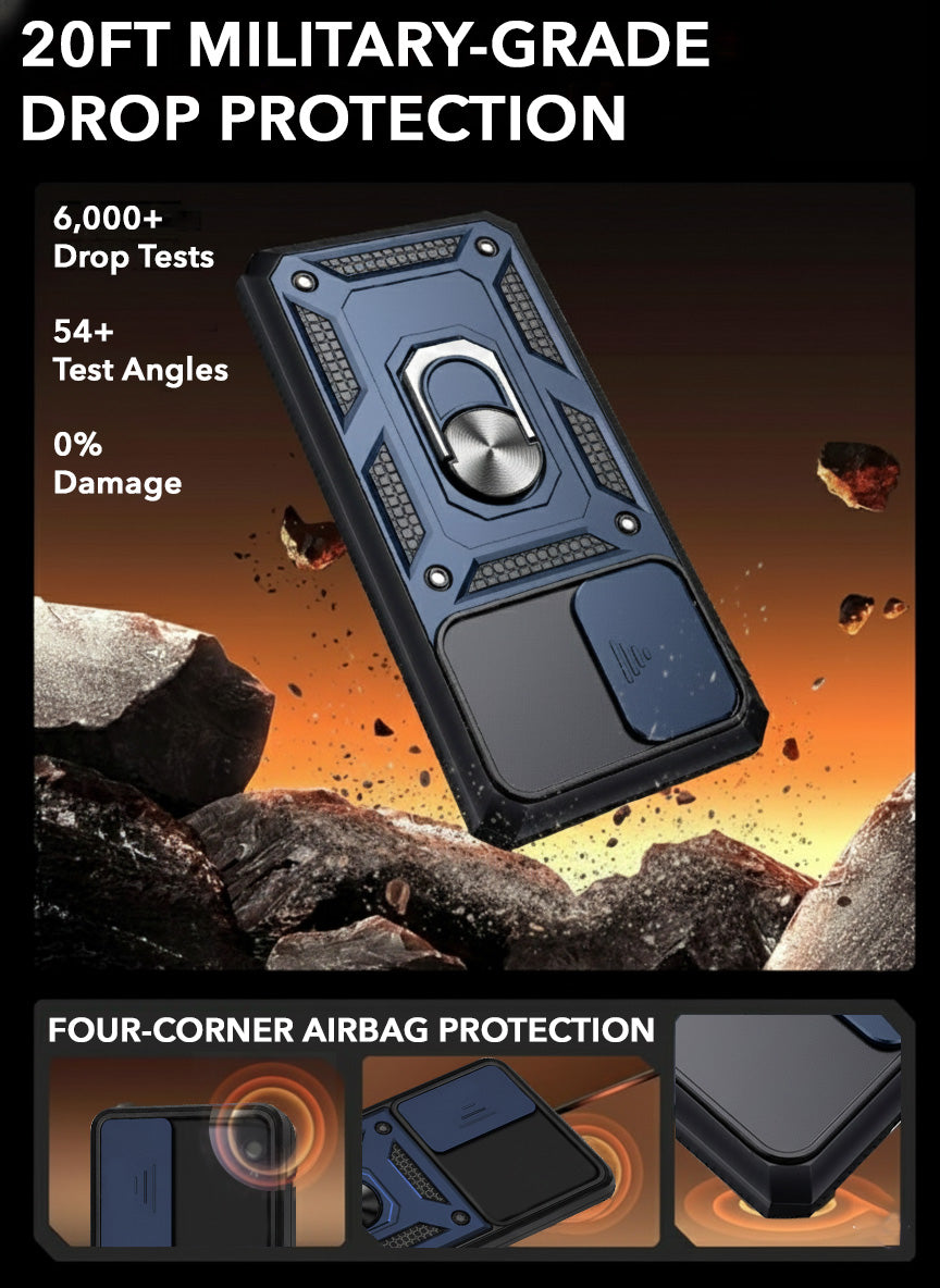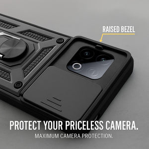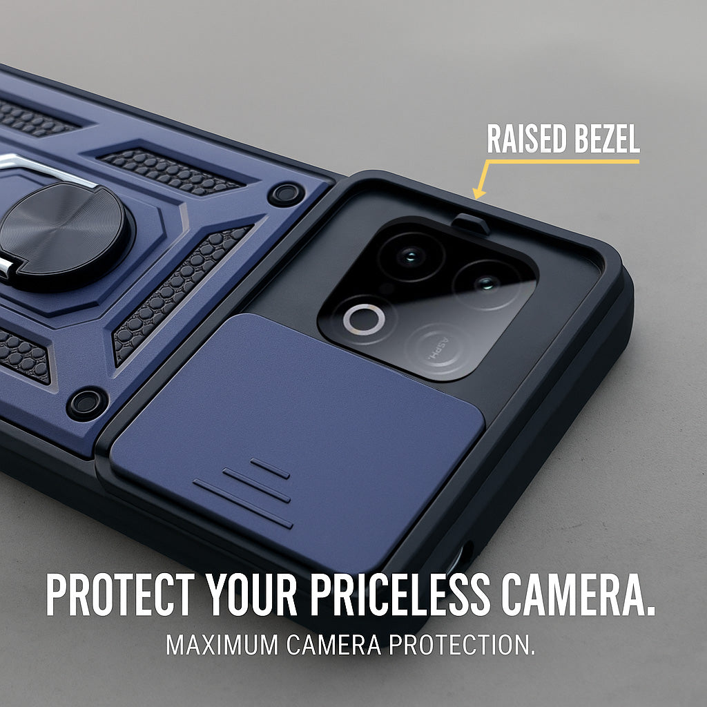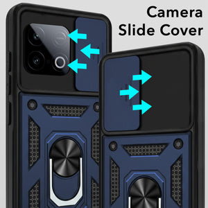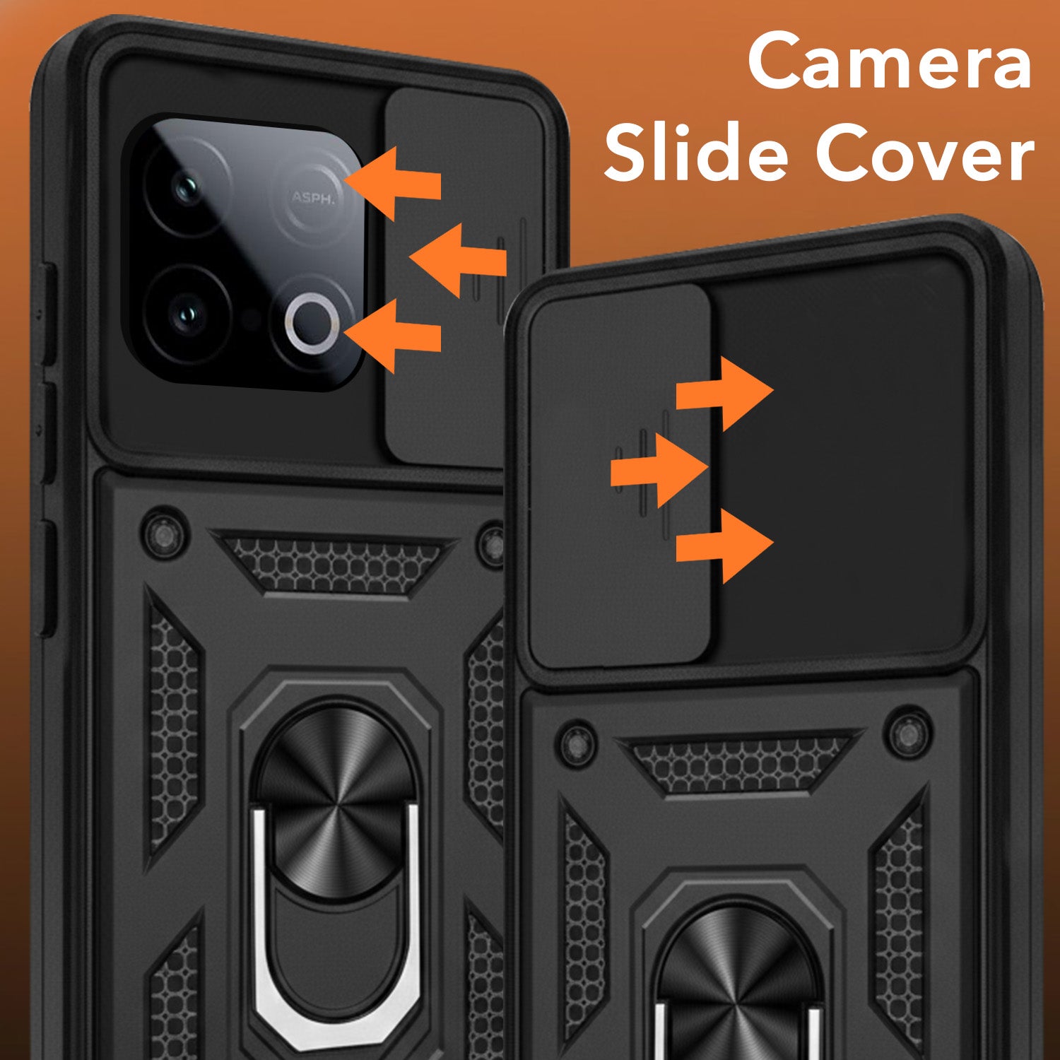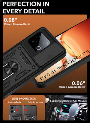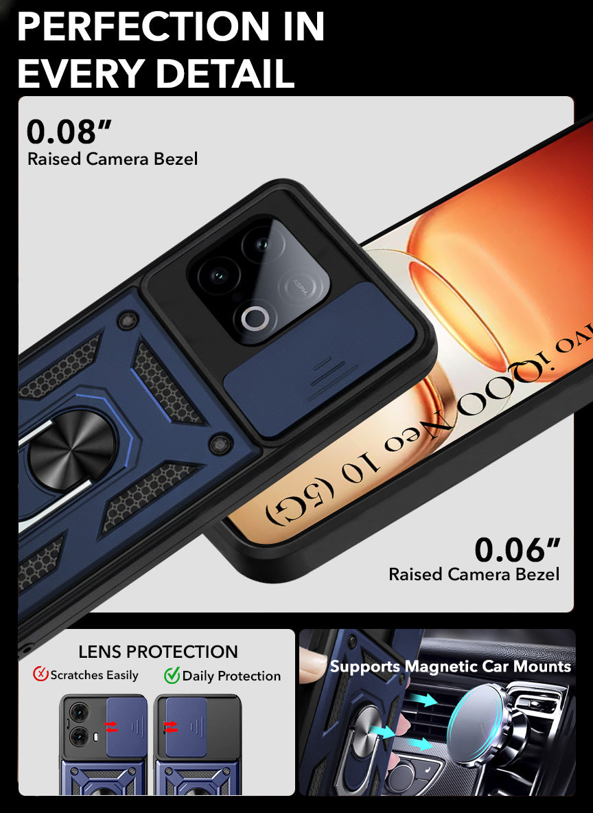 For Vivo iQOO Neo 10 Back Cover Case Hybrid Armor (Sliding Shutter Camera Protection | Polycarbonate |Ring Holder Kickstand)