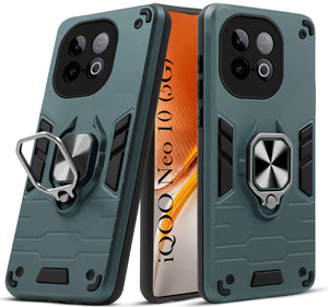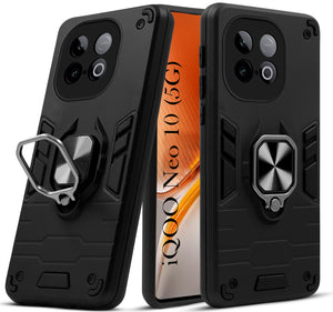 For Vivo iQOO Neo 10 Back Cover Case (Shockproof Dual Layer Polycarbonate |Ring Holder Kickstand)