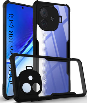 For Vivo iQOO Neo 10R Back Cover Case (Shockproof with Polycarbonate Clear Panel | Professional Black)