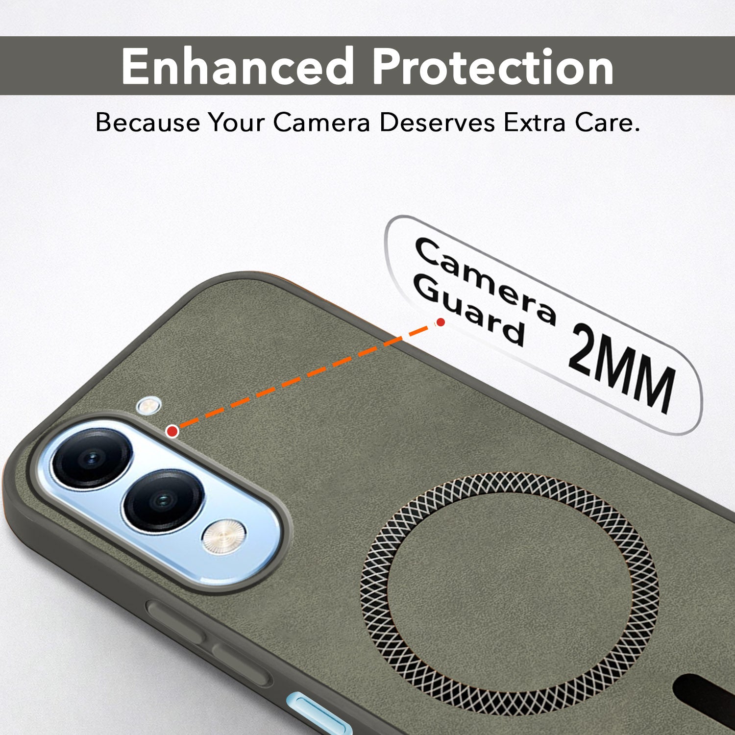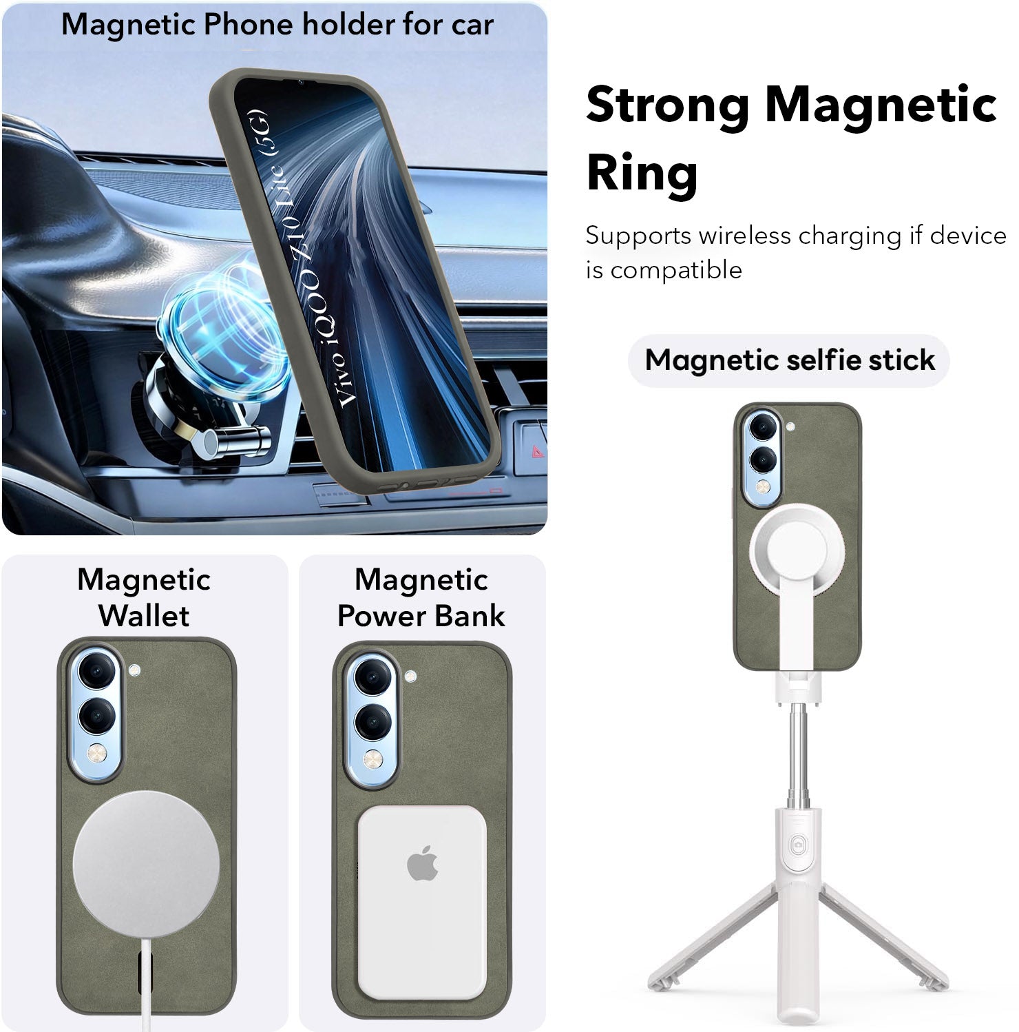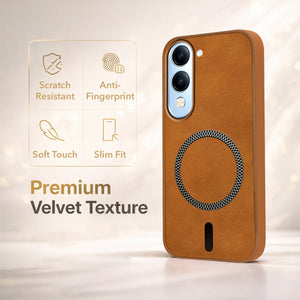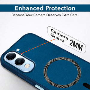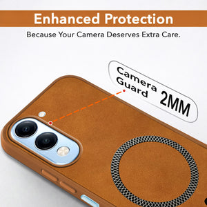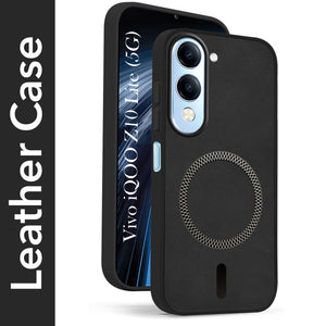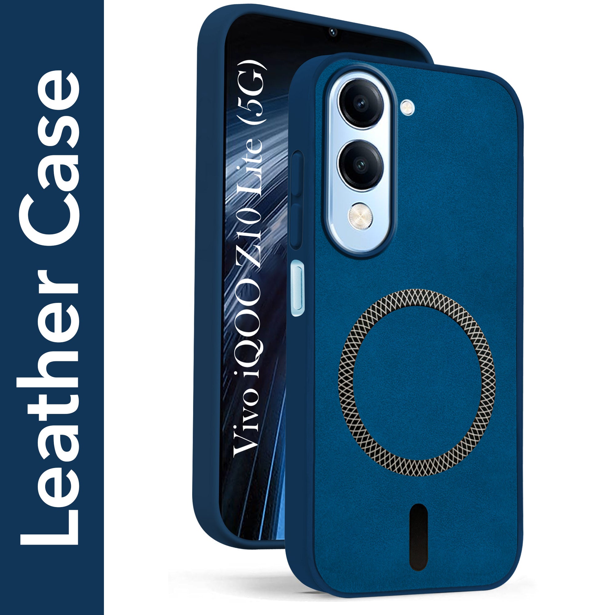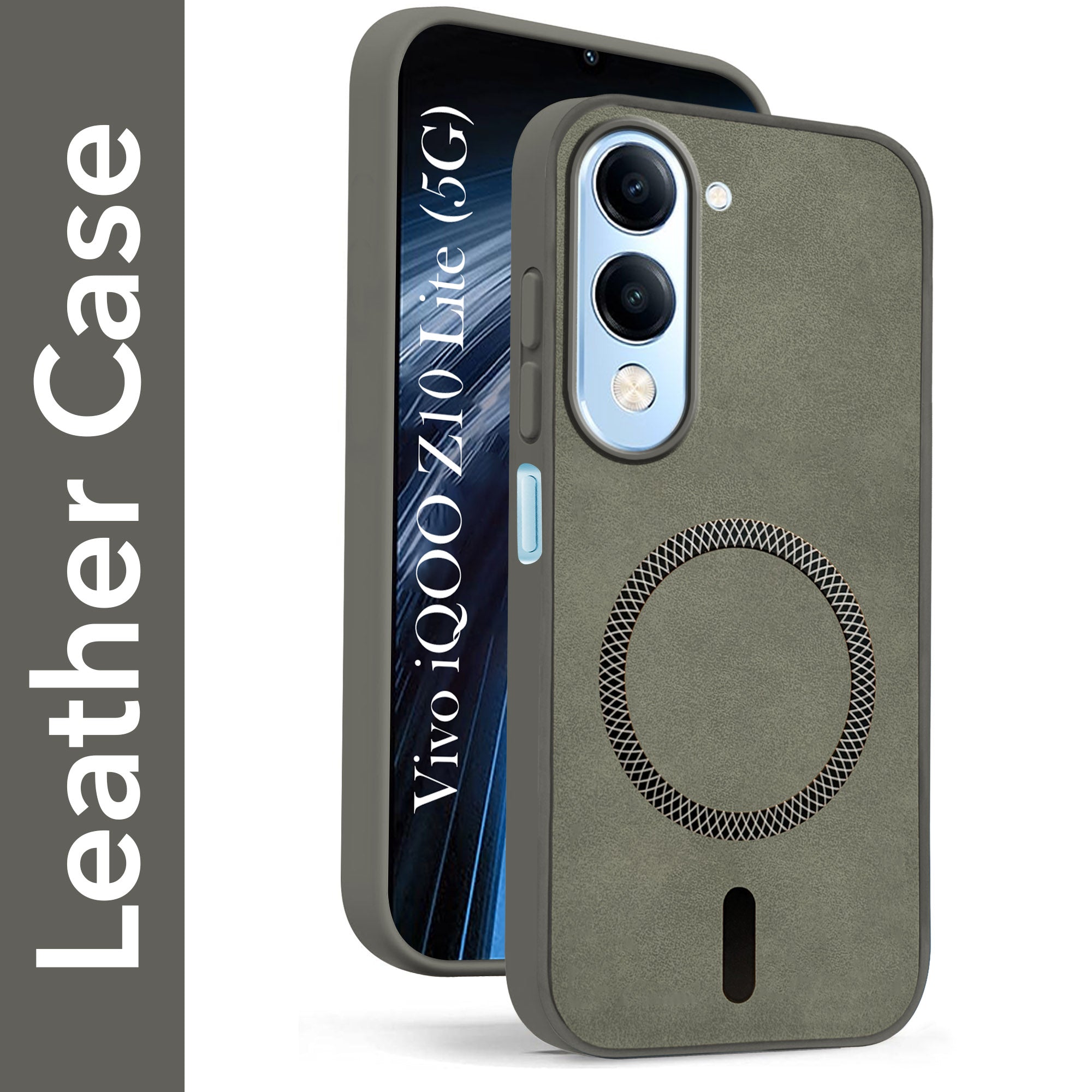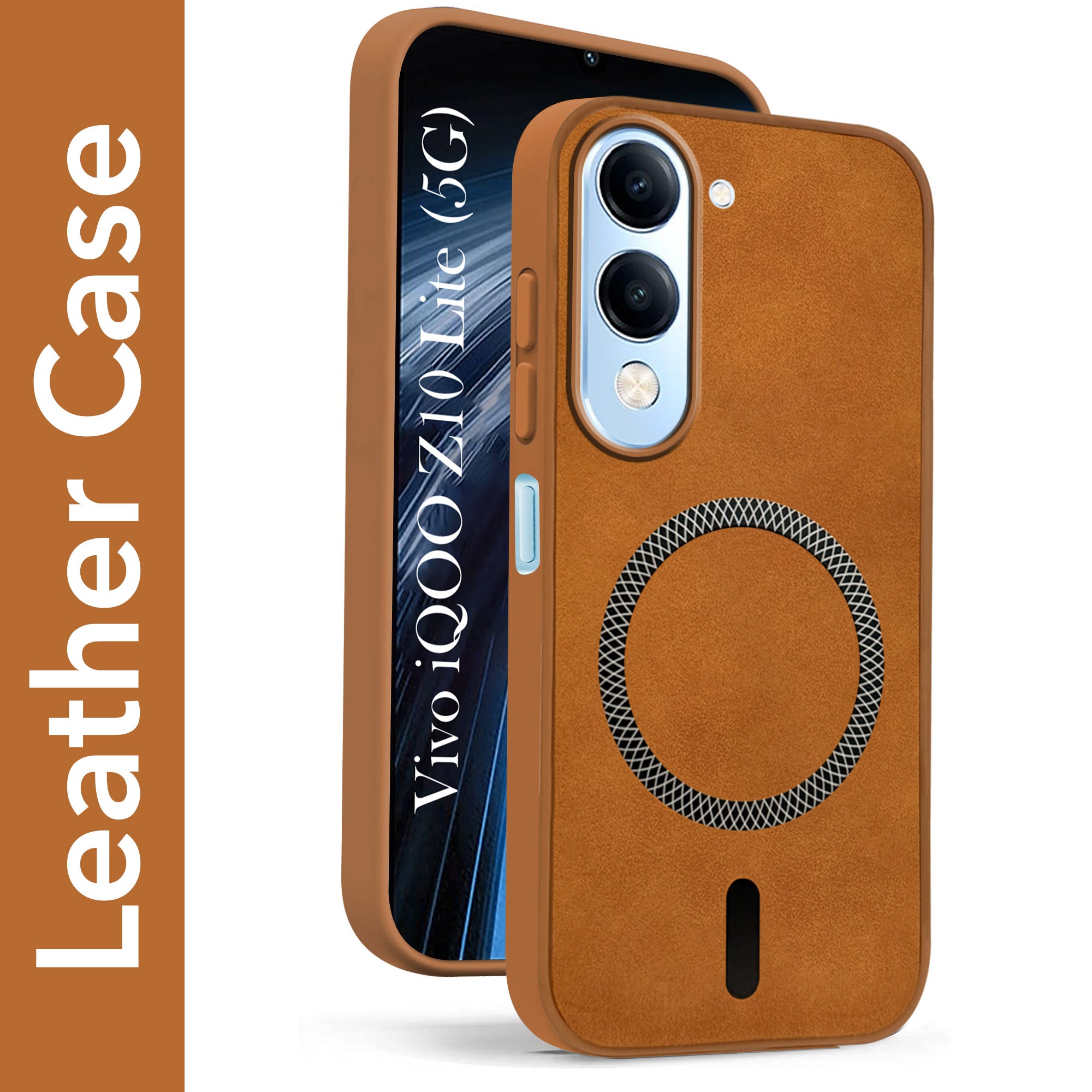 For Vivo iQOO Z10 Lite Back Cover Case Leather Finish (MagSafe Compatible Wireless Charging | Soft Touch | Camera Bump Protection)