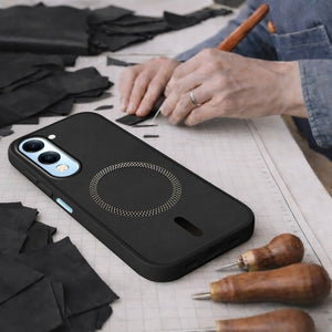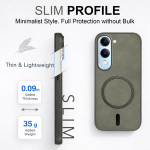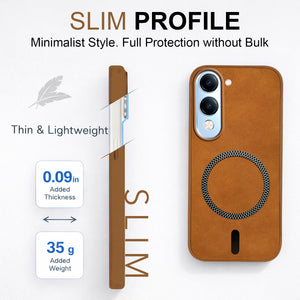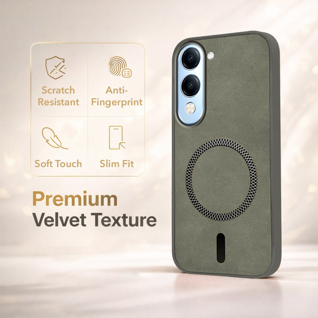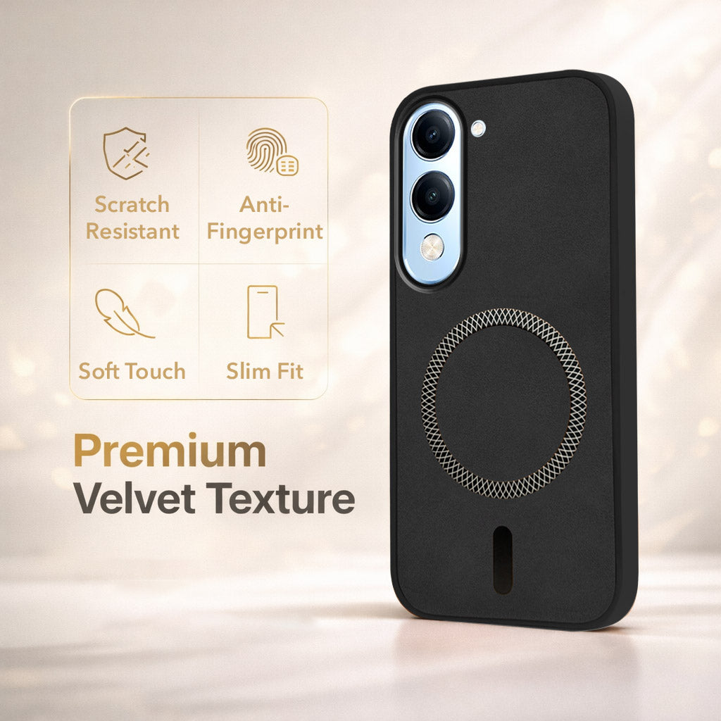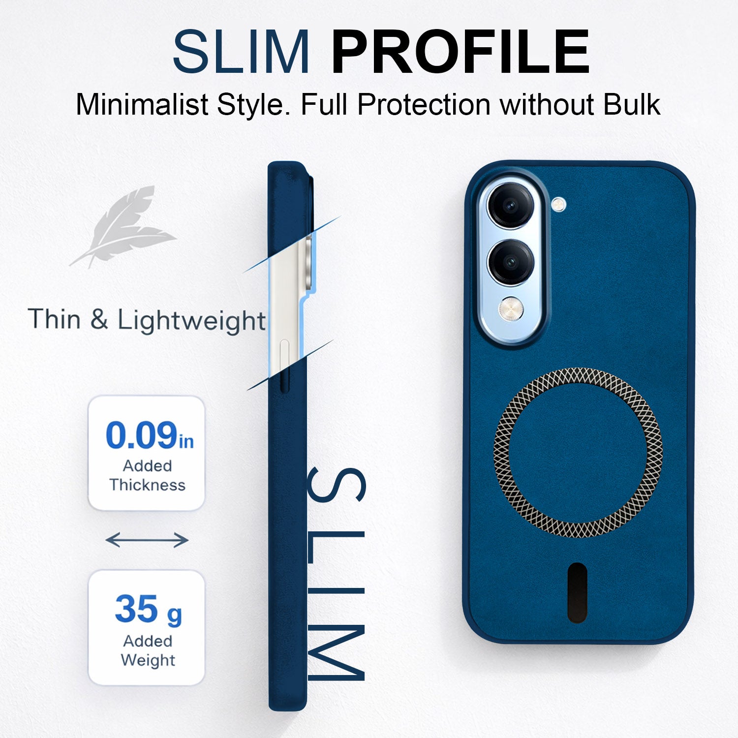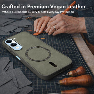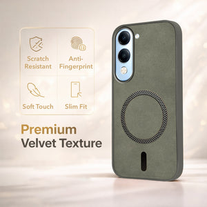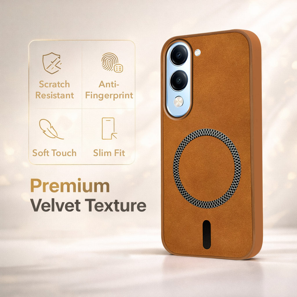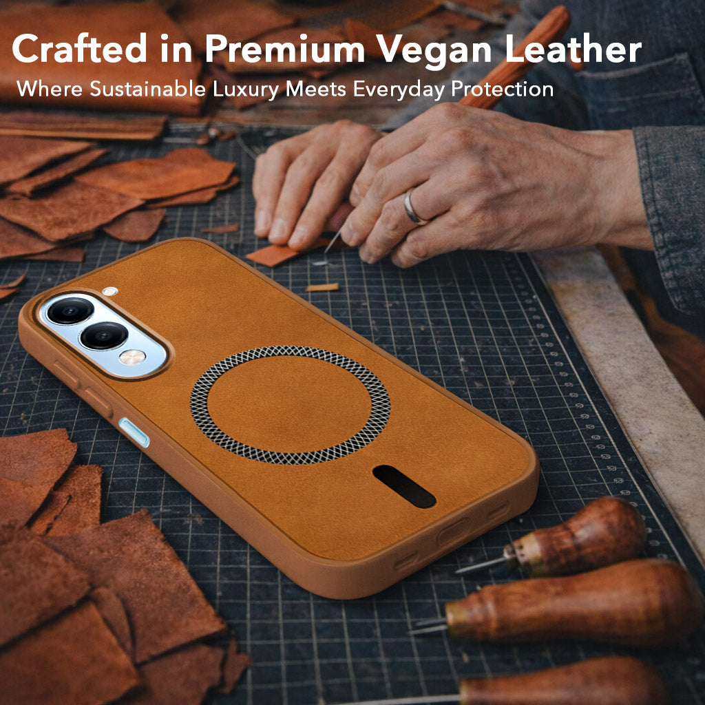 For Vivo iQOO Z10 Lite Back Cover Case Leather Finish (MagSafe Compatible Wireless Charging | Soft Touch | Camera Bump Protection)
