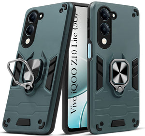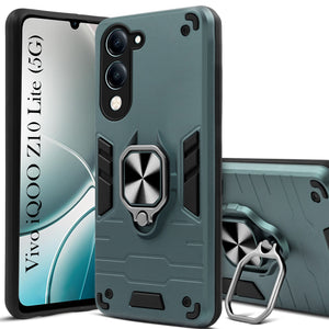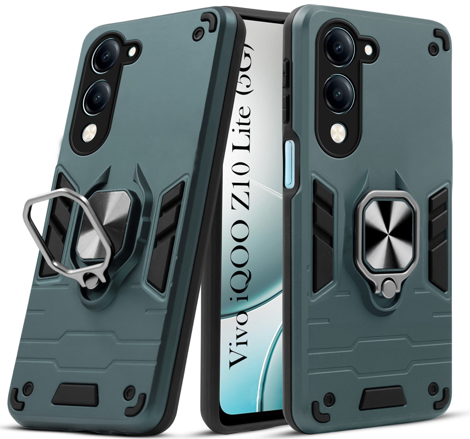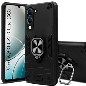 For Vivo iQOO Z10 Lite Back Cover Case (Shockproof Dual Layer Polycarbonate |Ring Holder Kickstand)