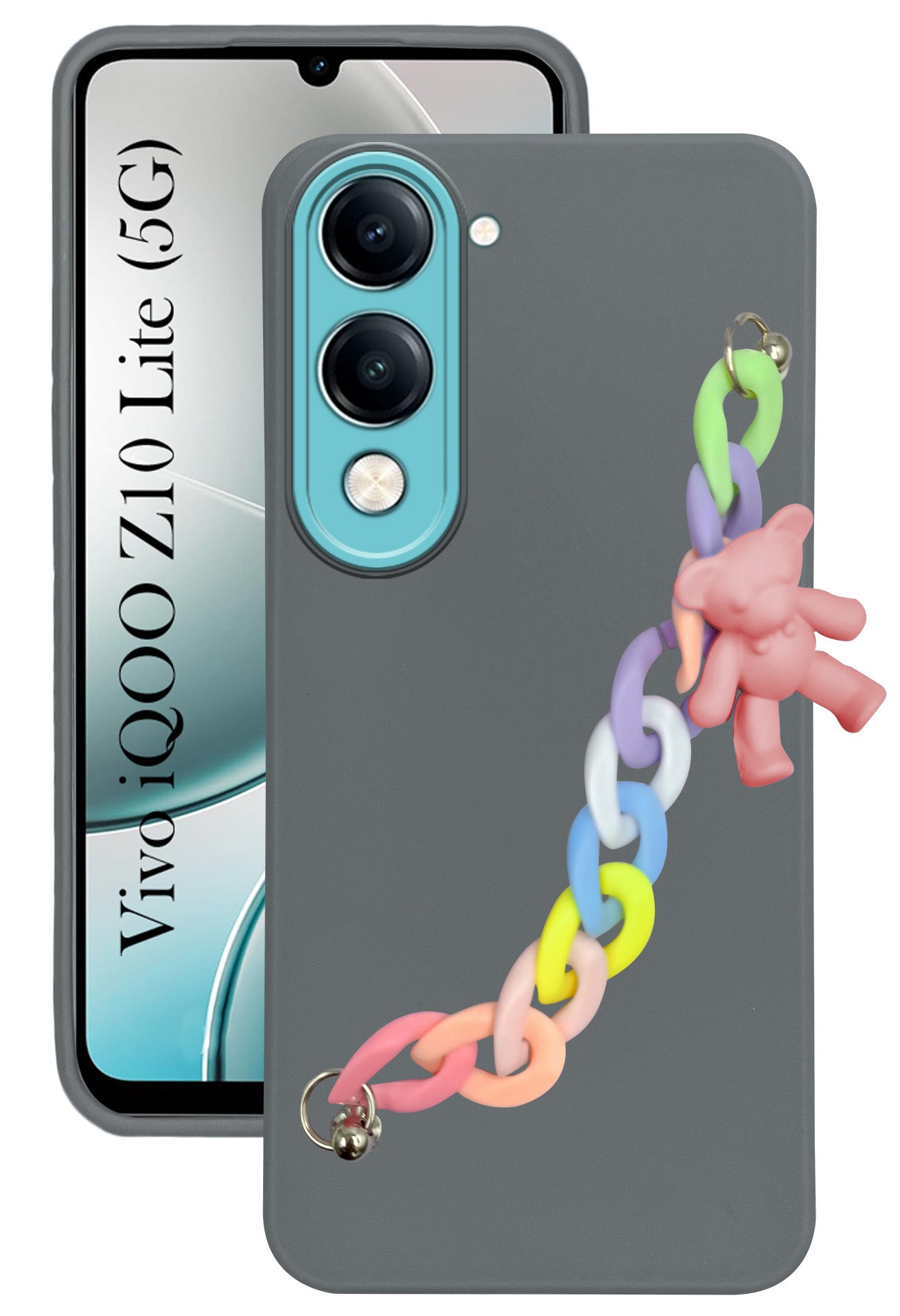 For Vivo iQOO Z10 Lite Back Cover Case ( Wrist Hanging Chain | Teddy Bracelet Charms | Dual Color Matte Finish | Full Camera Protection | Sleek and